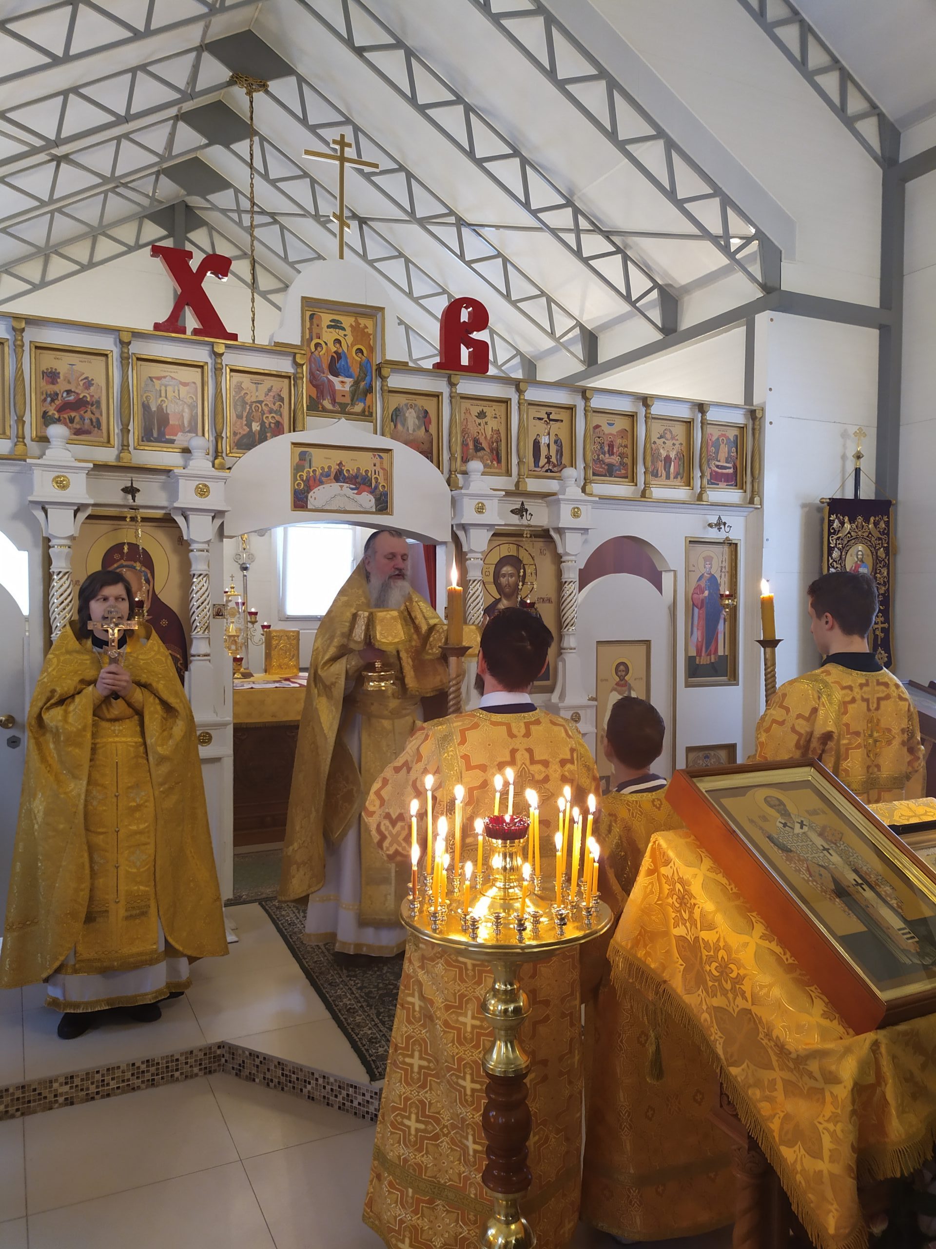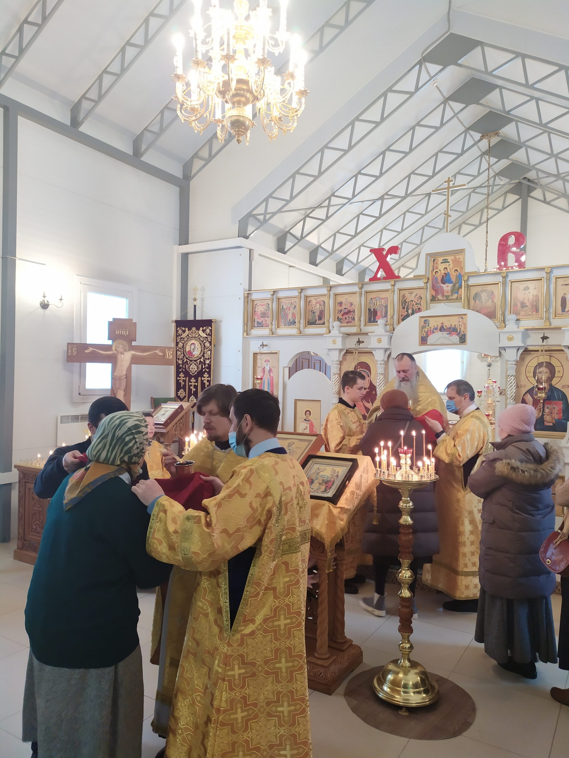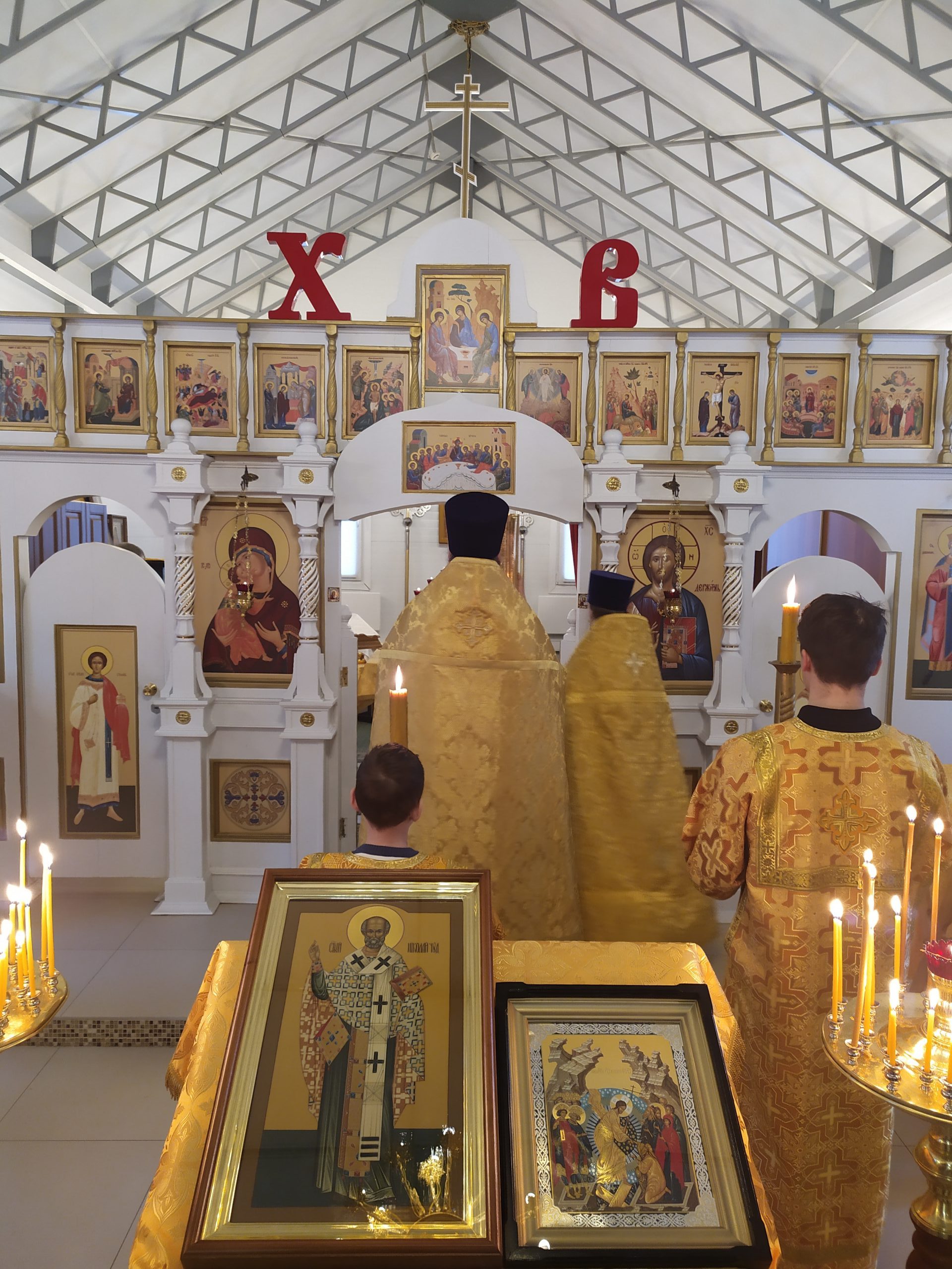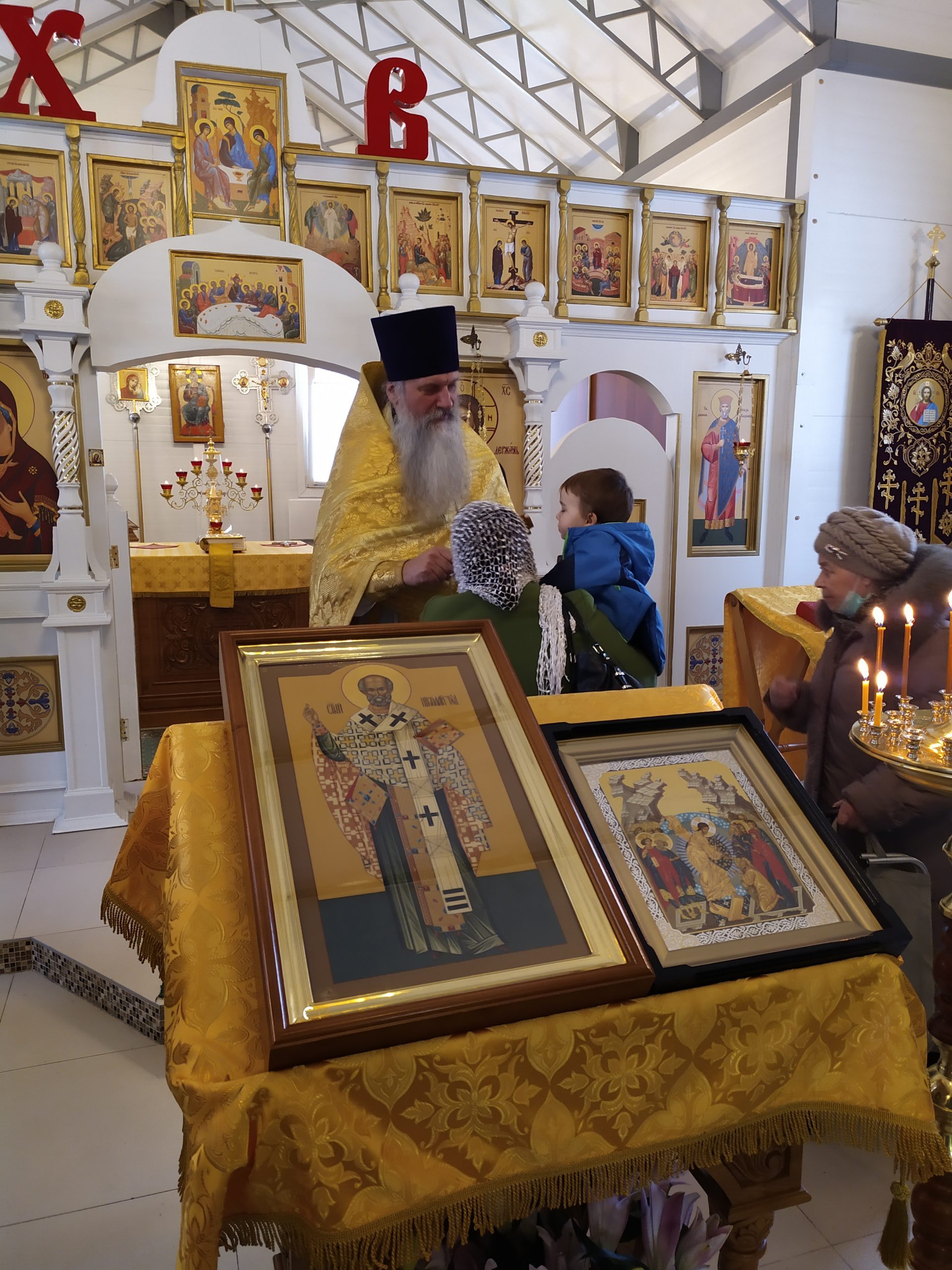 19 декабря 2021 года, в Неделю 26-ю по Пятидесятнице, когда празднуется память Святителя Николая, архиепископа Мир Ликийских чудотворца, исполняющий обязанности настоятеля храма святых равноапостольных князя Владимира и княгини Ольги в Черёмушках протоиерей Владимир Быстрый и клирик храма иерей Димитрий Гончаренко совершили литургию, молебен и литию.
