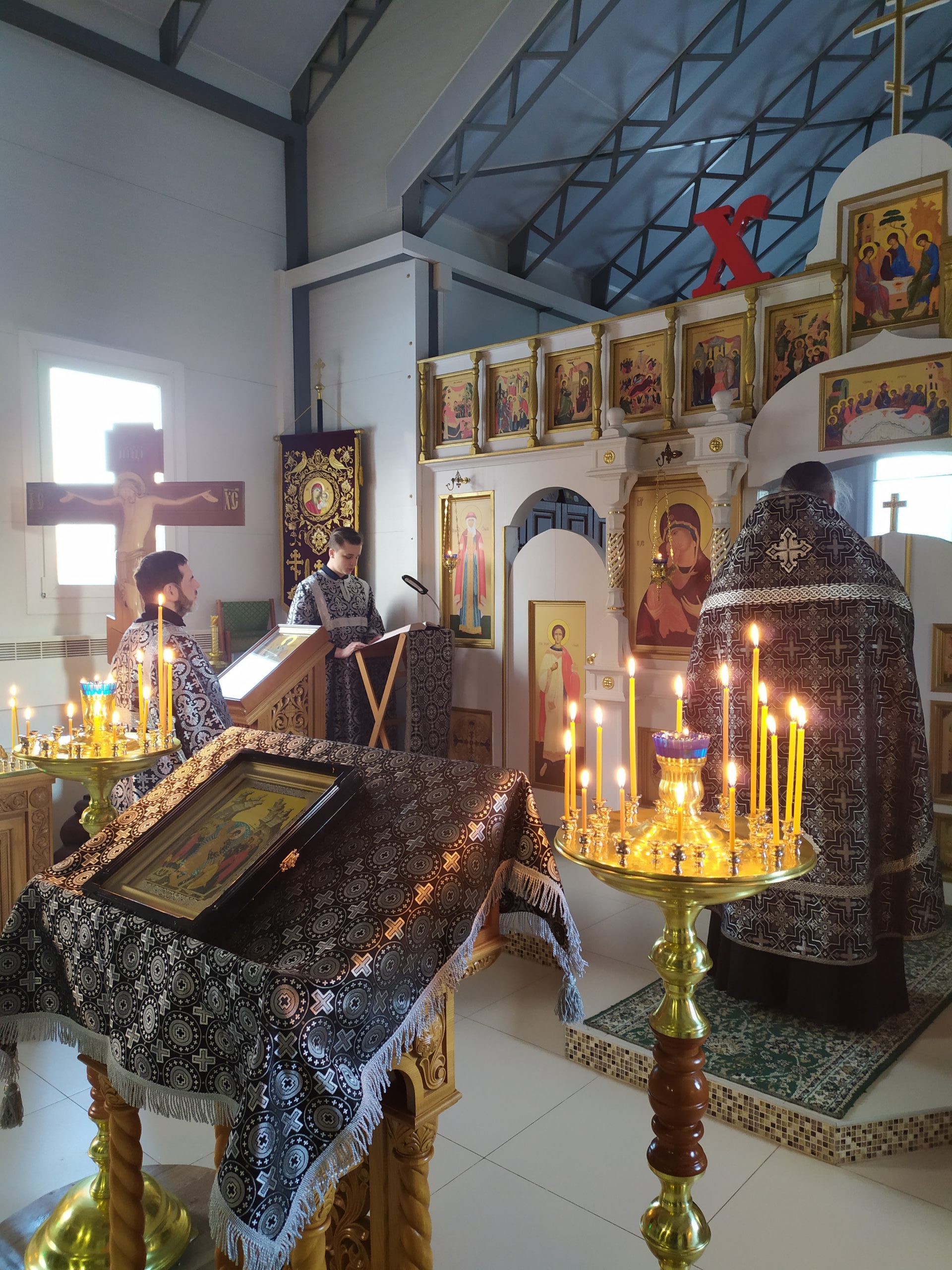 Вечером протоиерей Владимир Быстрый и иерей Димитрий Гончаренко отслужили вечерню с чином прощения.
