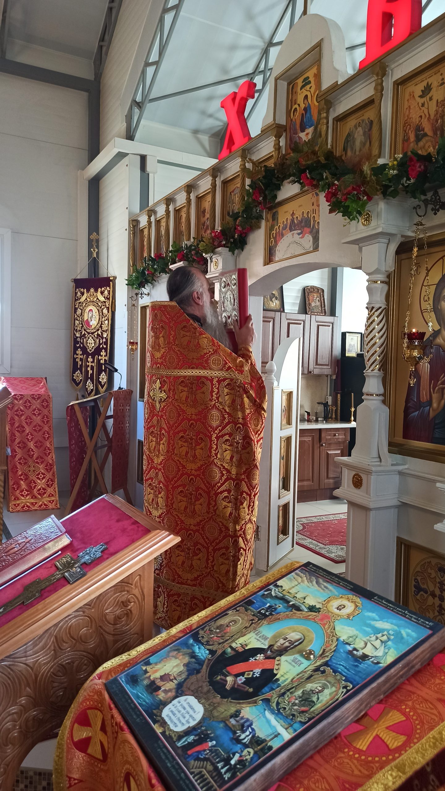 25 мая 2024 года, в Седмицу 3-ю по Пасхе, когда празднуется прославление сщмч. Ермогена, патриарха Московского и всея России, чудотворца, исполняющий обязанности настоятеля храма святых равноапостольных князя Владимира и княгини Ольги в Черёмушках протоиерей Владимир Быстрый совершил литургию и литию.