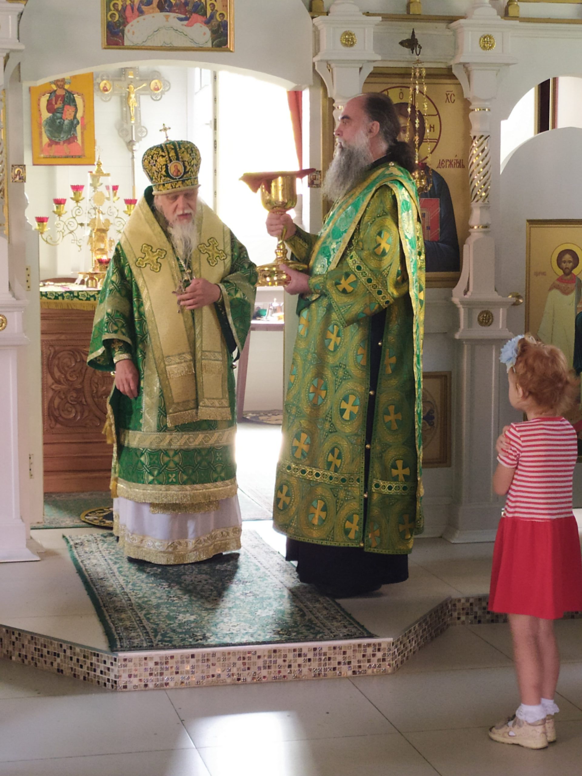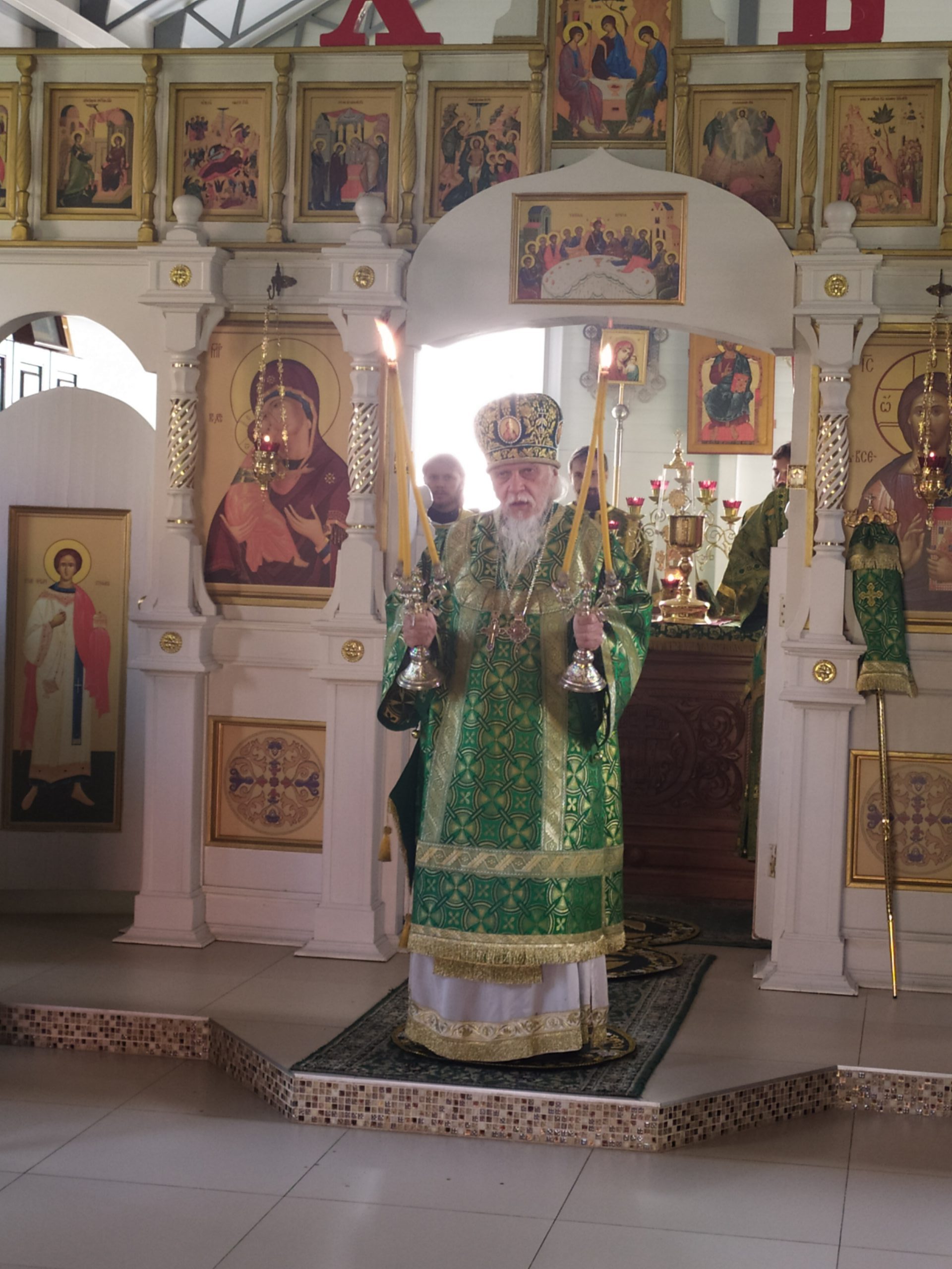 По окончании Божественной Литургии епископ Пантелеимон поздравил собравшихся с принятием Святых Христовых Таин, с праздником прп. Серафима Саровского и обратился со словом к клирикам, работникам и прихожанам храма. Протоиерей Владимир Быстрый передал в дар Его Преосвященству икону святых равноапостольных князя Владимира и княгини Ольги.