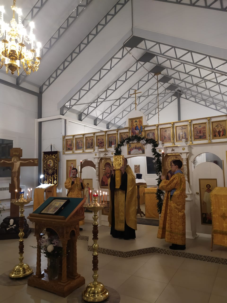 На кануне вечером, исполняющий обязанности настоятеля храма святых равноапостольных князя Владимира и княгини Ольги в Черемушках г. Москвы протоиерей Владимир Быстрый совершил всенощное бдение.