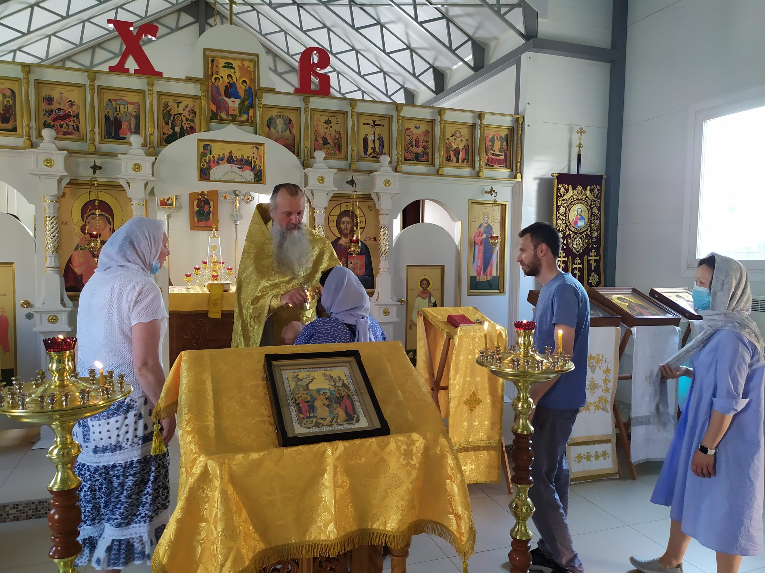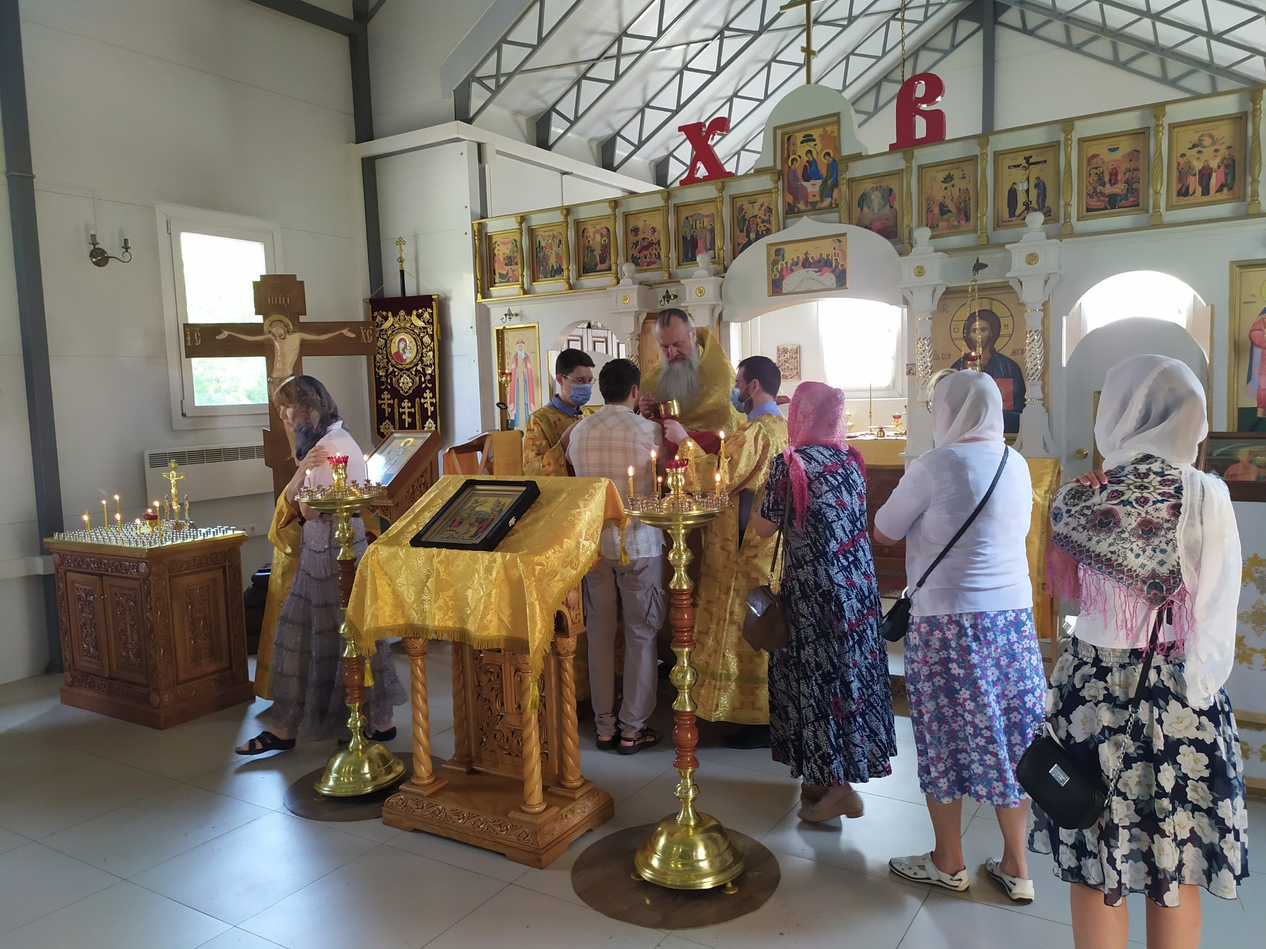 27 июня 2021 года, в Неделю 1-ю по Пятидесятнице, всех святых, а также день памяти пророка Елисея, исполняющий обязанности настоятеля храма святых равноапостольных князя Владимира и княгини Ольги в Черёмушках протоиерей Владимир Быстрый и клирик храма иерей Димитрий Гончаренко совершили Божественную Литургию и молебен.