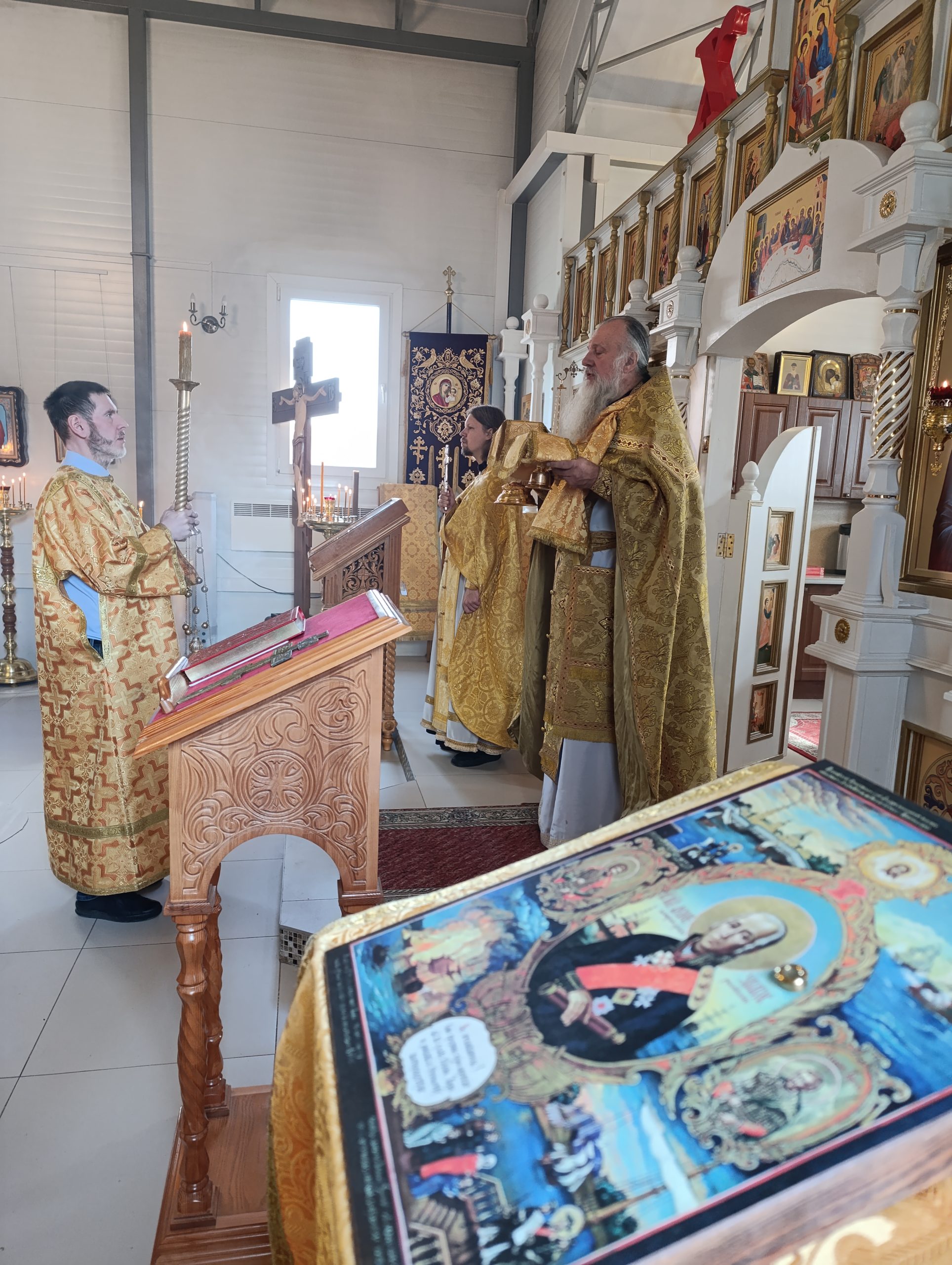 24 августа 2025 года, в Неделю 11-ю по Пятидесятнице, в день памяти мч. архидиакона Евпла и старца прот. Николая Гурьянова, исполняющий обязанности настоятеля храма святых равноапостольных князя Владимира и княгини Ольги в Черёмушках протоиерей Владимир Быстрый и клирик храма иерей Димитрий Гончаренко совершили литургию и литию.