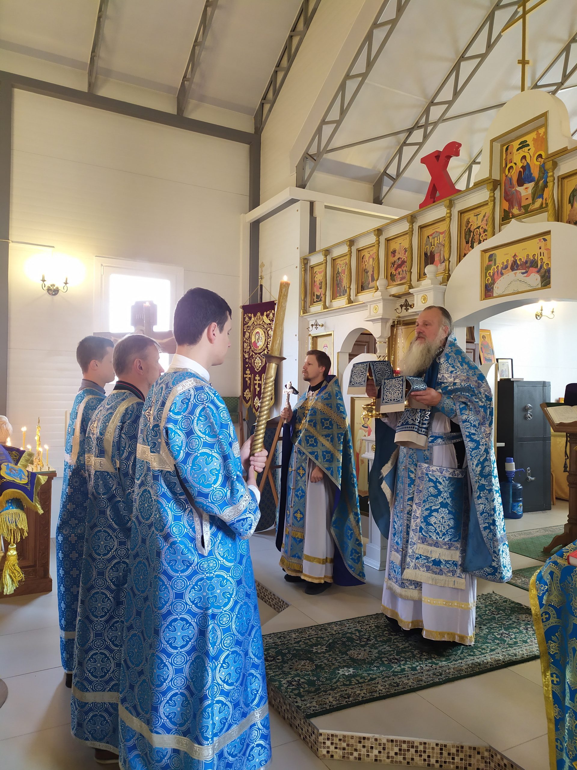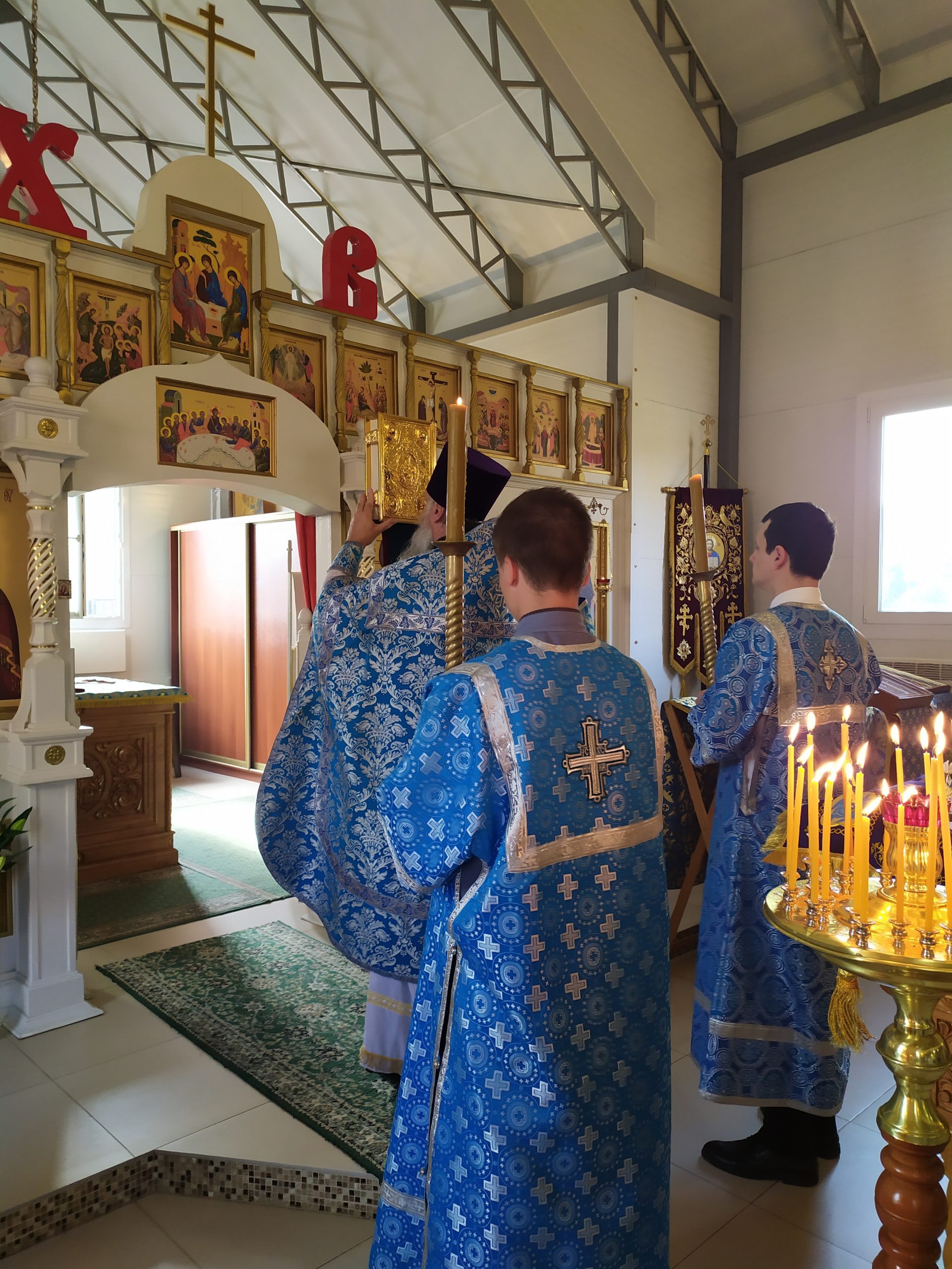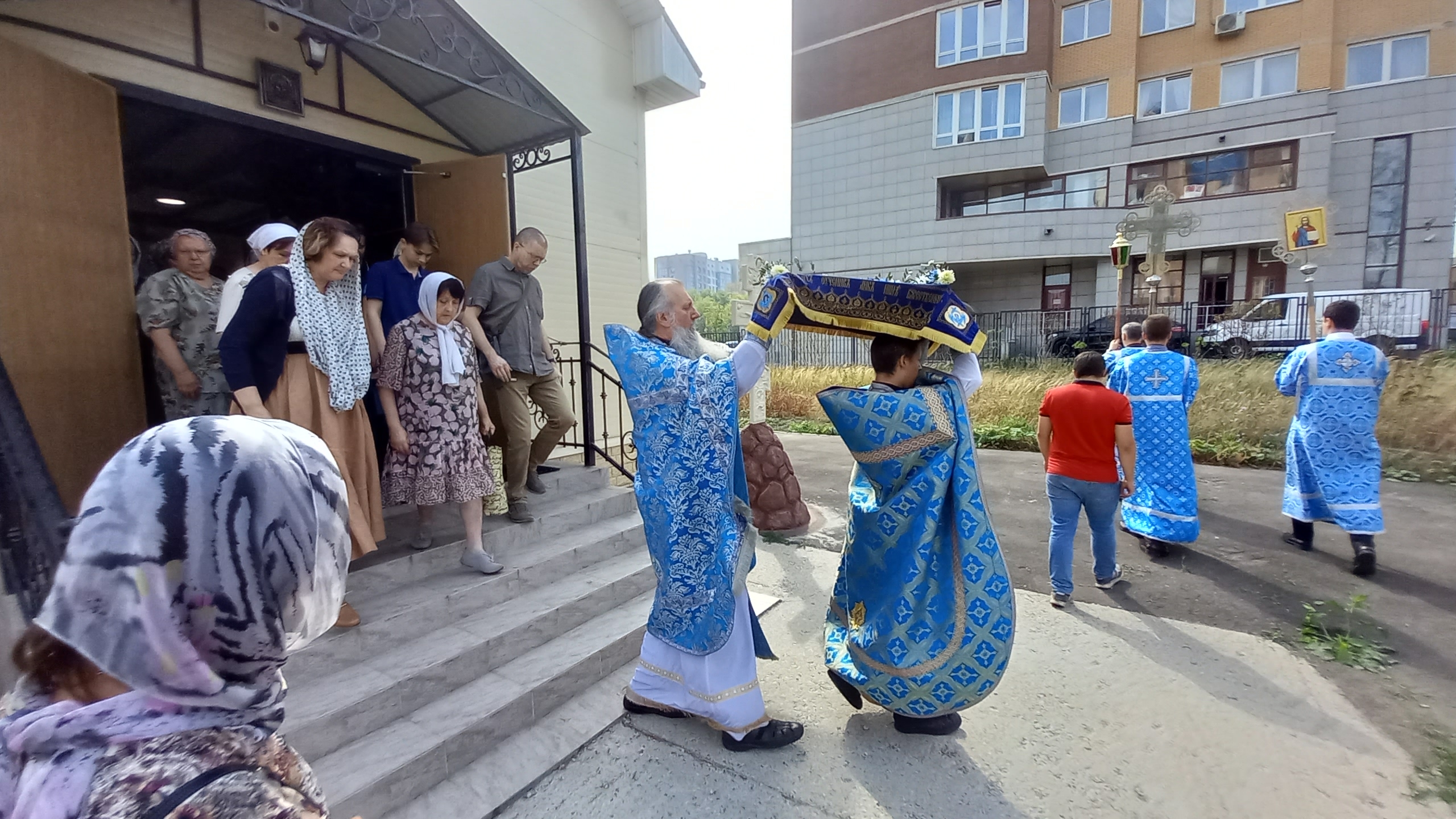 28 августа 2022 года, в Неделю 11-ю по Пятидесятнице, когда празднуется Успение Пресвятой Владычицы нашей Богородицы и Приснодевы Марии, исполняющий обязанности настоятеля храма святых равноапостольных князя Владимира и княгини Ольги в Черёмушках протоиерей Владимир Быстрый и клирик храма иерей Димитрий Гончаренко совершили литургию, молебен на начало учебного года и утреню с погребением Плащаницы Пресвятой Богородицы.