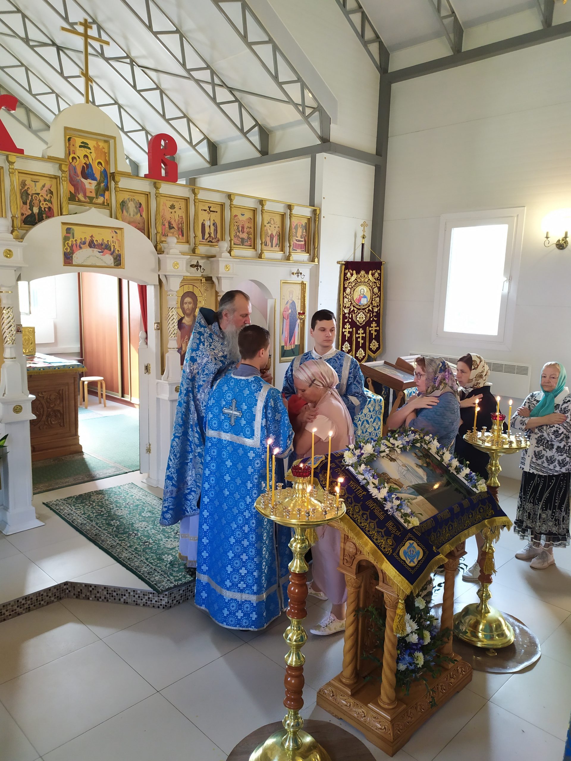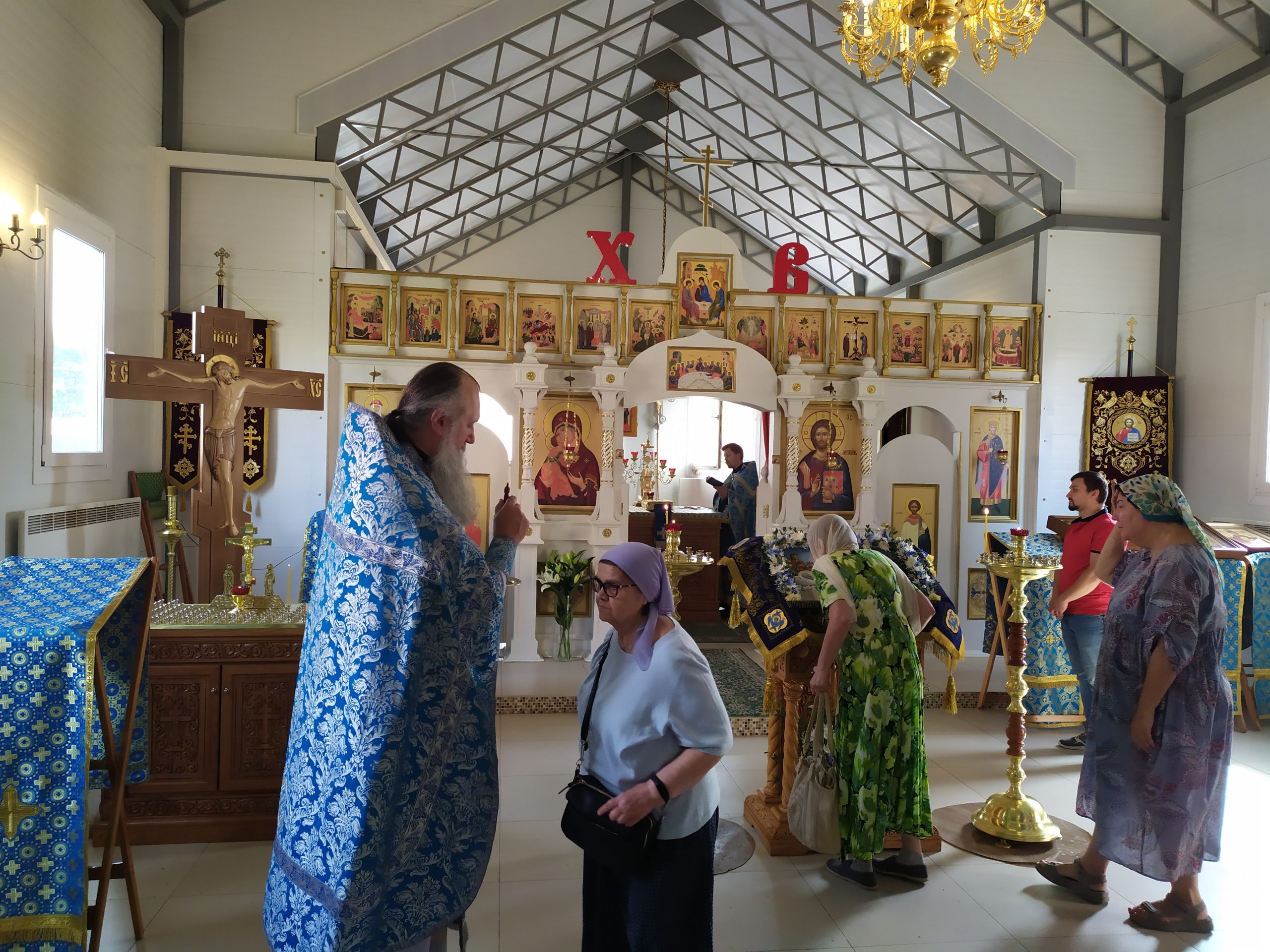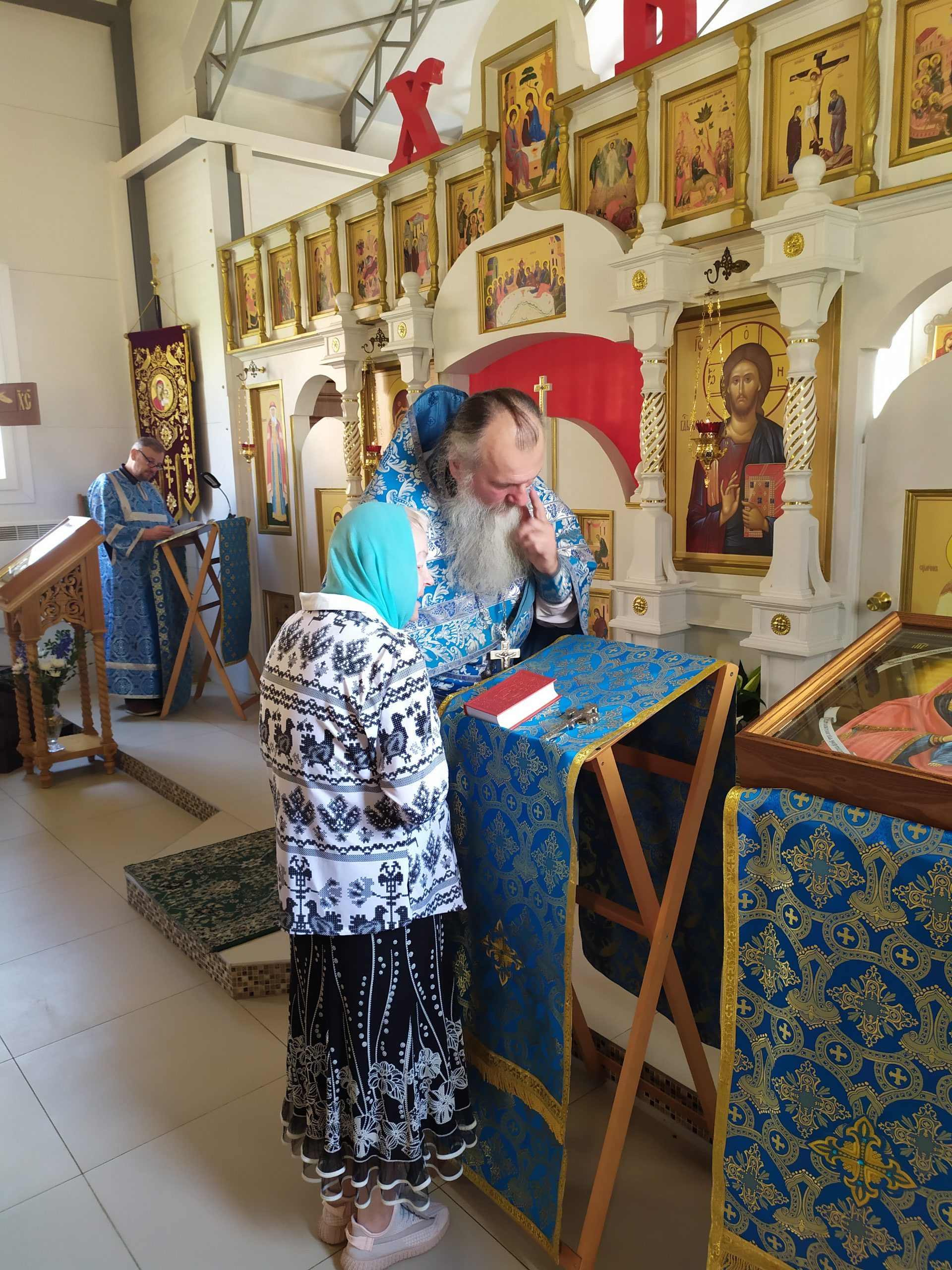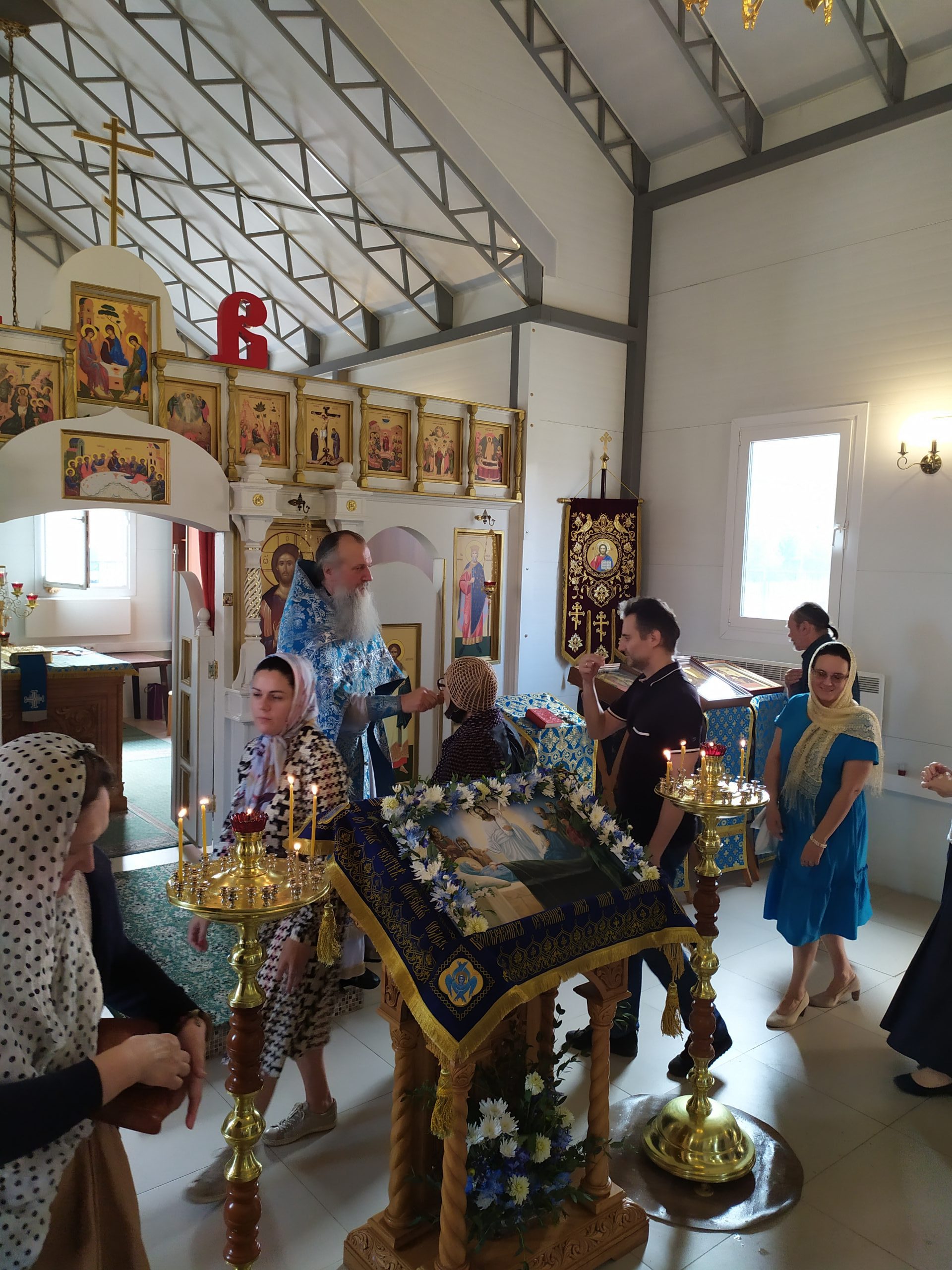 28 августа 2022 года, в Неделю 11-ю по Пятидесятнице, когда празднуется Успение Пресвятой Владычицы нашей Богородицы и Приснодевы Марии, исполняющий обязанности настоятеля храма святых равноапостольных князя Владимира и княгини Ольги в Черёмушках протоиерей Владимир Быстрый и клирик храма иерей Димитрий Гончаренко совершили литургию, молебен на начало учебного года и утреню с погребением Плащаницы Пресвятой Богородицы.