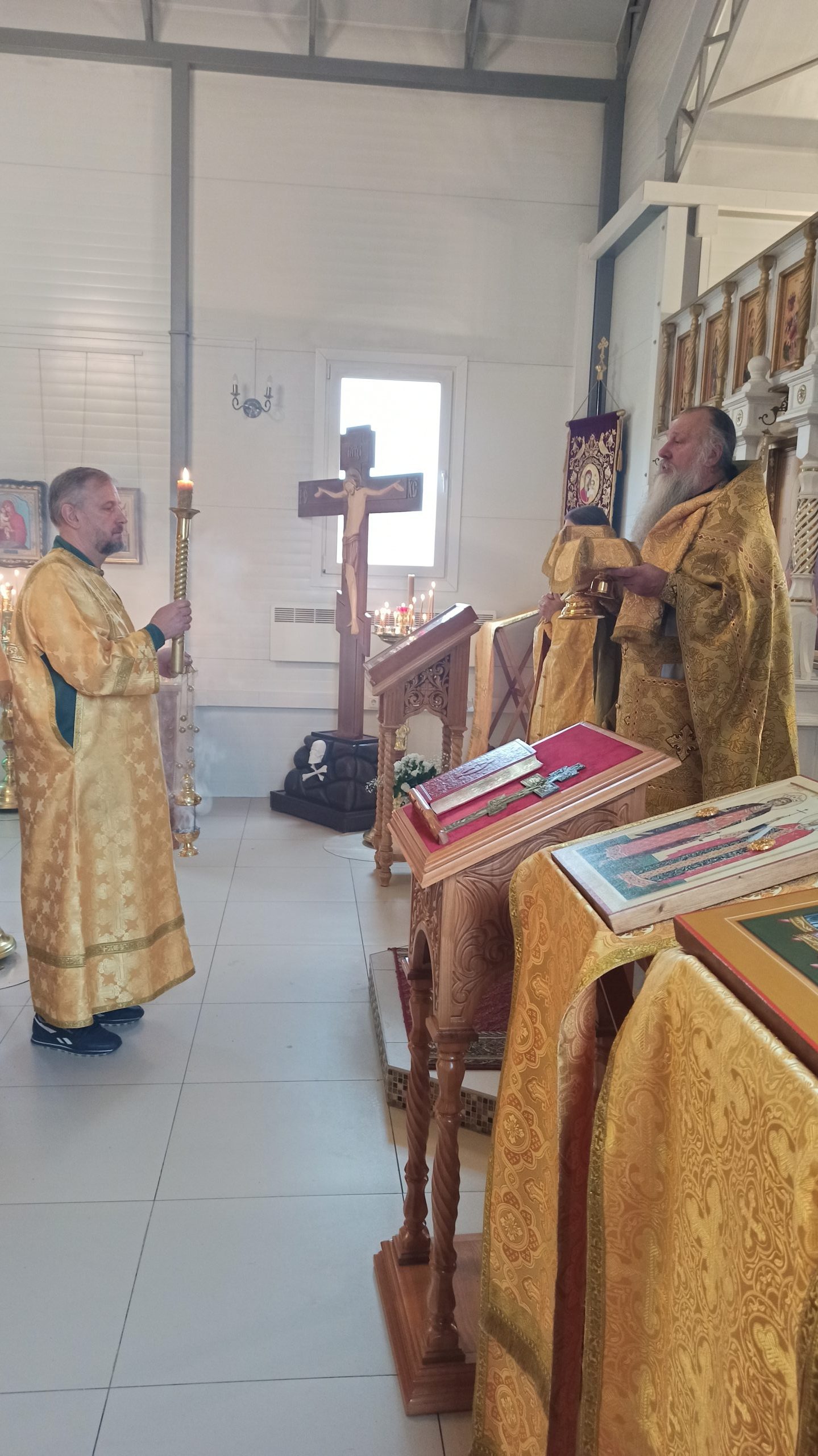 13 октября 2024 года, в Неделю 16-ю по Пятидесятнице, когда отмечается память свт. Михаила, первого митр. Киевского, исполняющий обязанности настоятеля храма святых равноапостольных князя Владимира и княгини Ольги в Черёмушках протоиерей Владимир Быстрый и клирик храма иерей Димитрий Гончаренко совершили литургию, молебен и литию.