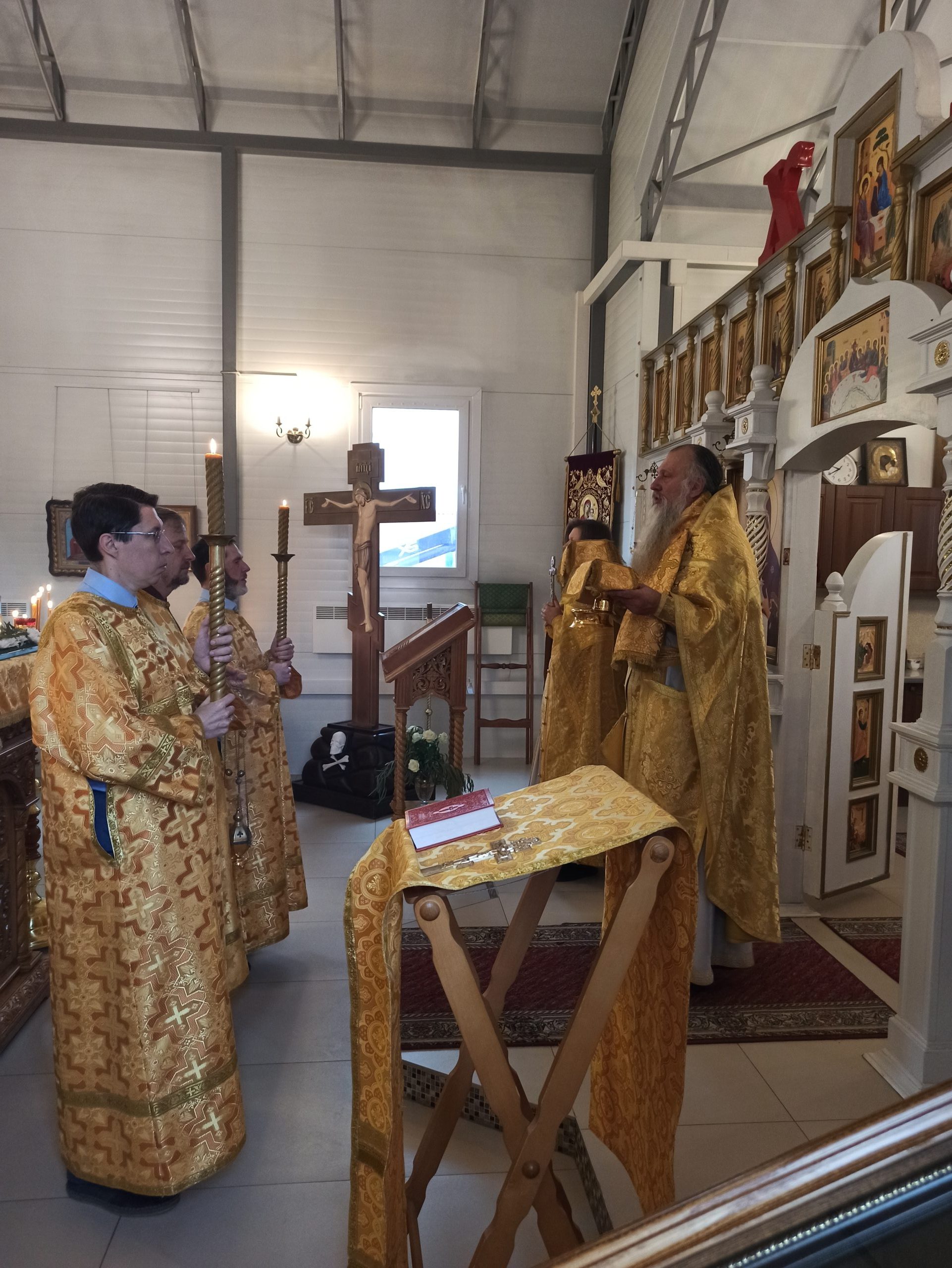 1 октября 2023 года, в Неделю 17-ю по Пятидесятнице, по Воздвижении, когда отмечается Попразднство Воздвижения Креста Господня и память иконы Божией Матери, именуемой “Целительница”, исполняющий обязанности настоятеля храма святых равноапостольных князя Владимира и княгини Ольги в Черёмушках протоиерей Владимир Быстрый и клирик храма иерей Димитрий Гончаренко совершили литургию, молебен и литию.