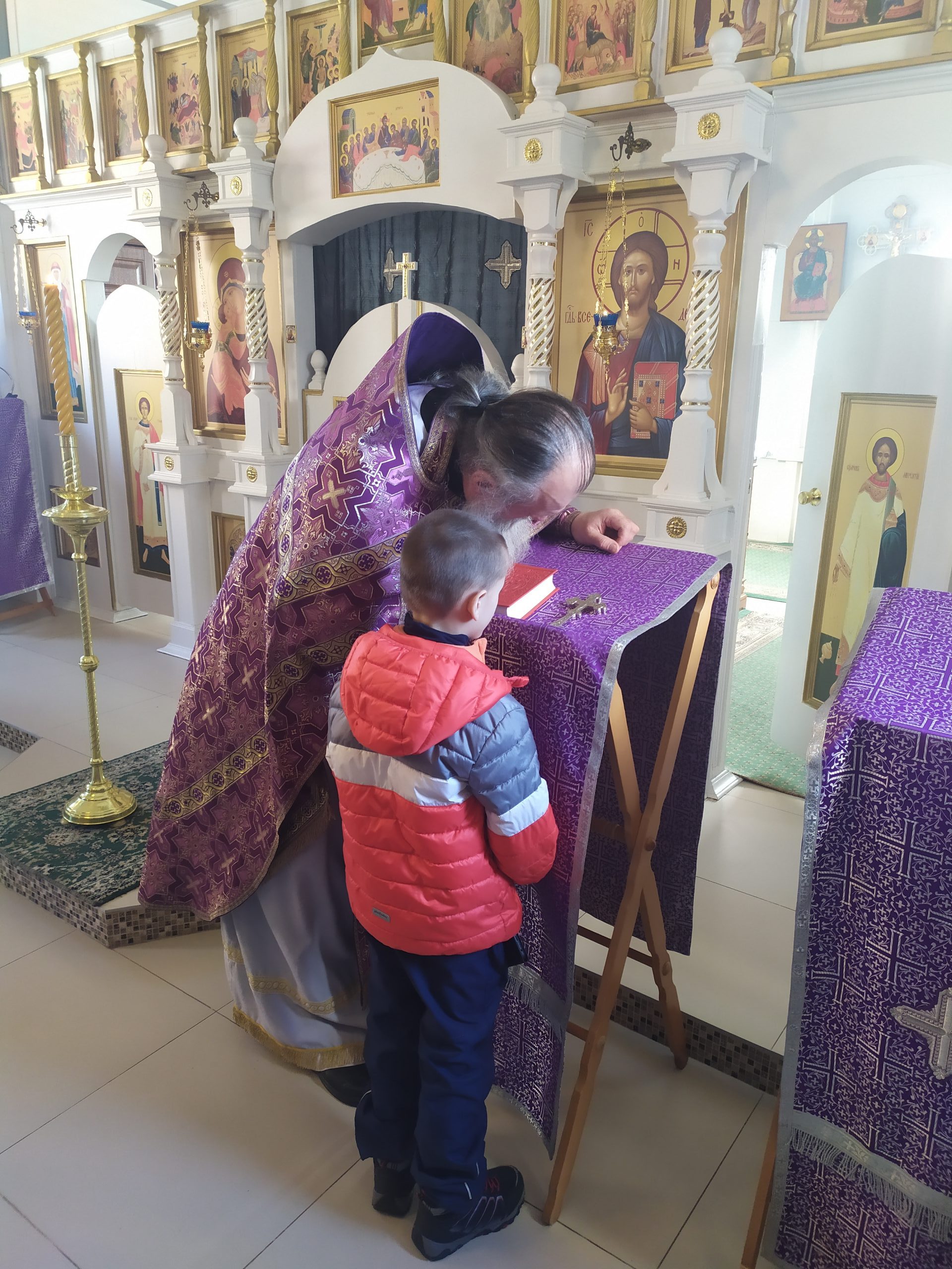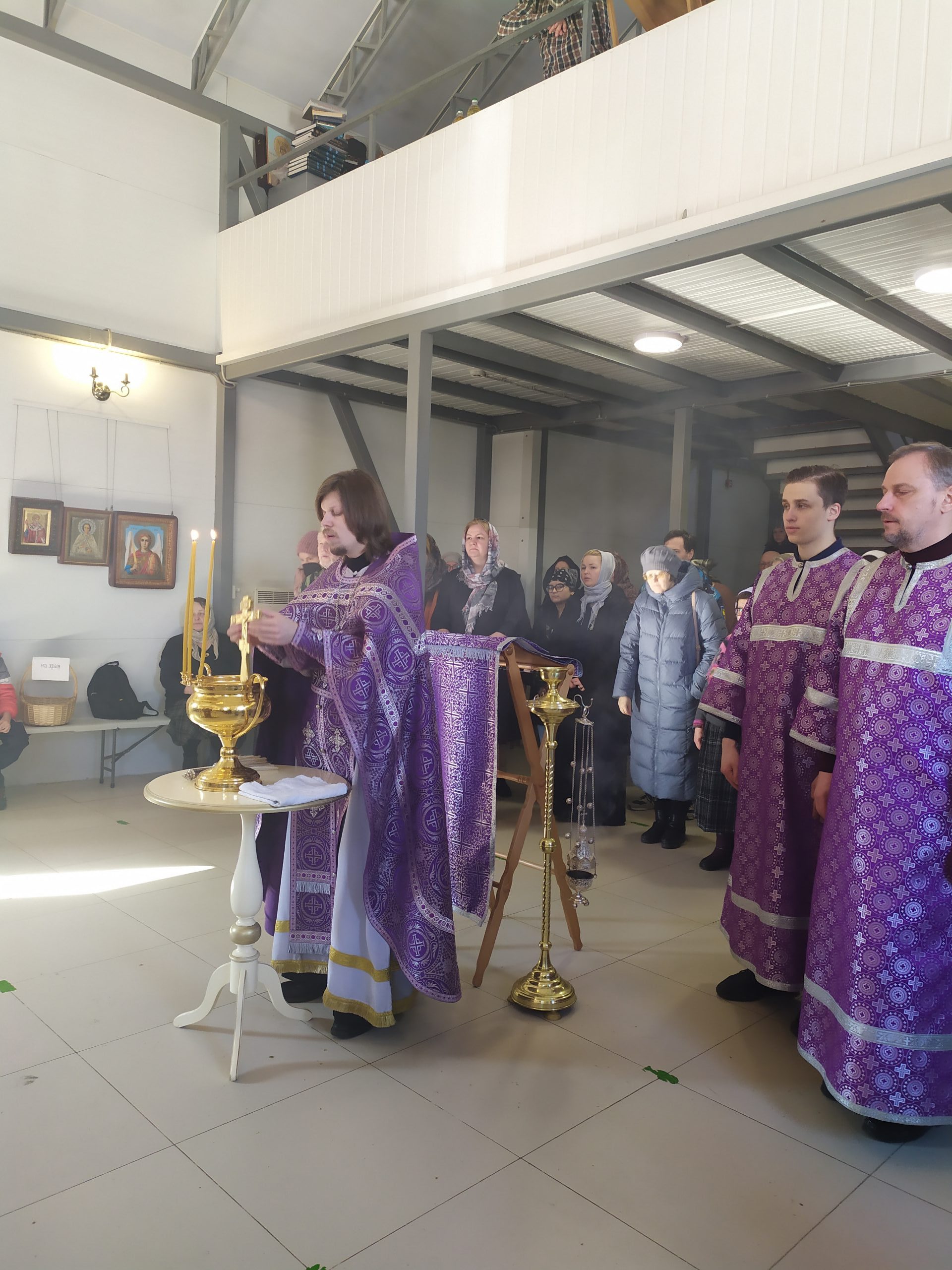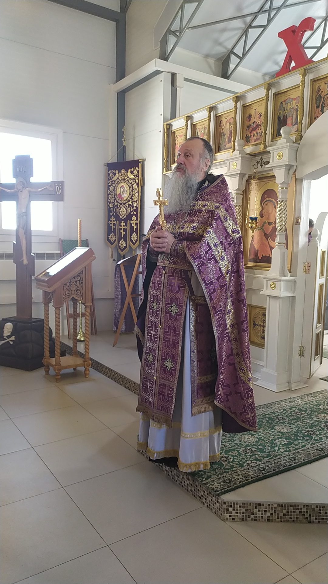 После литургии протоиерей Владимир Быстрый зачитал обращение Святейшего Патриарха Московского и всея Руси Кирилла в связи с событиями на Украине и обратился со словом к пастве.