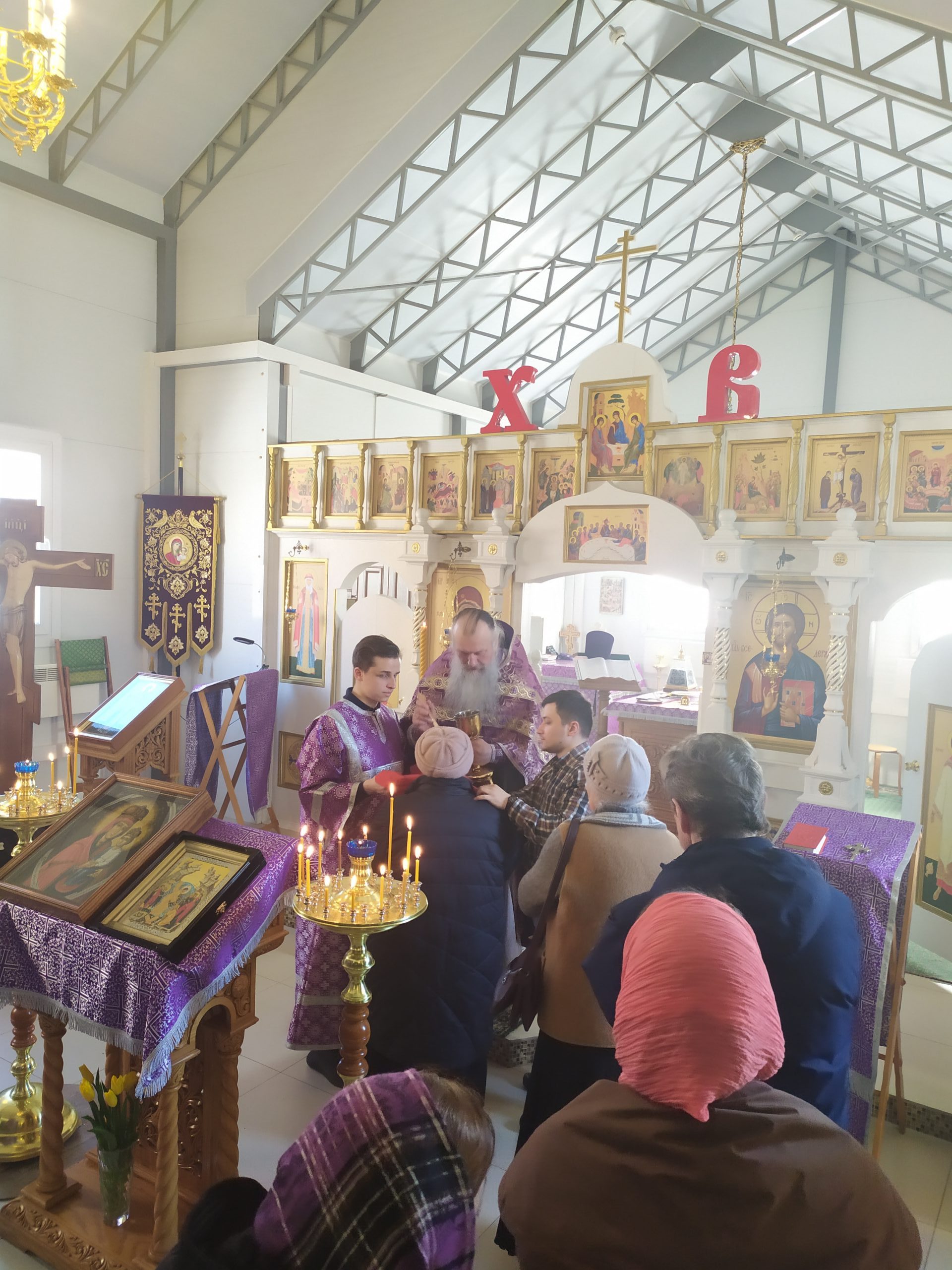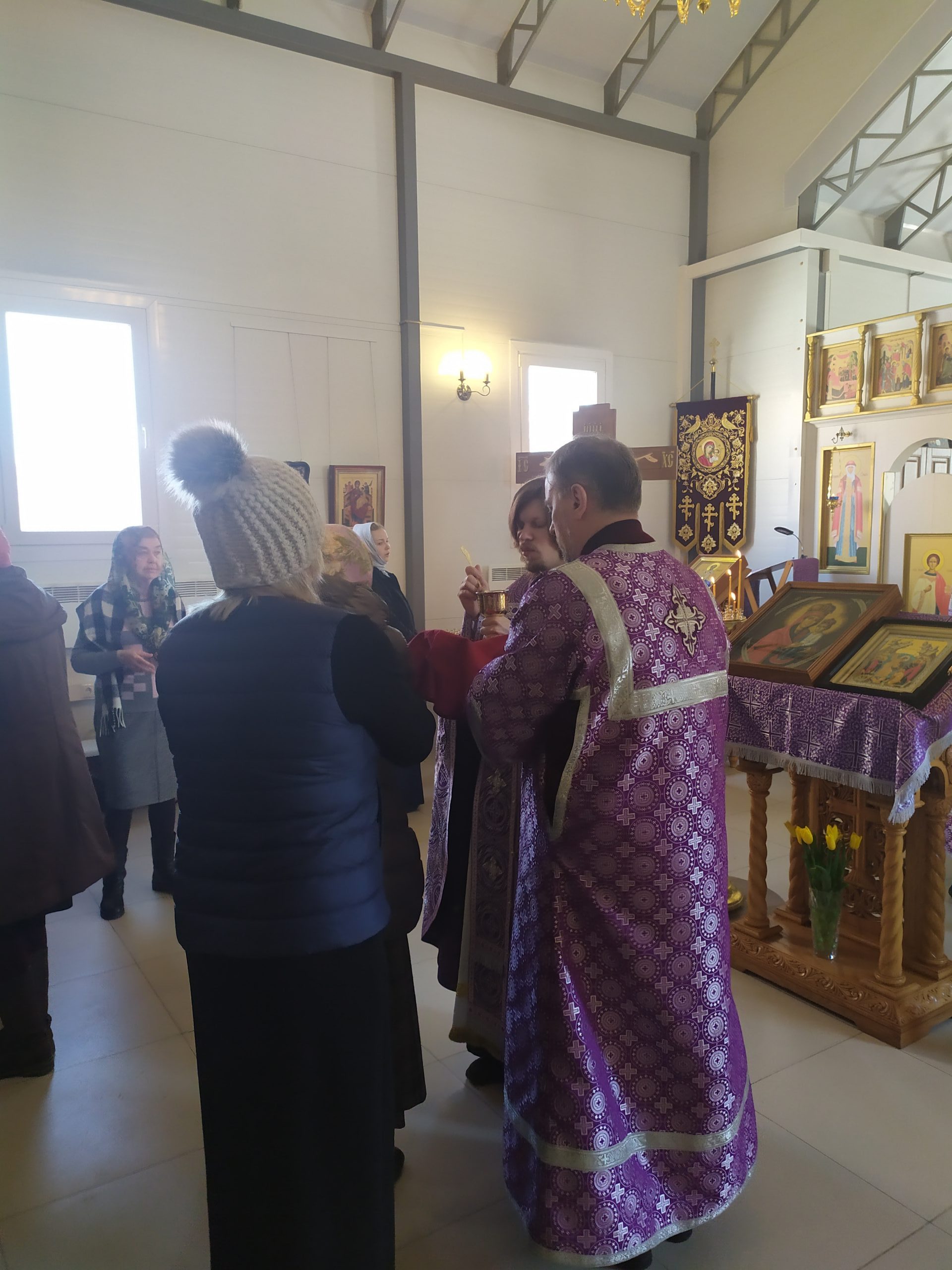 20 марта 2022 года, в Неделю 2-ю Великого поста, в день памяти свт. Григория Паламы, архиеп. Солунского, и иконы Божией Матери “Споручница грешных”, исполняющий обязанности настоятеля храма святых равноапостольных князя Владимира и княгини Ольги в Черёмушках протоиерей Владимир Быстрый и клирик храма иерей Димитрий Гончаренко совершили литургию, молебен, литию и соборование.