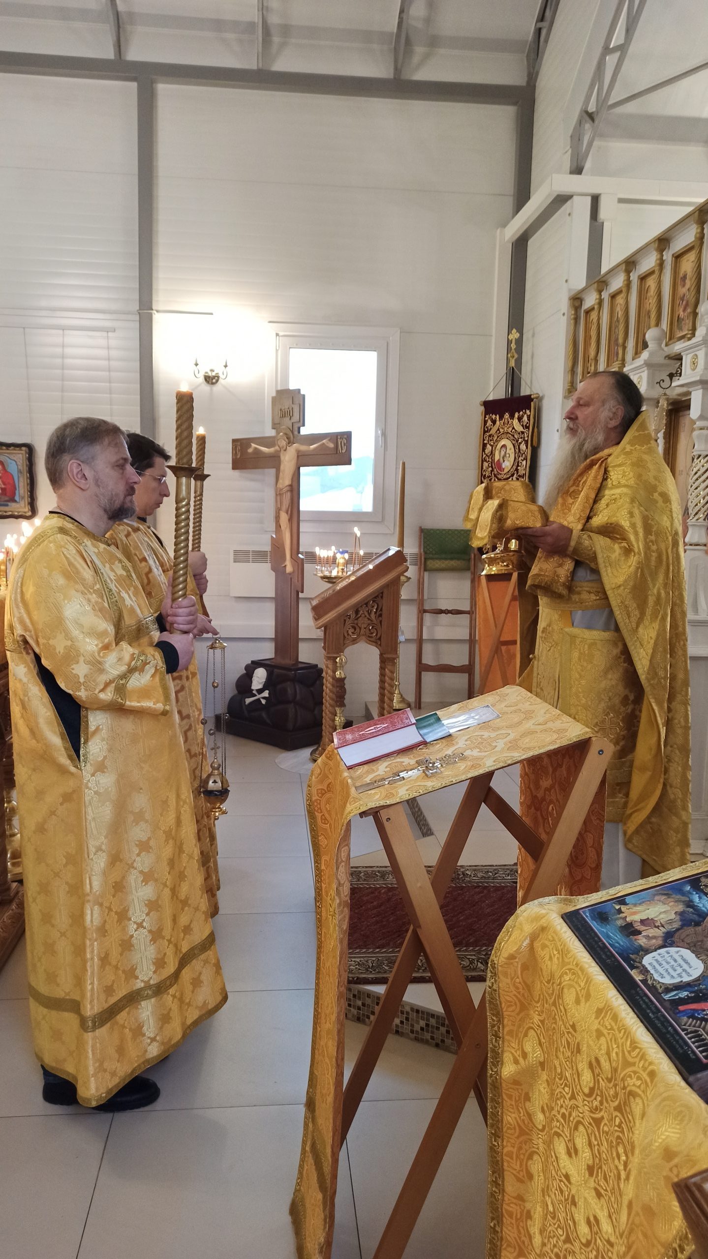 19 ноября 2023 года, в Неделю 24-ю по Пятидесятнице, когда отмечается память прп. Варлаама Хутынского, исполняющий обязанности настоятеля храма святых равноапостольных князя Владимира и княгини Ольги в Черёмушках протоиерей Владимир Быстрый совершил литургию, молебен и литию.