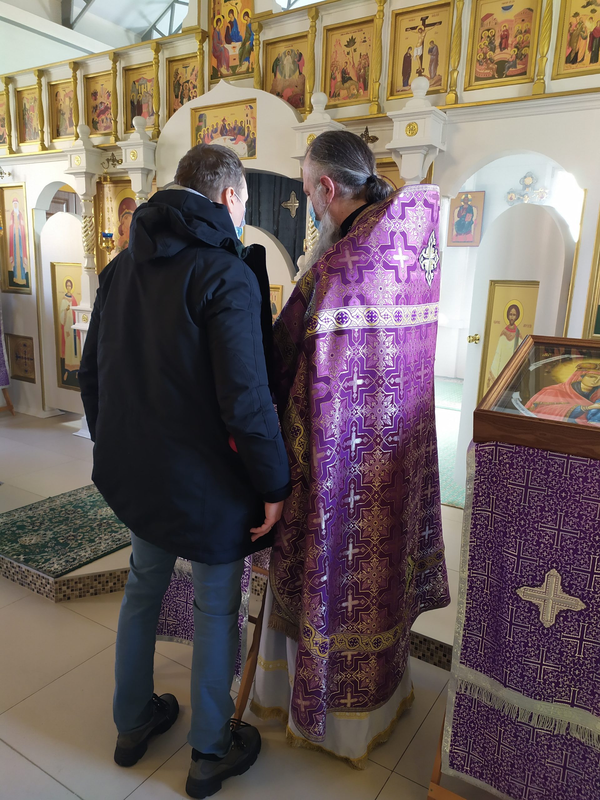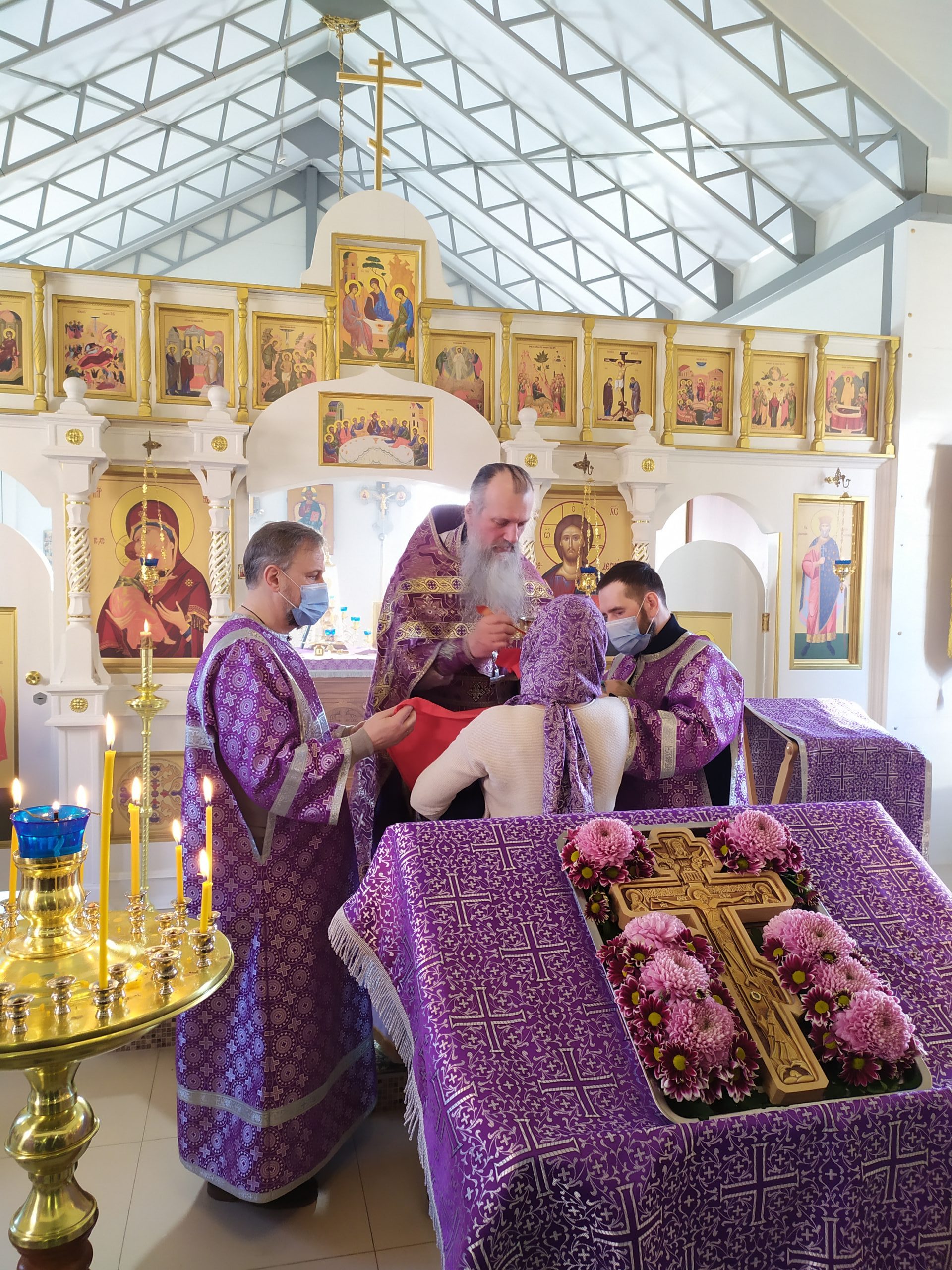 4 апреля 2021 года, в Неделю 3-ю Великого поста, Крестопоклонную, исполняющий обязанности настоятеля храма святых равноапостольных князя Владимира и княгини Ольги в Черёмушках г. Москвы протоиерей Владимир Быстрый и штатный клирик храма иерей Димитрий Гончаренко совершили Божественную Литургию и молебен.