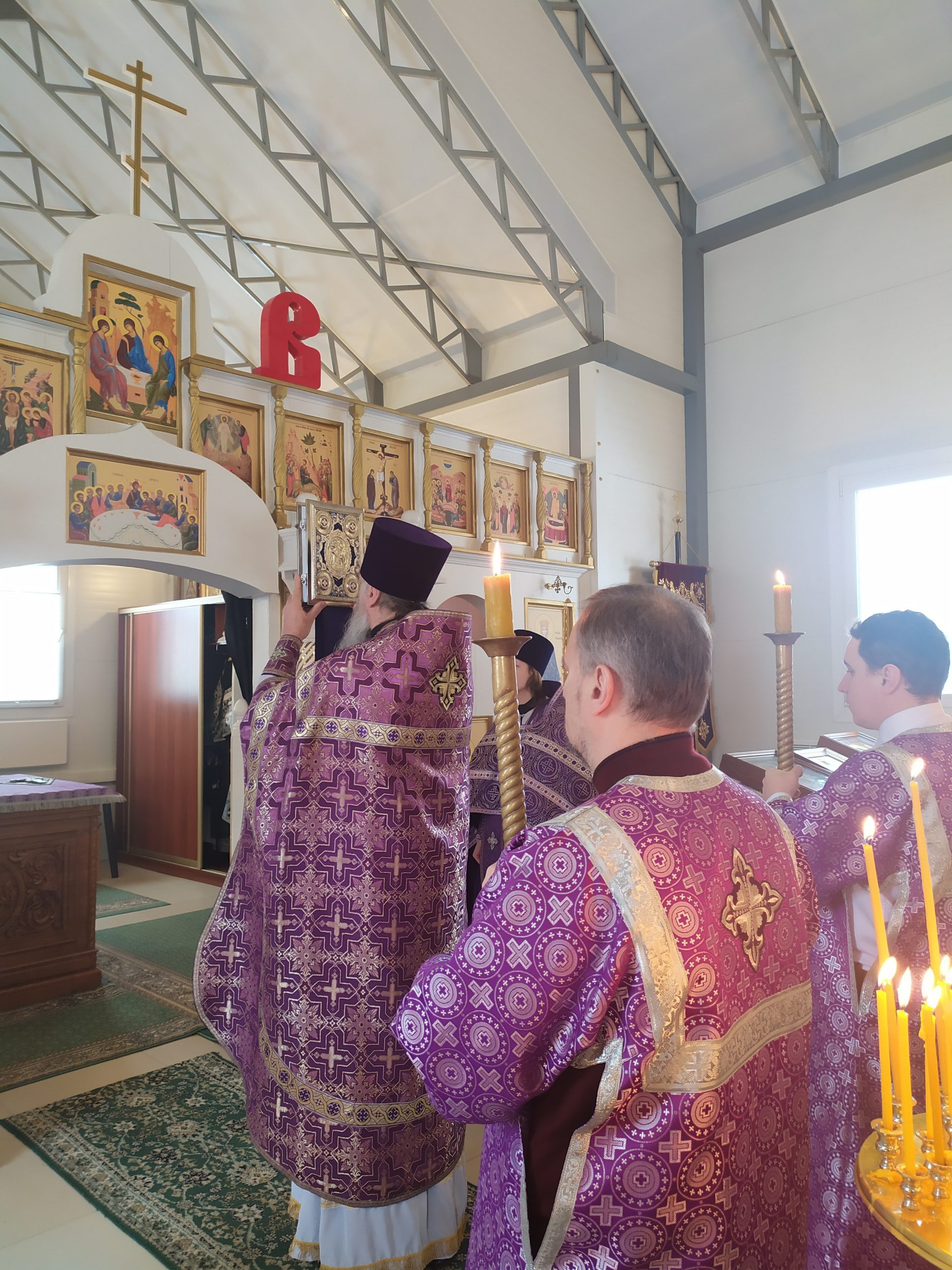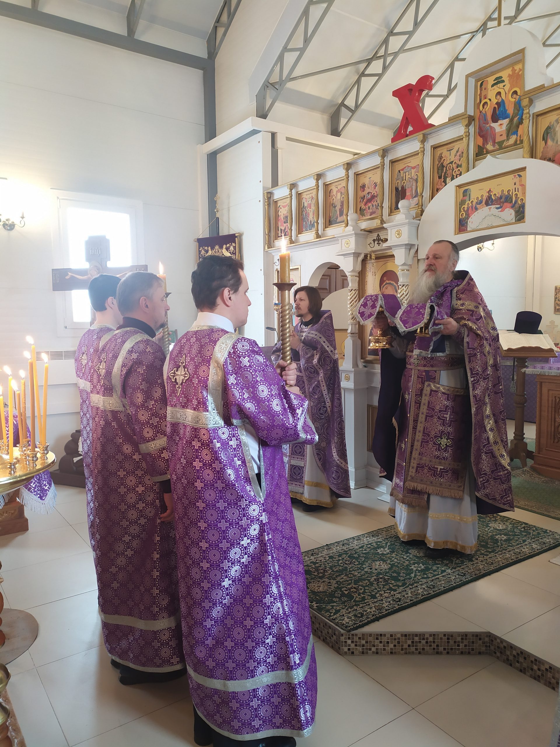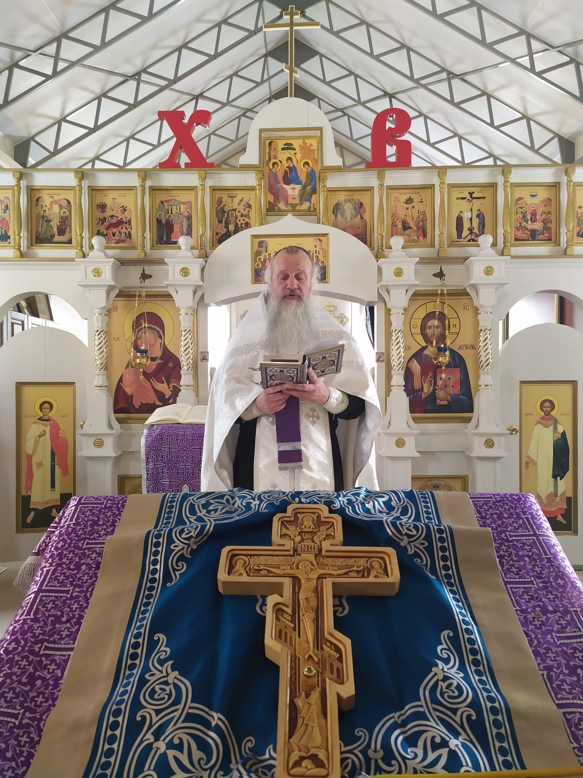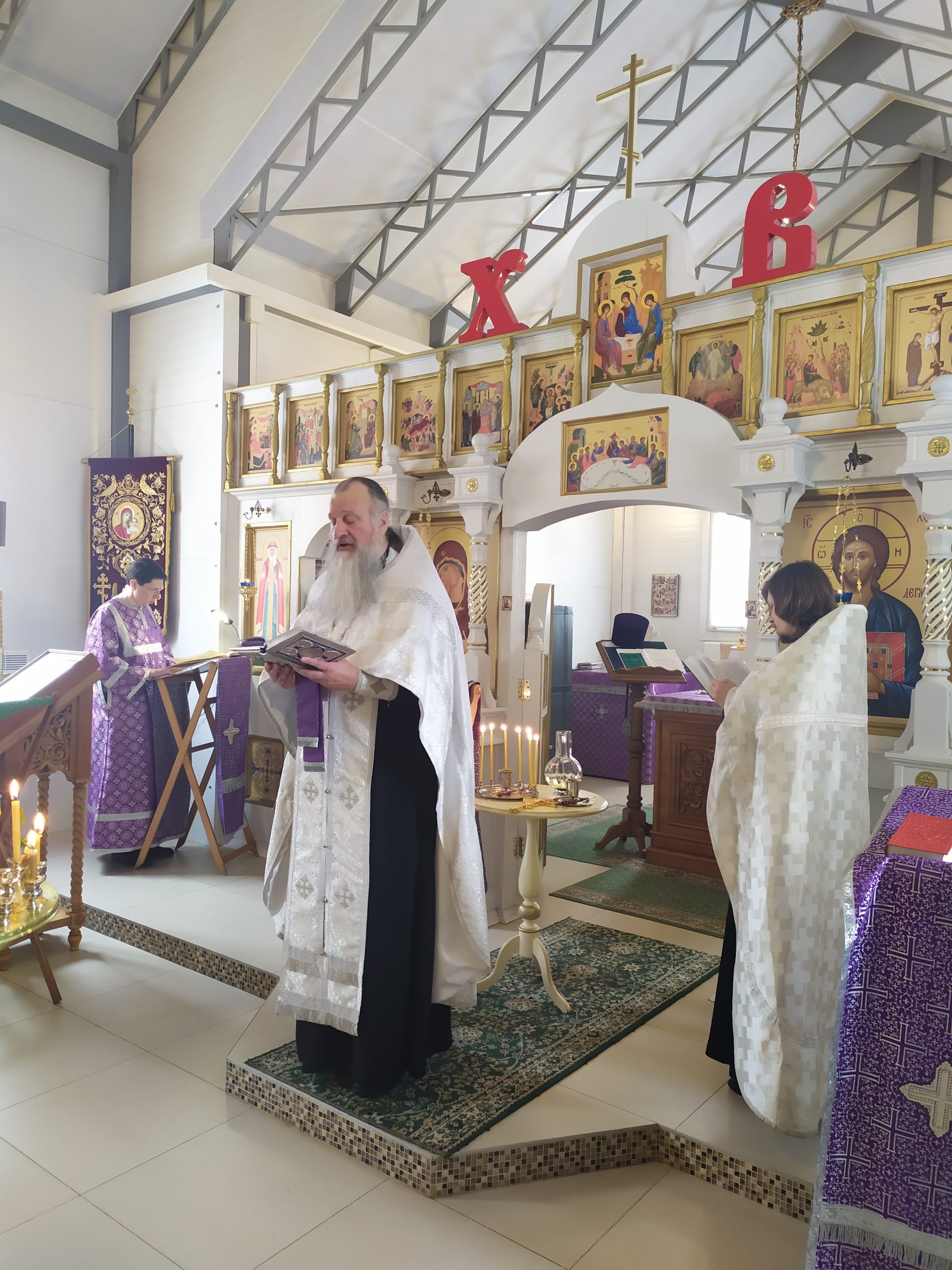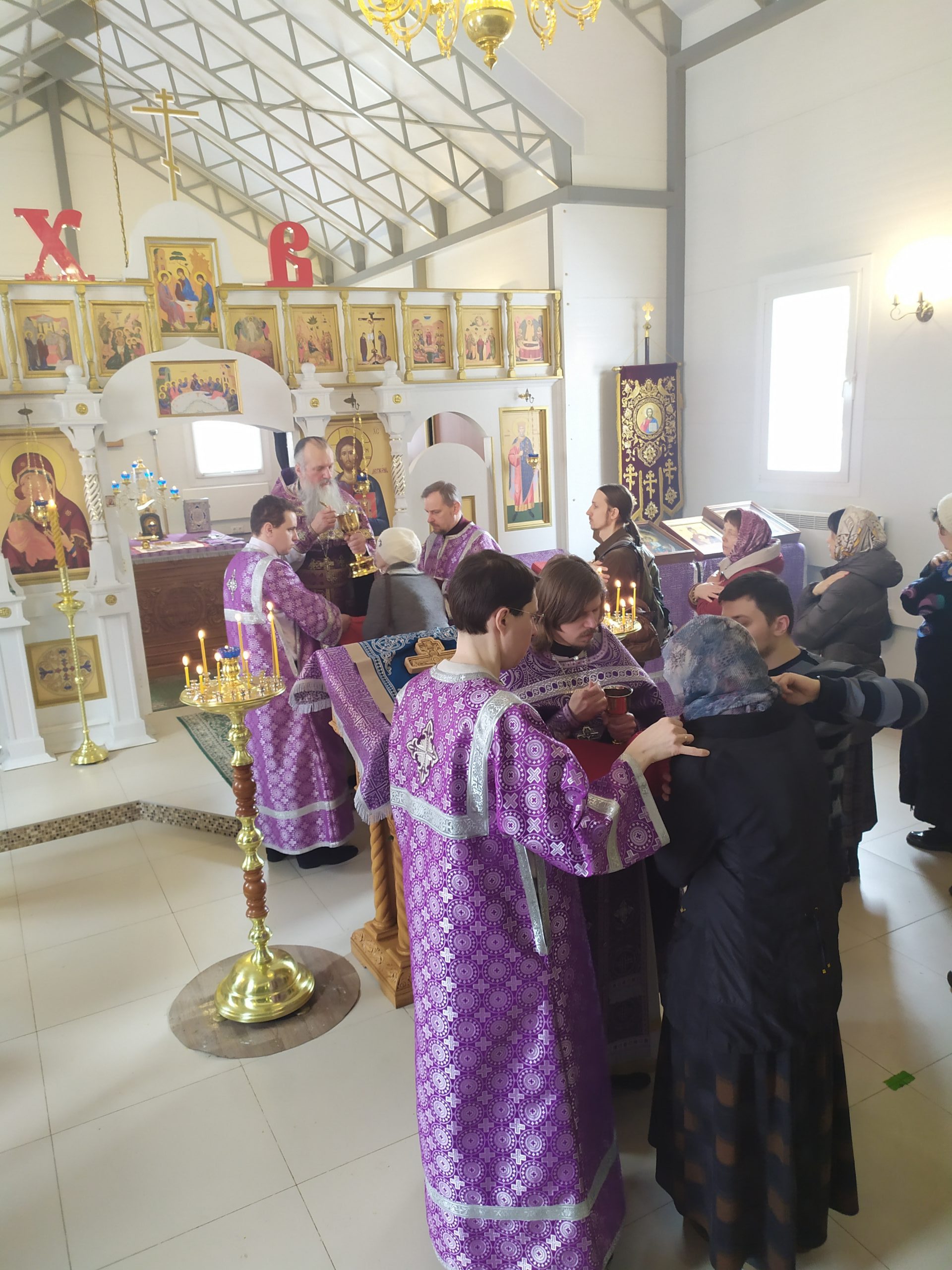 27 марта 2022 года, в Неделю 3-ю Великого поста, Крестопоклонную, исполняющий обязанности настоятеля храма святых равноапостольных князя Владимира и княгини Ольги в Черёмушках протоиерей Владимир Быстрый и клирик храма иерей Димитрий Гончаренко совершили литургию, молебен, литию и соборование.