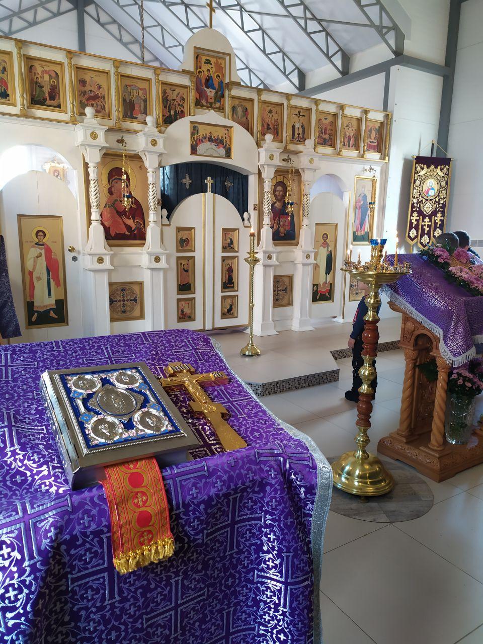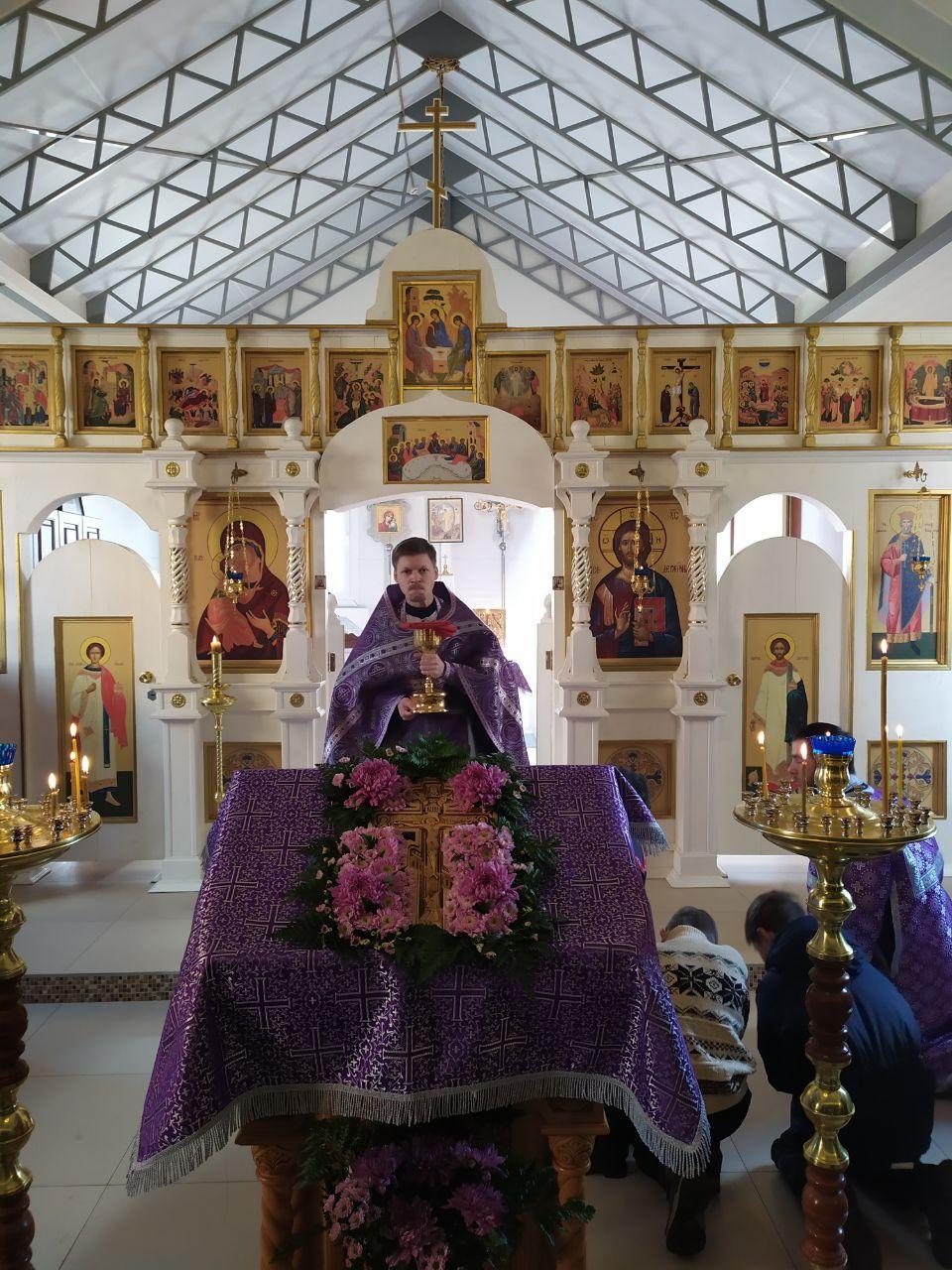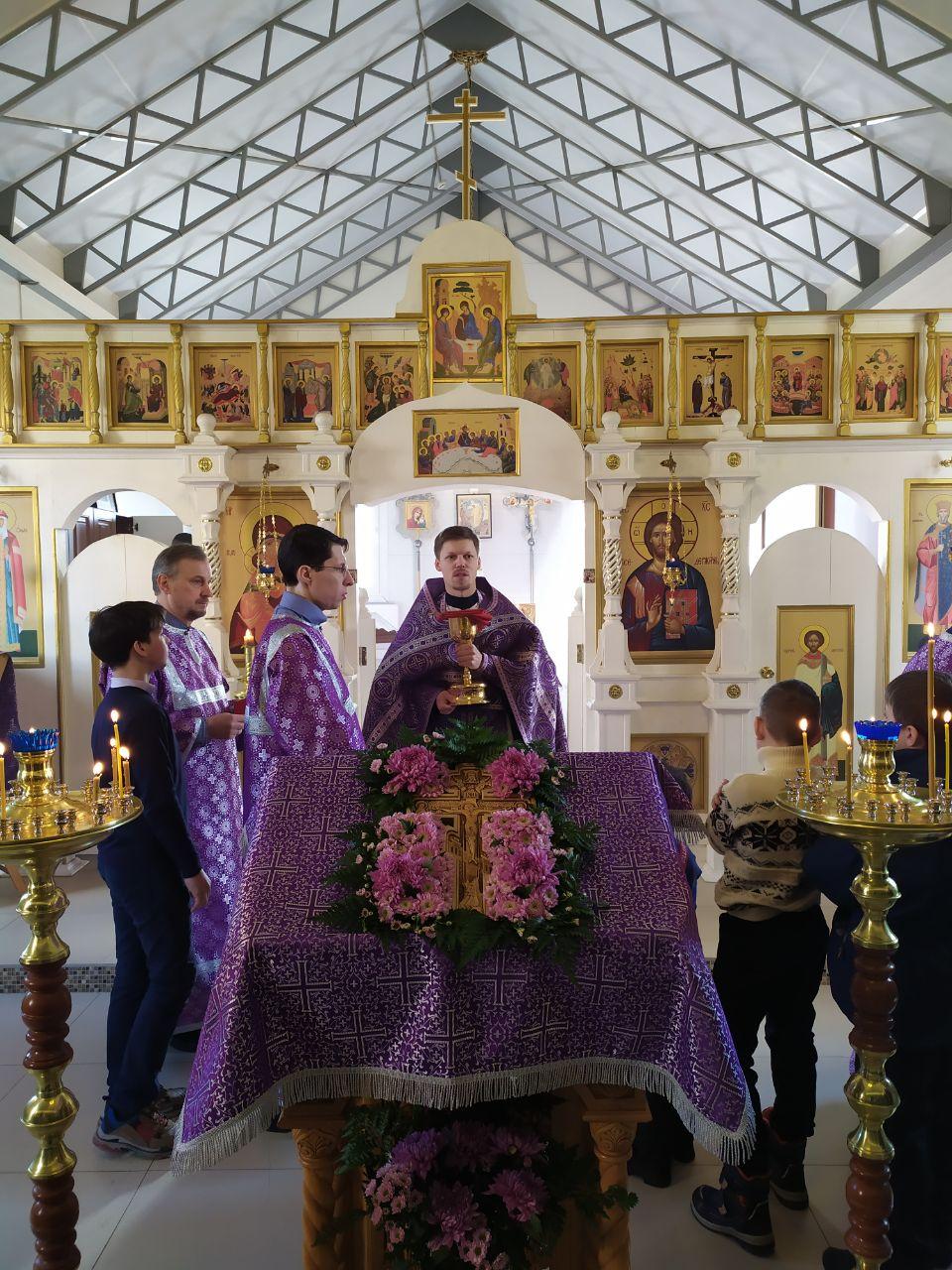 22 марта 2020 года, в Неделю 3-ю Великого поста, Крестопоклонную, дня памяти 40 мучеников, в Севастийском озере мучившихся, исполняющий обязанности настоятеля храма святых равноапостольных князя Владимира и княгини Ольги в Черемушках г. Москвы протоиерей Владимир Быстрый и штатный клирик храма иерей Димитрий Гончаренко совершили Литургию святителя Василия Великого.