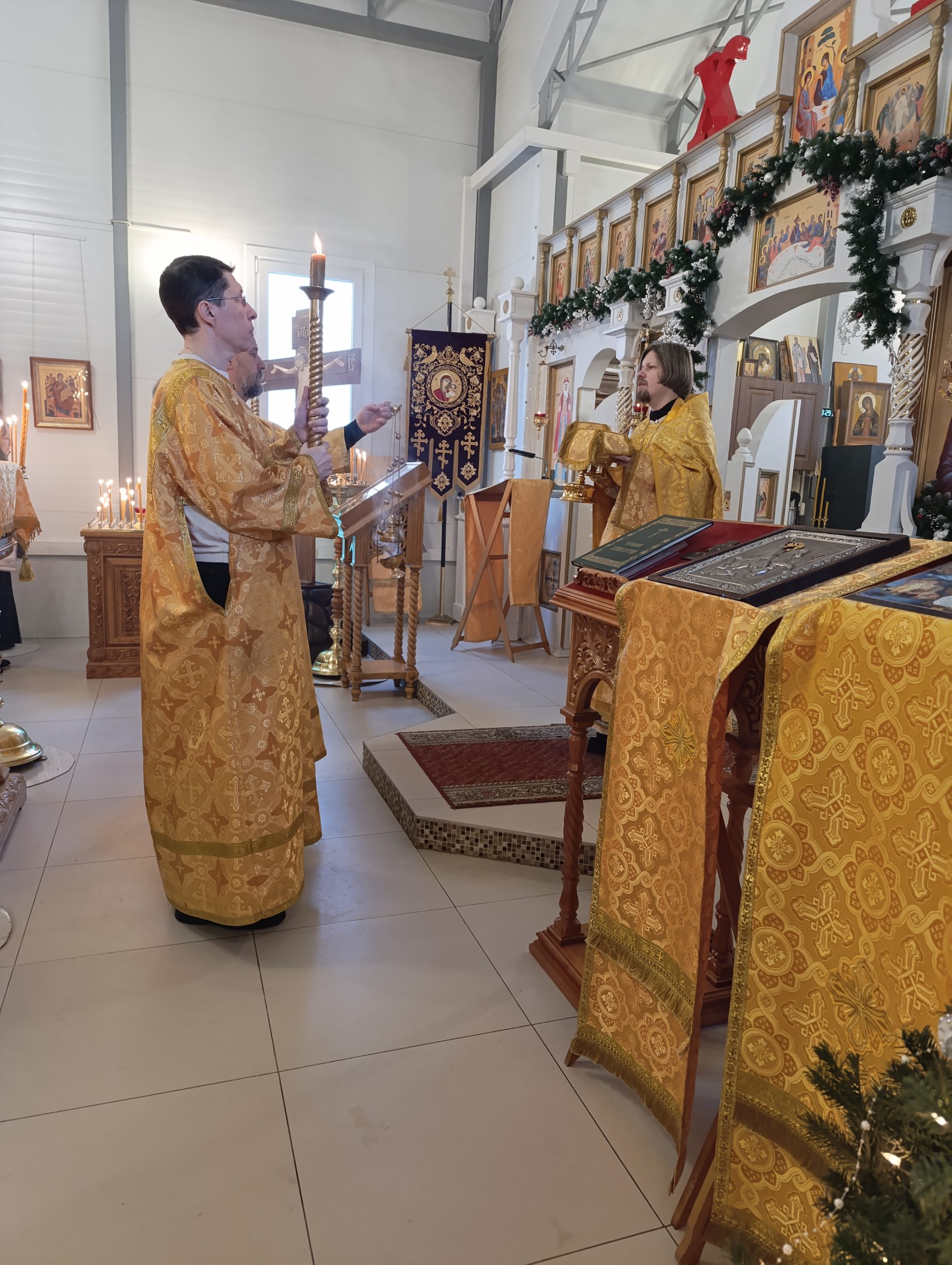 4 января 2026 года, в Неделю 30-ю по Пятидесятнице, перед Рождеством Христовым, святых отец, когда празднуется память вмц. Анастасии Узорешительницы, клирик храма святых равноапостольных князя Владимира и княгини Ольги в Черёмушках иерей Димитрий Гончаренко совершил литургию.
