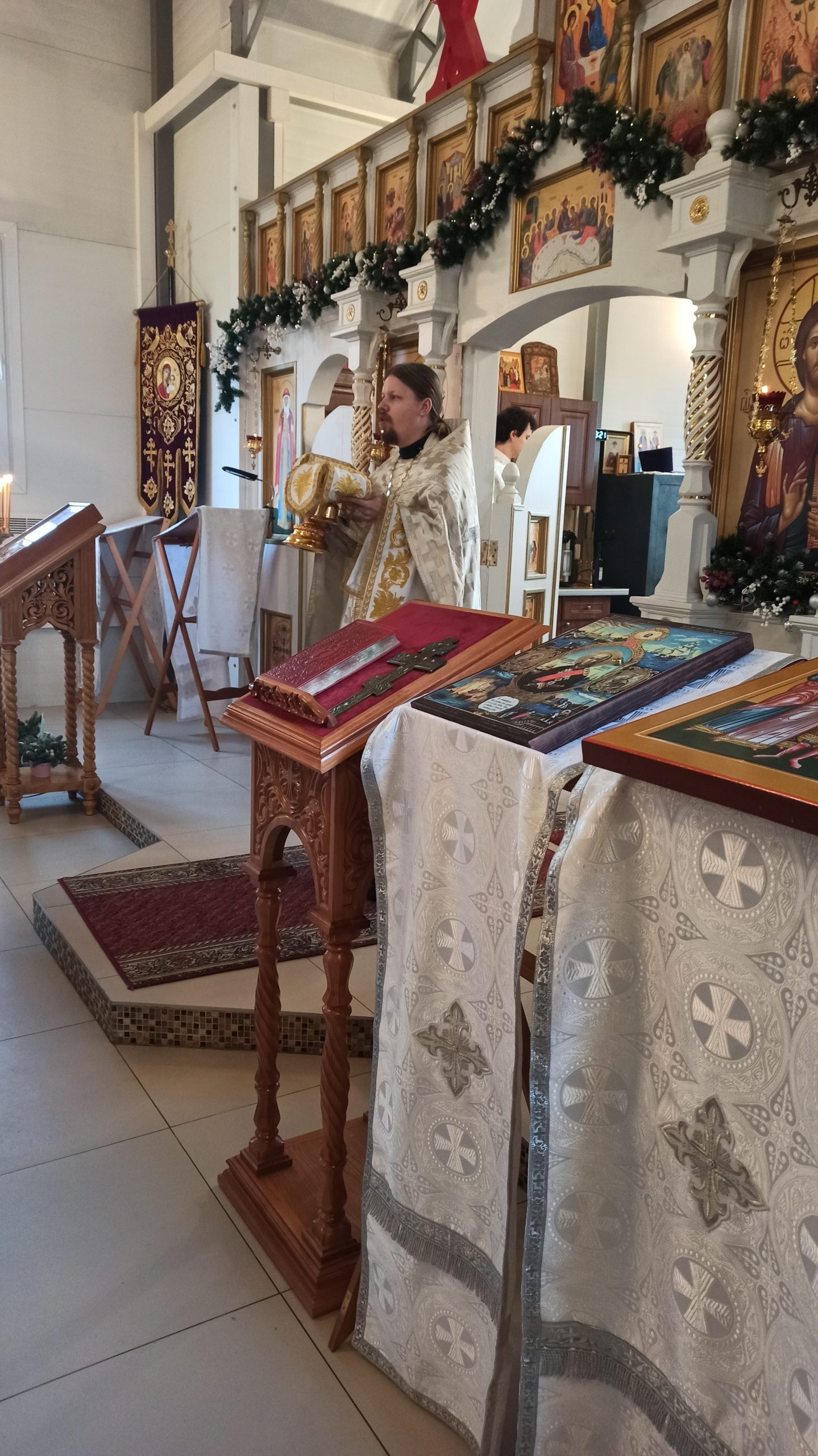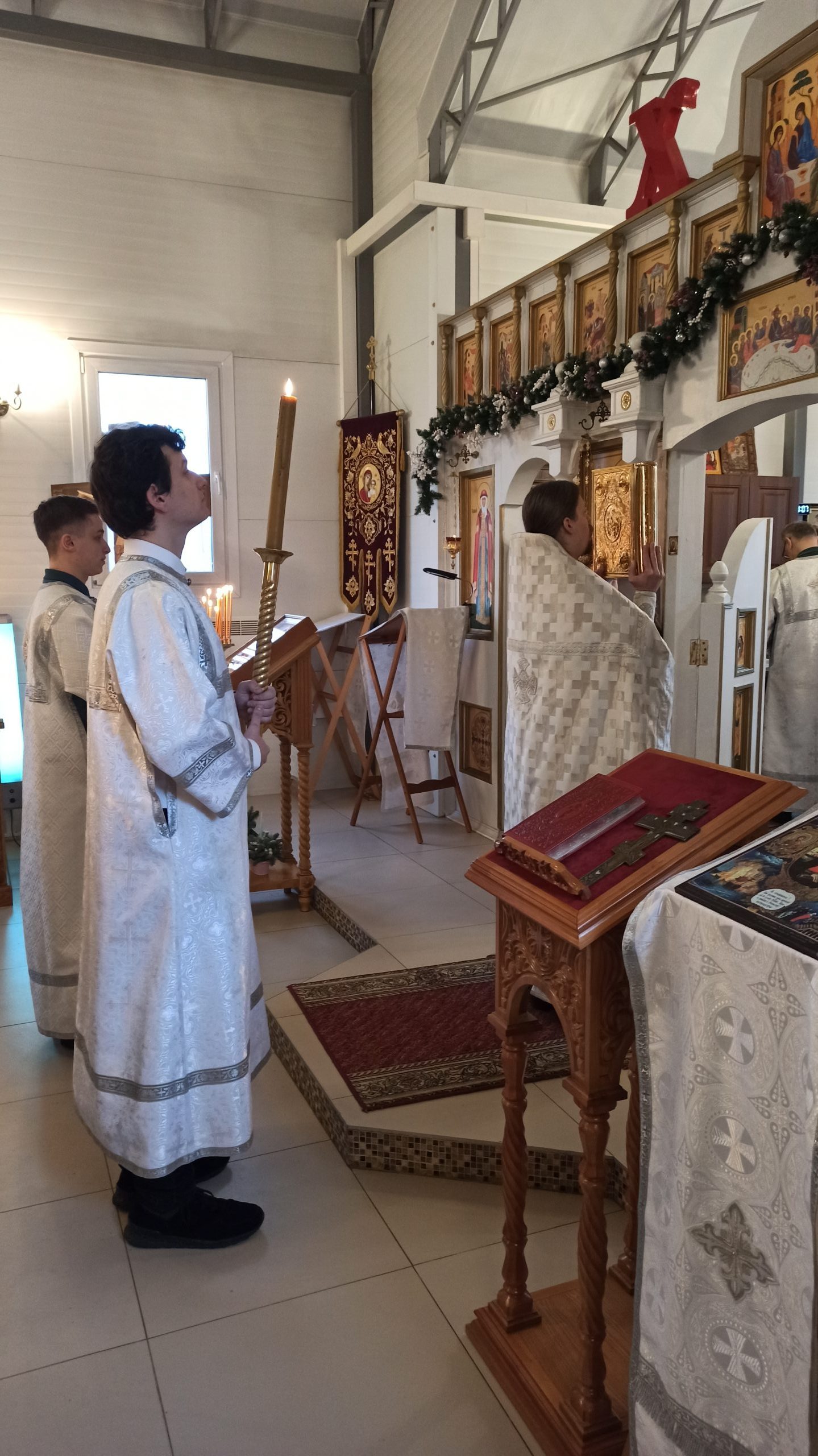 19 января 2025 года, в Неделю 30-ю по Пятидесятнице, когда празднуется Святое Богоявление, Крещение Господа Бога и Спаса нашего Иисуса Христа, клирик храма святых равноапостольных князя Владимира и княгини Ольги в Черёмушках иерей Димитрий Гончаренко совершил литургию и великое освящение воды.
