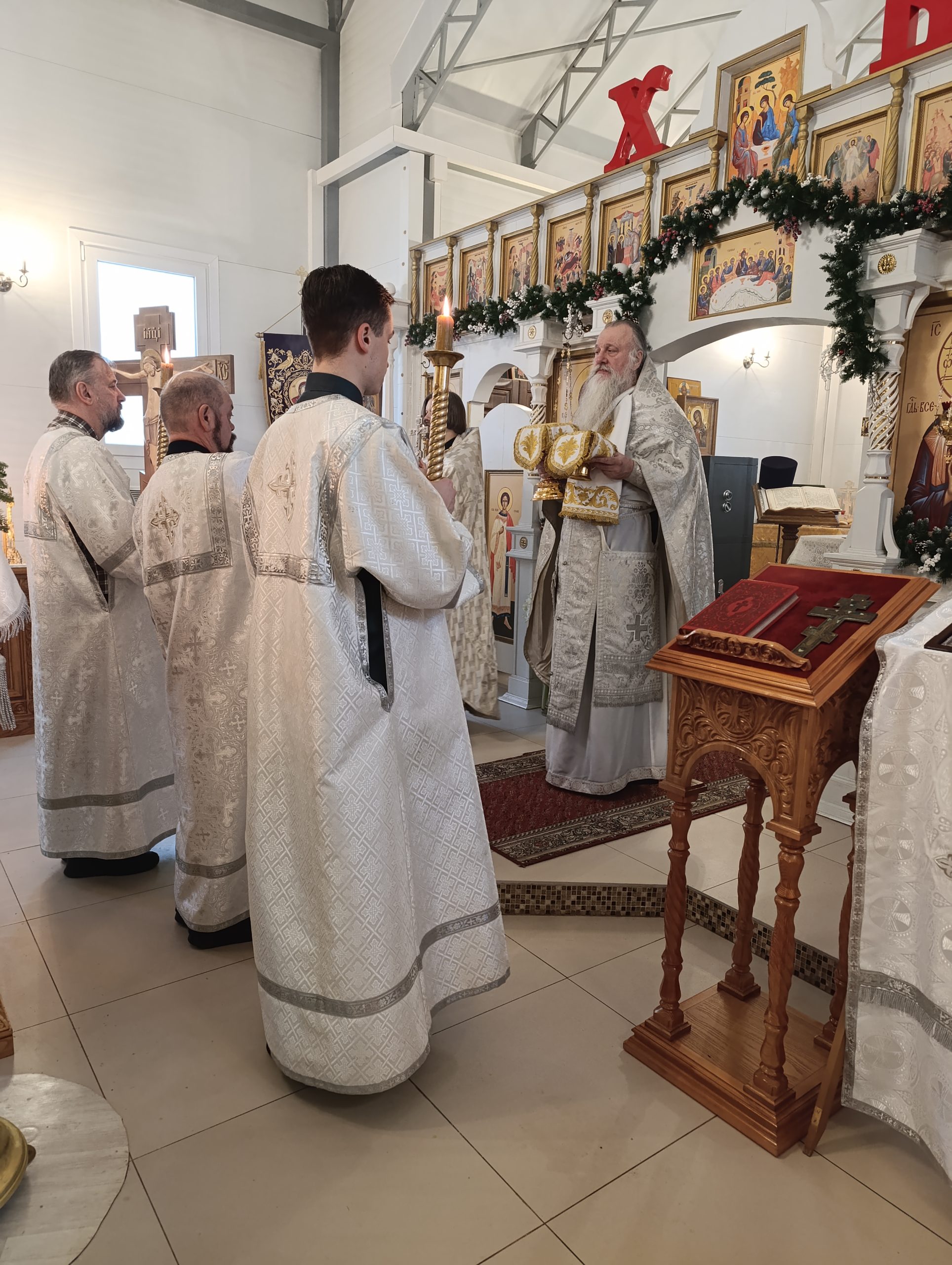 11 января 2026 года, в Неделю 31-ю по Пятидесятнице, по Рождестве Христовом, когда празднуется память правв. Иосифа Обручника, Давида царя и Иакова, брата Господня, исполняющий обязанности настоятеля храма святых равноапостольных князя Владимира и княгини Ольги в Черёмушках протоиерей Владимир Быстрый и клирик храма иерей Димитрий Гончаренко совершили литургию.