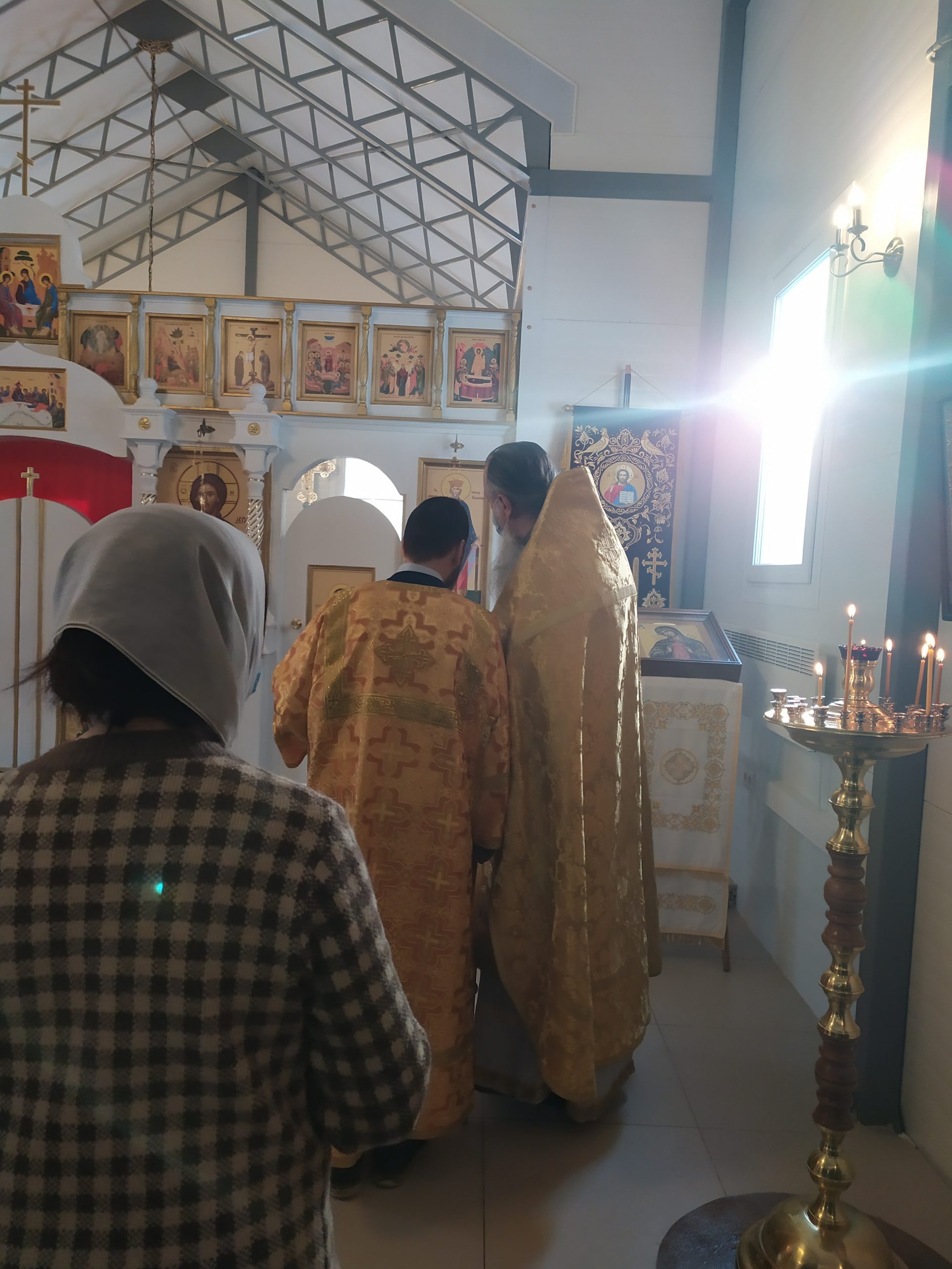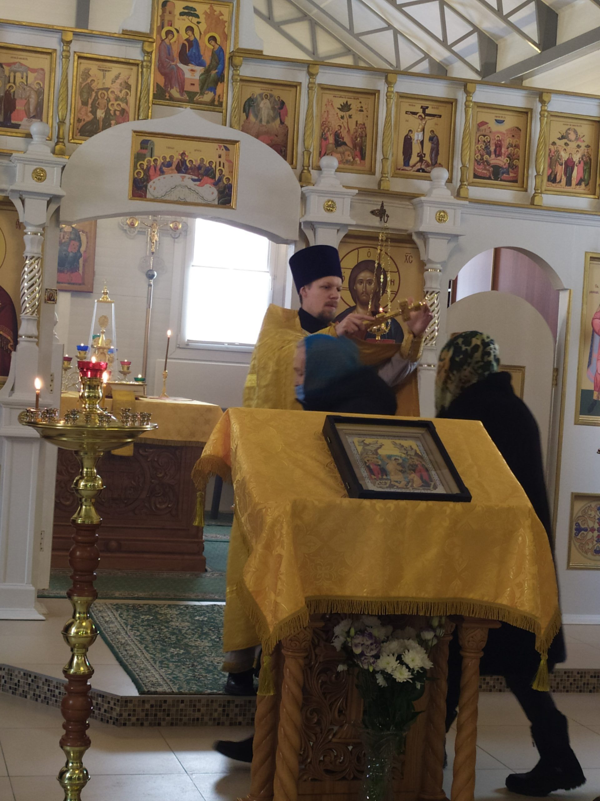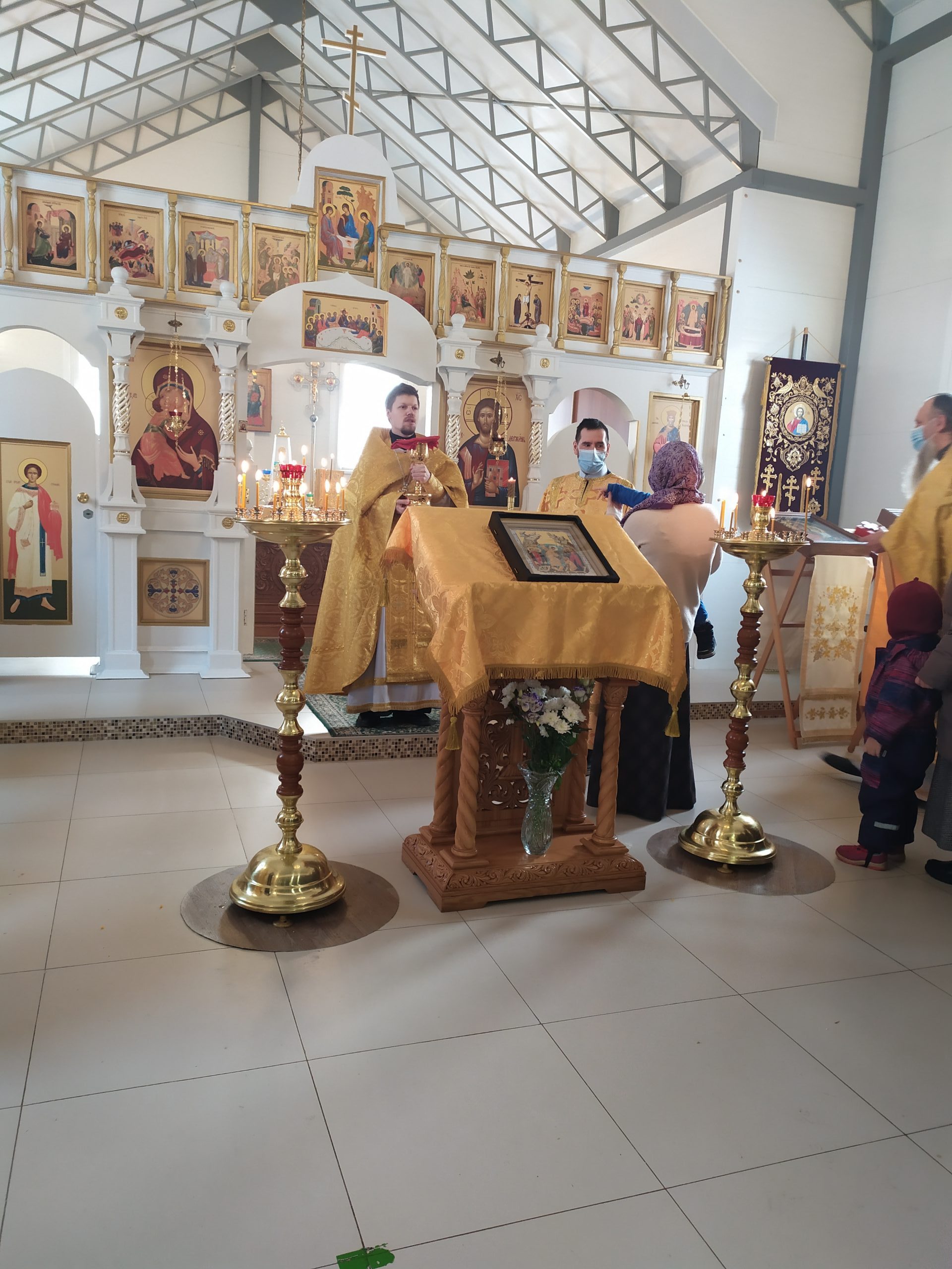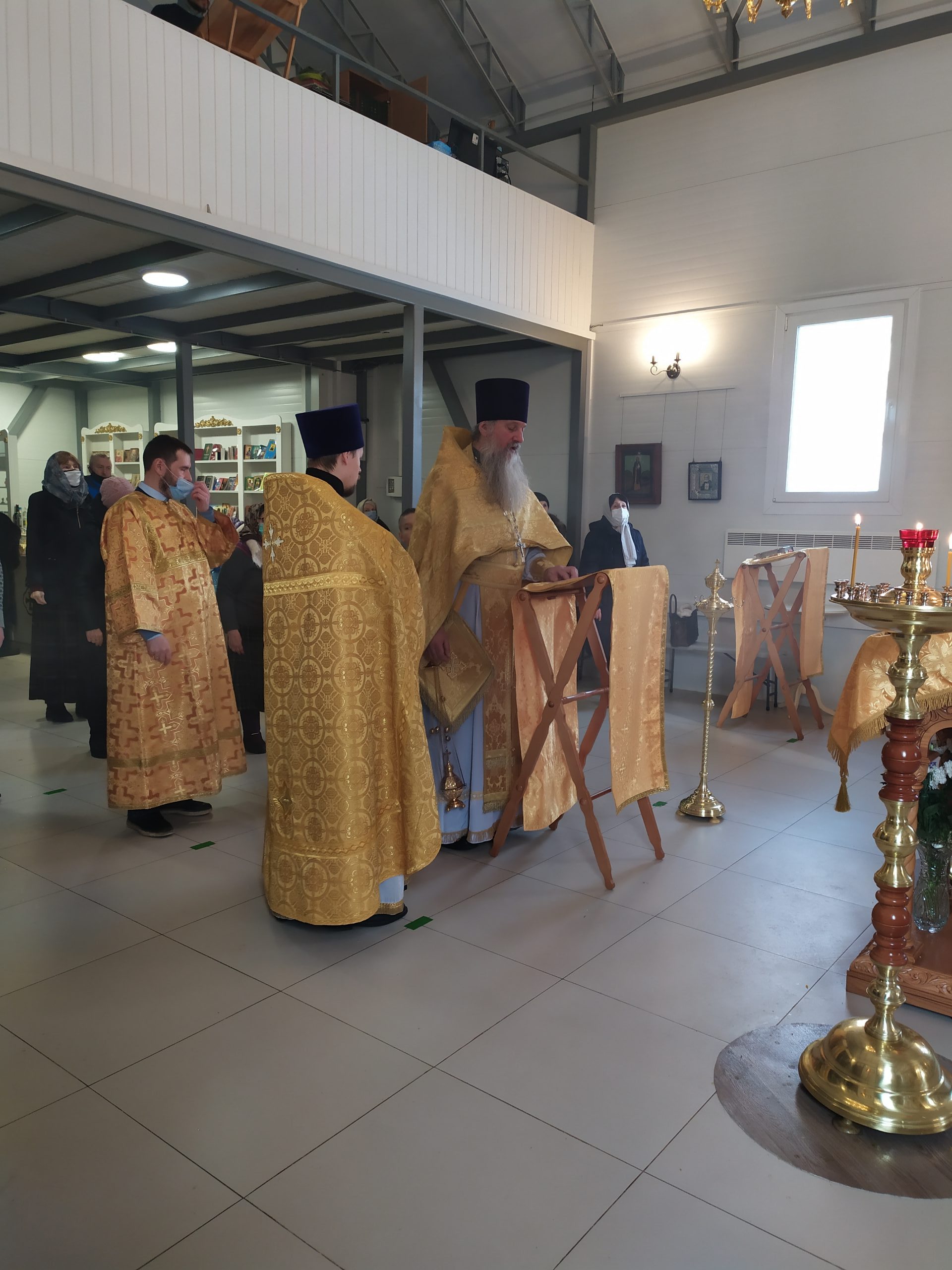 7 февраля 2021 года, в Неделю 35-ю по Пятидесятнице, в день памяти Собора новомучеников и исповедников Церкви Русской, а также свт. Григория Богослова, архиеп. Константинопольского, исполняющий обязанности настоятеля храма святых равноапостольных князя Владимира и княгини Ольги в Черёмушках г. Москвы протоиерей Владимир Быстрый и штатный клирик храма иерей Димитрий Гончаренко совершили Божественную Литургию.