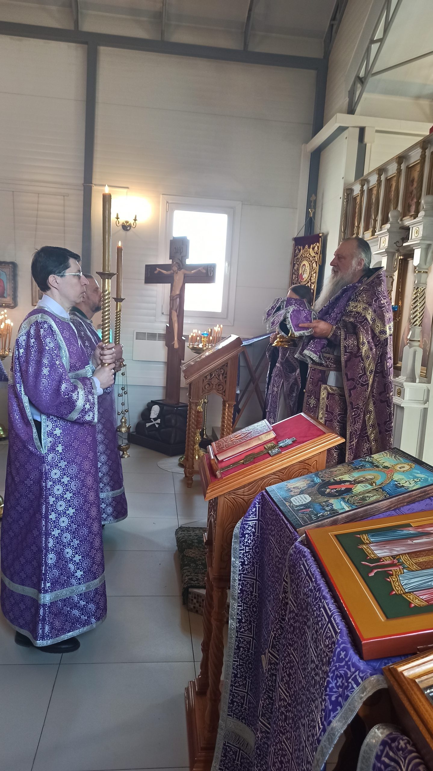 30 марта 2025 года, в Неделю 4-ю Великого поста, в день памяти прп. Иоанна Лествичника и прп. Алексия, человека Божия, исполняющий обязанности настоятеля храма святых равноапостольных князя Владимира и княгини Ольги в Черёмушках протоиерей Владимир Быстрый и клирик храма иерей Димитрий Гончаренко совершили литургию и литию.