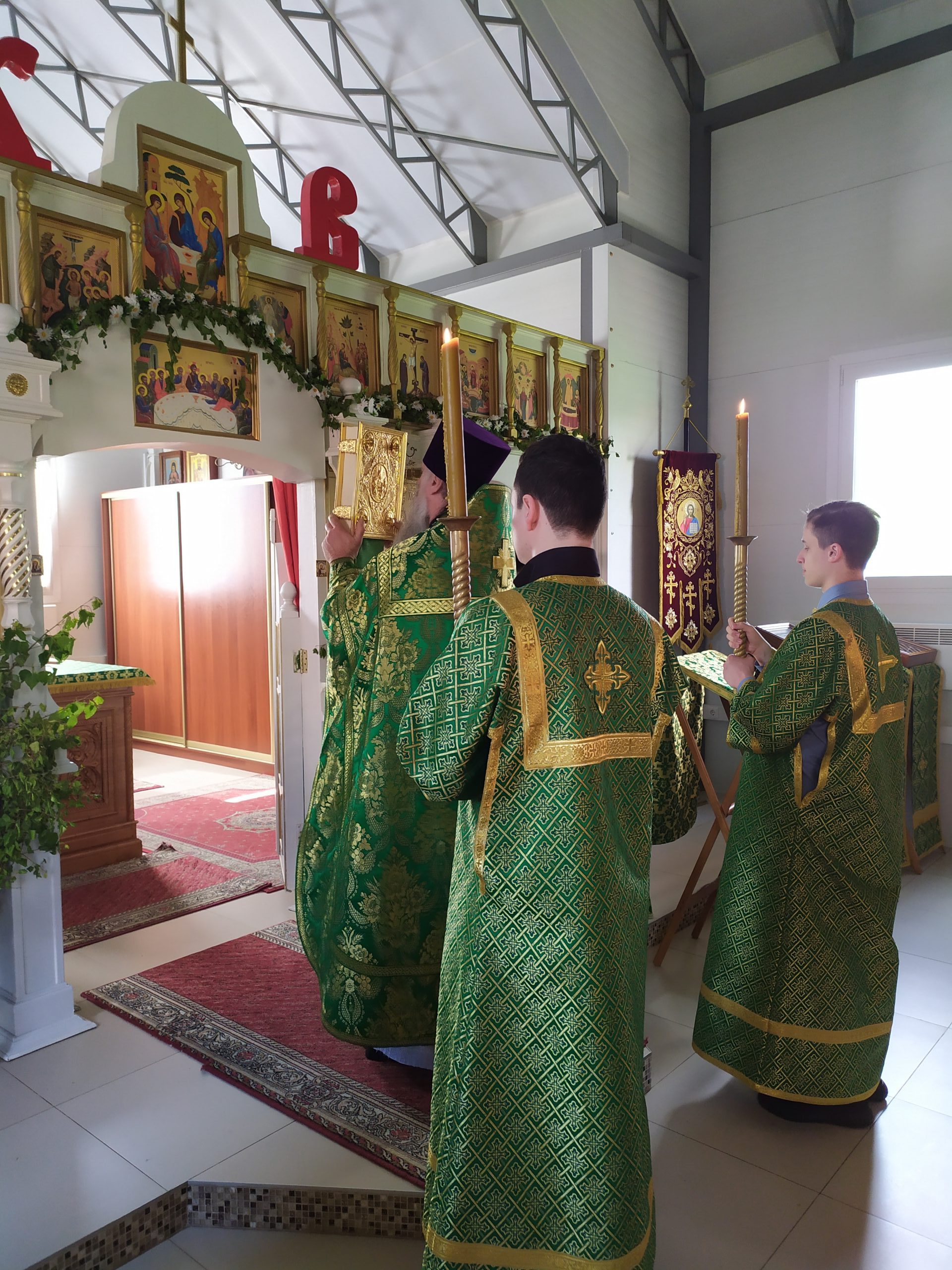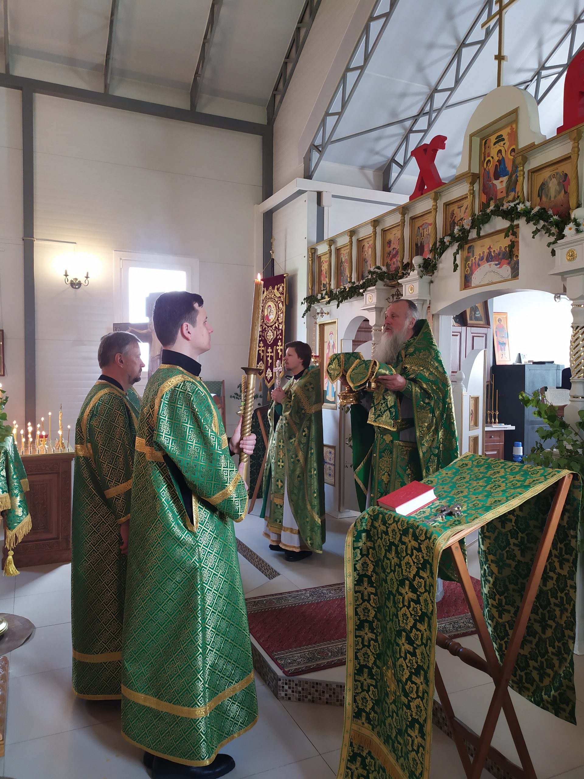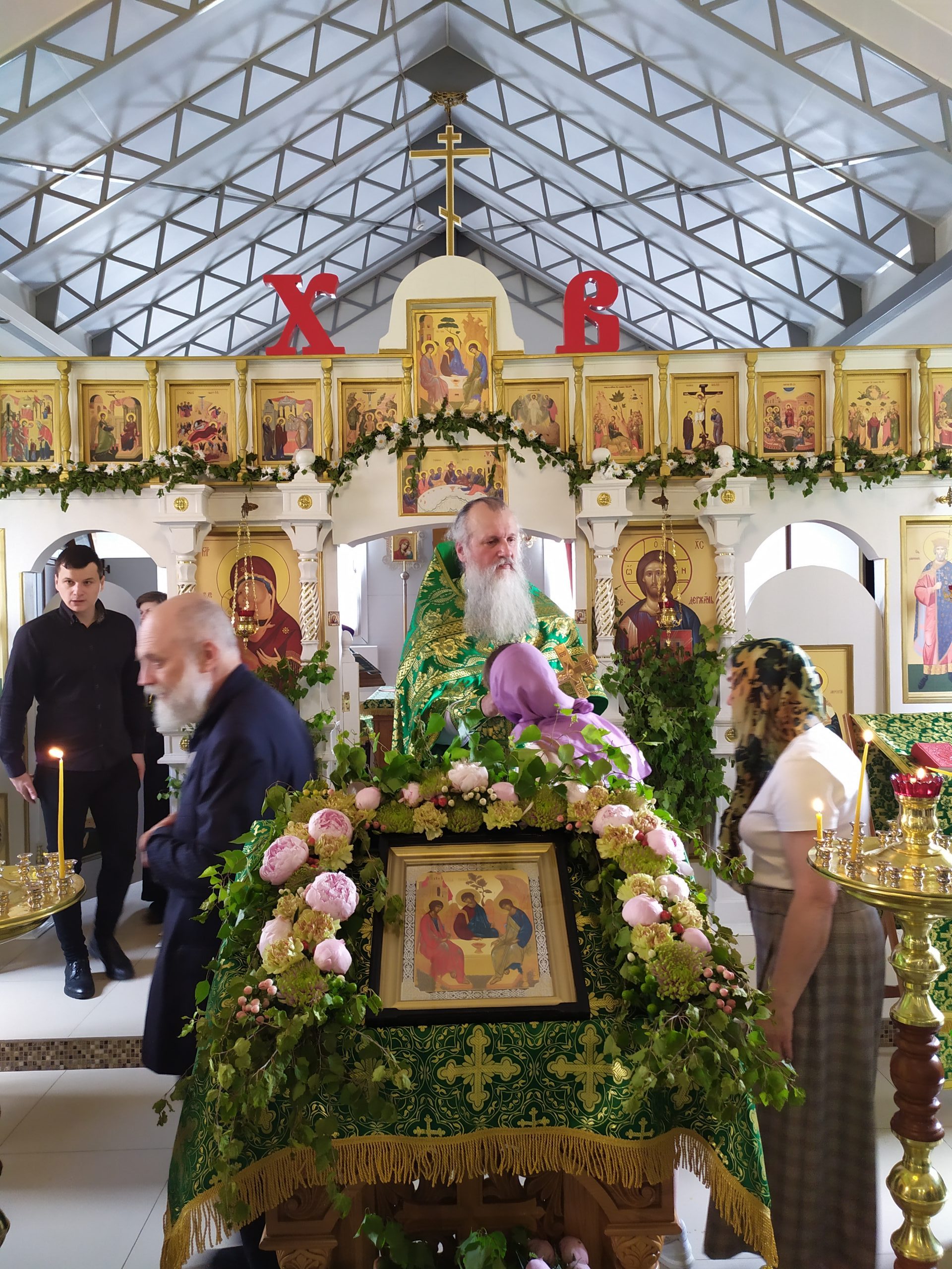 12 июня 2022 года, в Неделю 8-ю по Пасхе, в день Святой Троицы (Пятидесятницу), исполняющий обязанности настоятеля храма святых равноапостольных князя Владимира и княгини Ольги в Черёмушках протоиерей Владимир Быстрый и клирик храма иерей Димитрий Гончаренко совершили литургию и вечерню с чтением коленопреклоненных молитв.