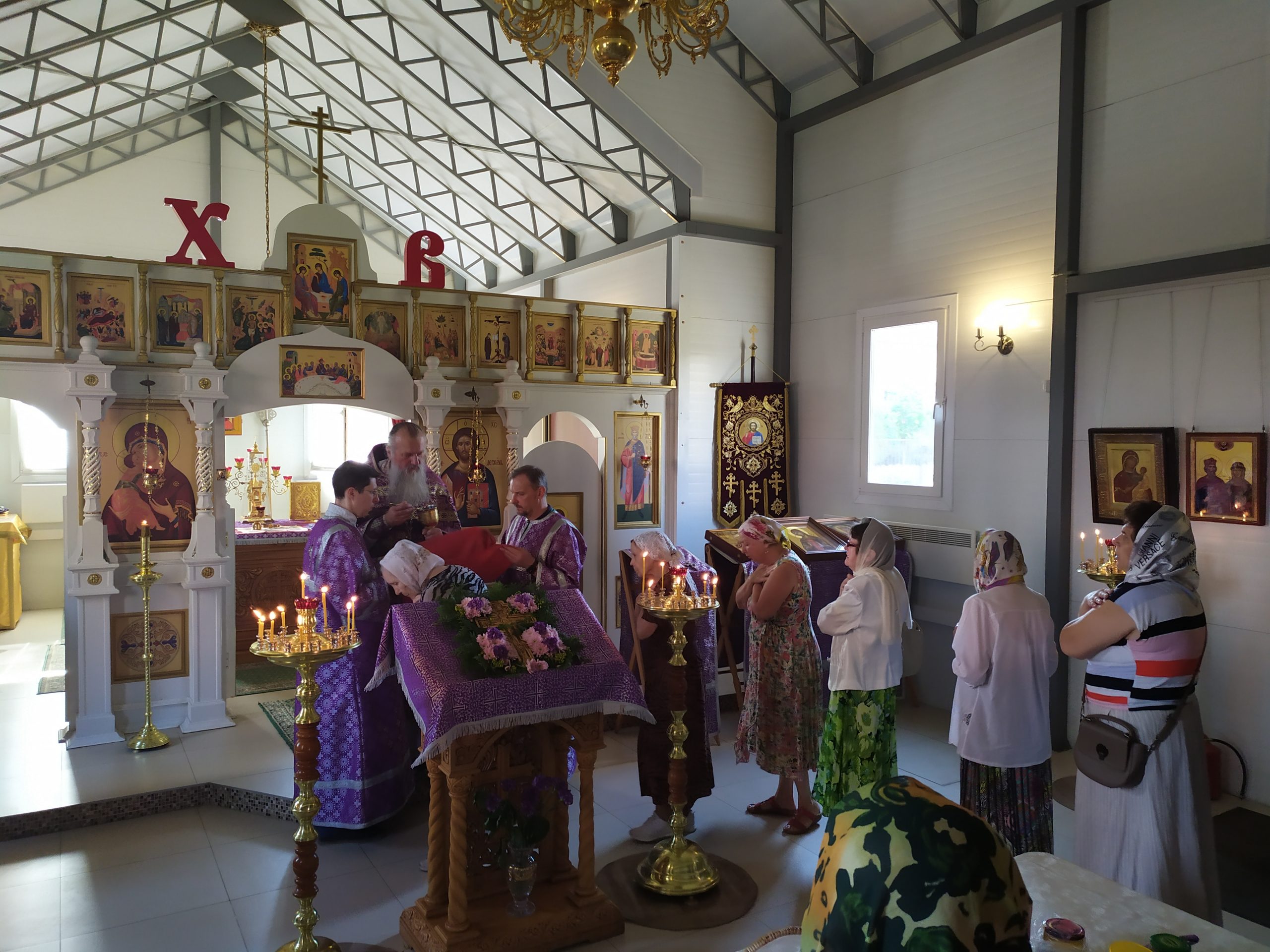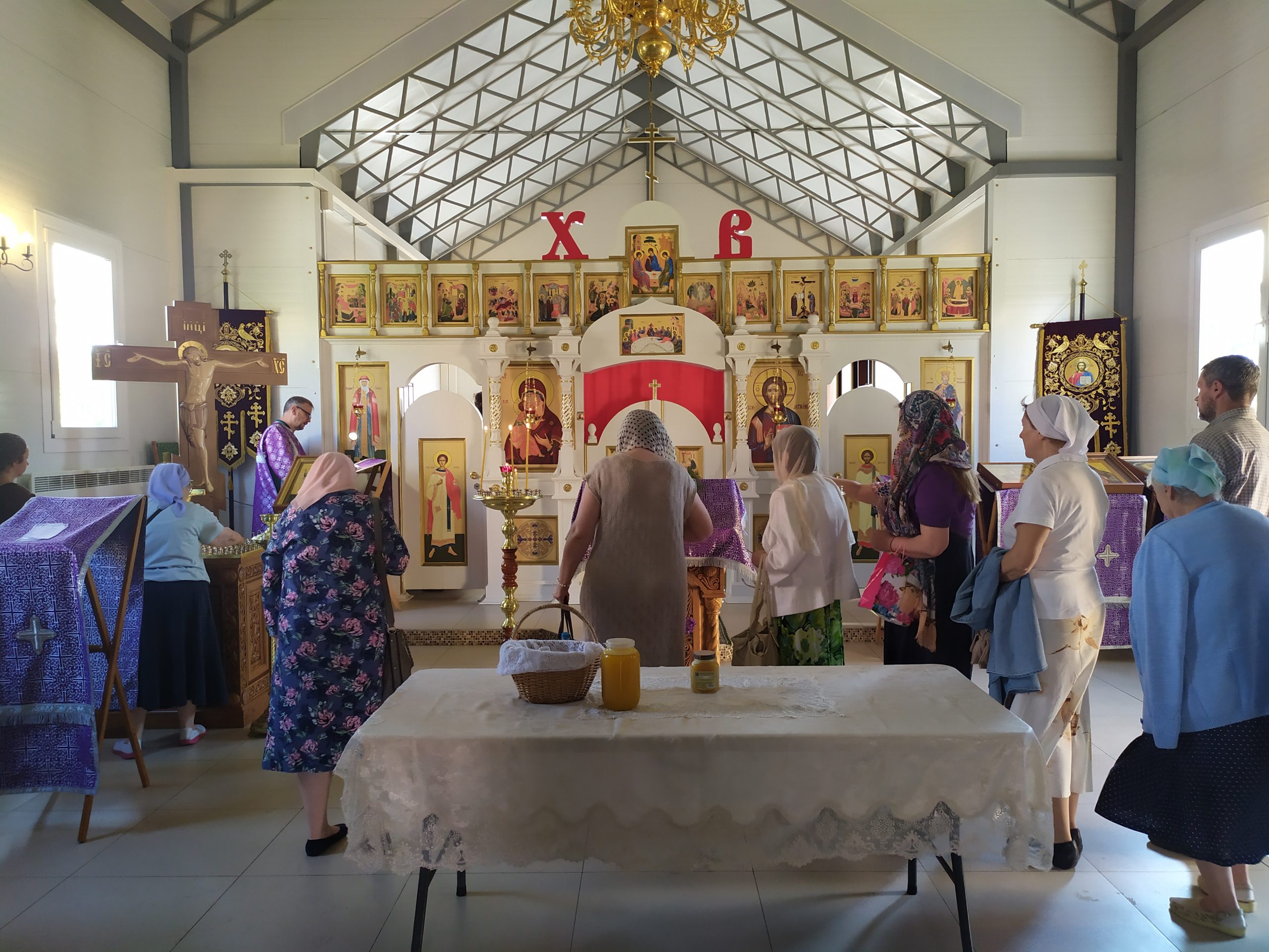 14 августа 2022 года, в Неделю 9-ю по Пятидесятнице, когда празднуется Происхождение (изнесение) честных древ Животворящего Креста Господня, исполняющий обязанности настоятеля храма святых равноапостольных князя Владимира и княгини Ольги в Черёмушках протоиерей Владимир Быстрый и клирик храма иерей Димитрий Гончаренко совершили литургию, молебен с освящением мёда и литию.