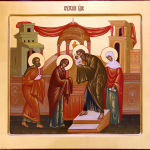 Сретение. В Сретении Господа окружают, с одной стороны, праведность, чающая спасение не в себе, – Симеон, и строгая в посте и молитвах жизнь, оживляемая верою, – Анна; с другой – чистота существенная, всесторонняя и непоколебимая – Дева Богоматерь, и смиренная, молчаливая покорность и преданность воле Божией – Иосиф Обручник. Перенеси все эти духовные настроения в сердце свое и встретишь Господа не приносимого, а Самого грядущего к тебе, восприимешь Его в объятия сердца, и воспоешь песнь, которая пройдет небеса и возвеселит всех ангелов и святых.
