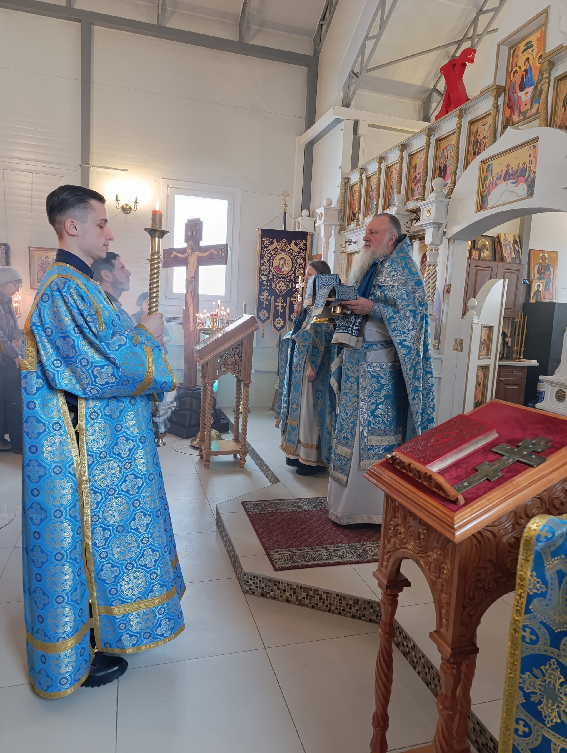 15 февраля 2026 года, в Неделю мясопустную, о Страшнем суде, в праздник Сретения Господа Нашего Иисуса Христа, исполняющий обязанности настоятеля храма святых равноапостольных князя Владимира и княгини Ольги в Черёмушках протоиерей Владимир Быстрый и клирик храма иерей Димитрий Гончаренко совершили литургию.