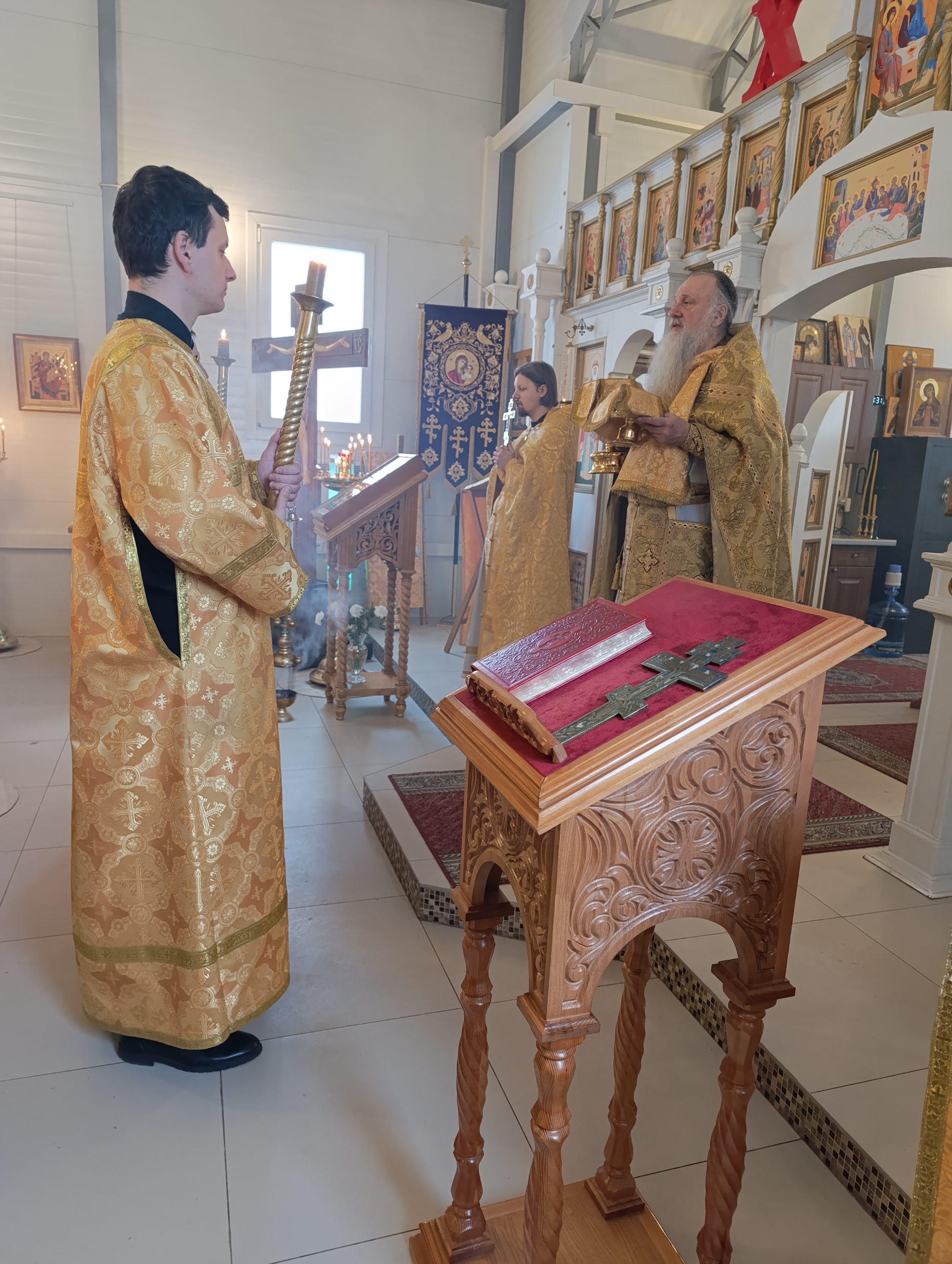 1 февраля 2026 года, в Неделю о мытаре и фарисее, когда празднуется память прп. Макария Великого, Египетского, исполняющий обязанности настоятеля храма святых равноапостольных князя Владимира и княгини Ольги в Черёмушках протоиерей Владимир Быстрый и клирик храма иерей Димитрий Гончаренко совершили литургию.