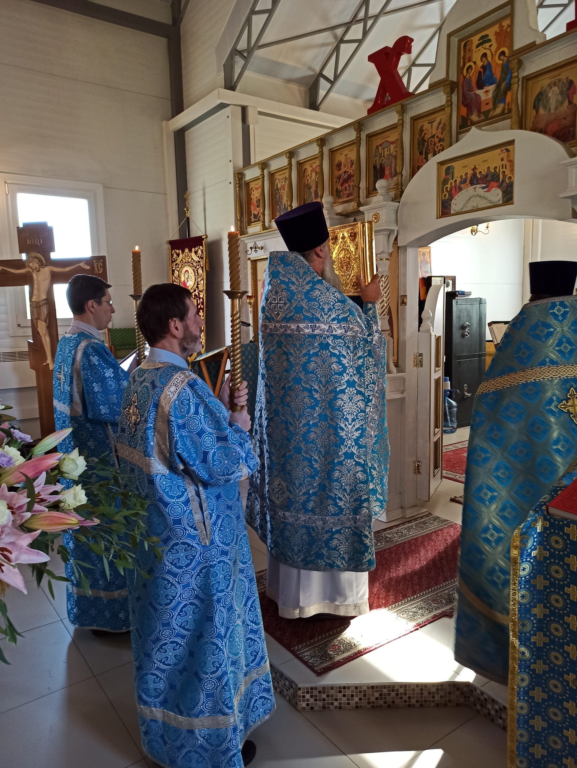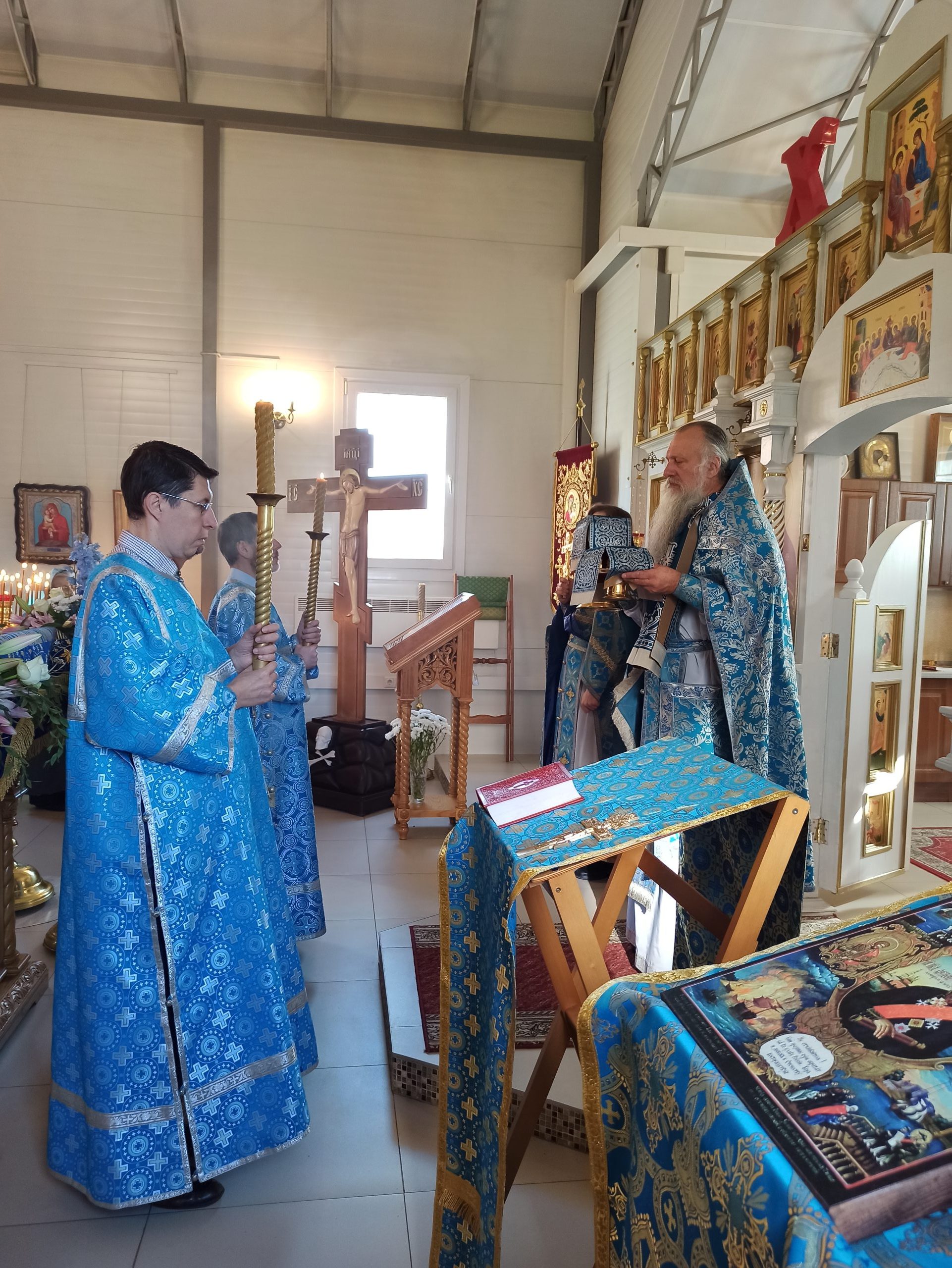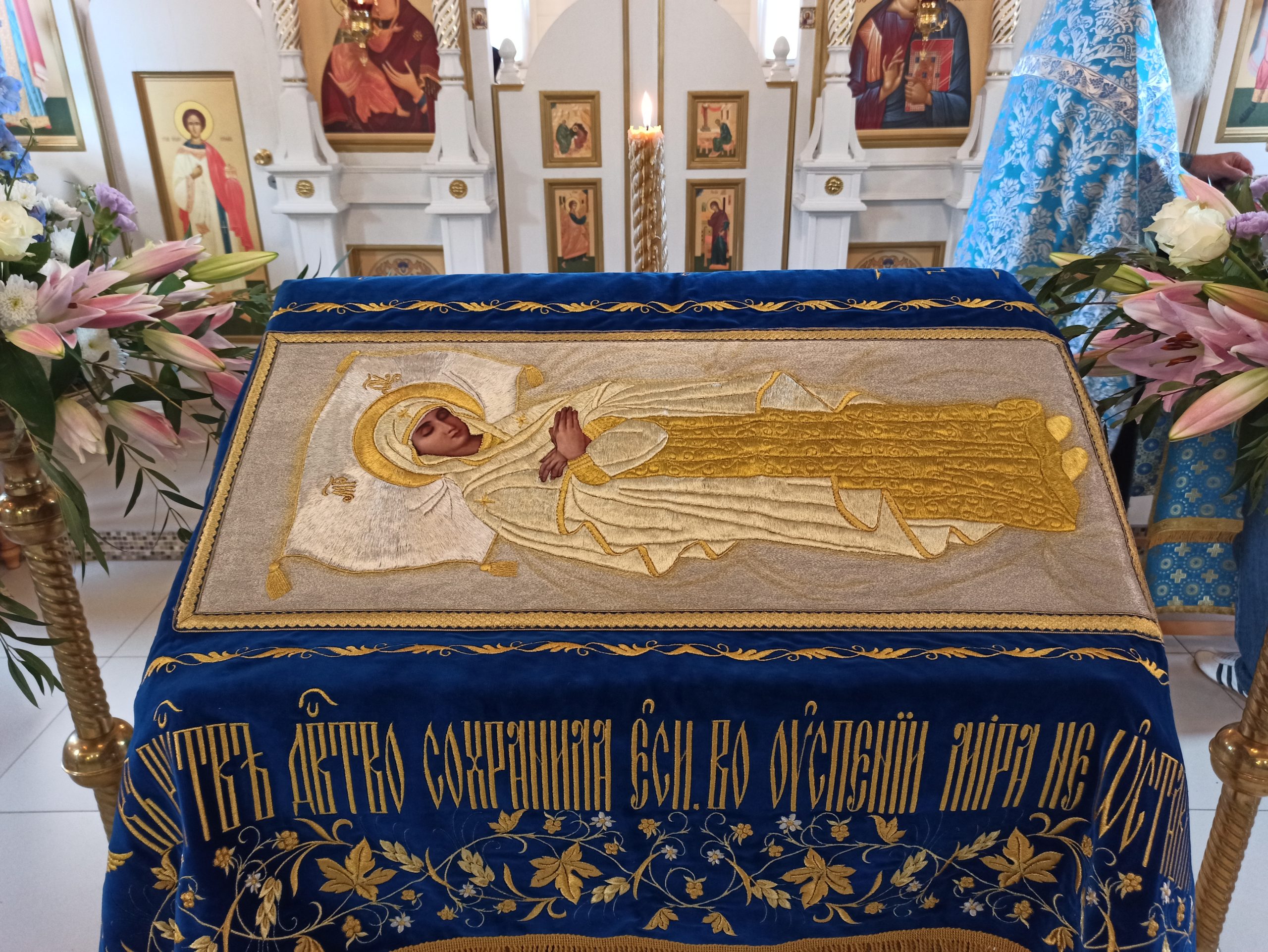 28 августа 2023 года, в Седмицу 13-ю по Пятидесятнице, когда отмечается Успение Пресвятой Владычицы нашей Богородицы и Приснодевы Марии, исполняющий обязанности настоятеля храма святых равноапостольных князя Владимира и княгини Ольги в Черёмушках протоиерей Владимир Быстрый и клирик храма иерей Димитрий Гончаренко совершили литургию и утреню с погребением Плащаницы Пресвятой Богородицы.