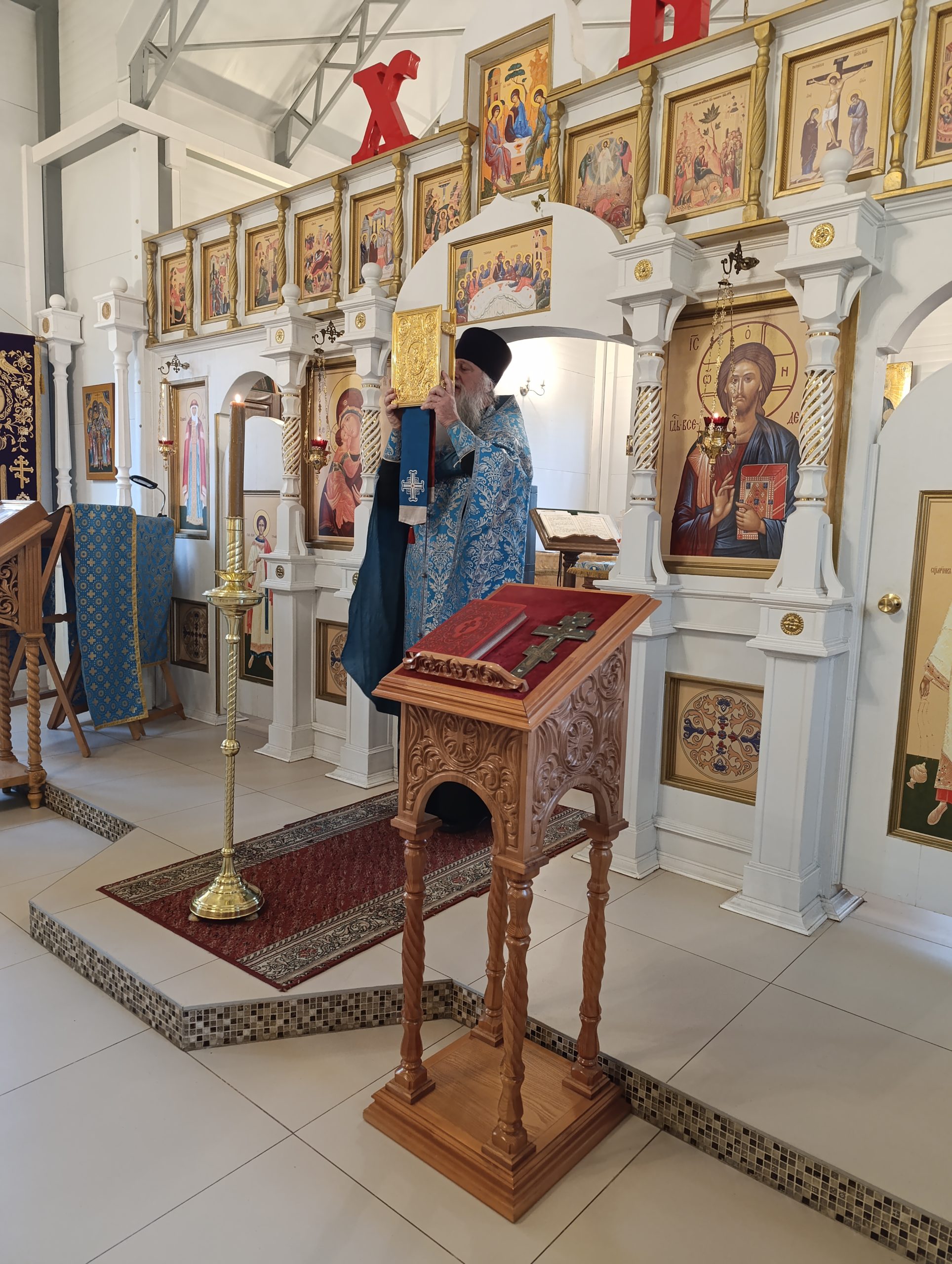 20 сентября 2025 года, в Седмицу 15-ю по Пятидесятнице, накануне праздника Рождества Пресвятой Владычицы нашей Богородицы и Приснодевы Марии, исполняющий обязанности настоятеля храма святых равноапостольных князя Владимира и княгини Ольги в Черёмушках протоиерей Владимир Быстрый и клирик храма иерей Димитрий Гончаренко отслужили всенощную.