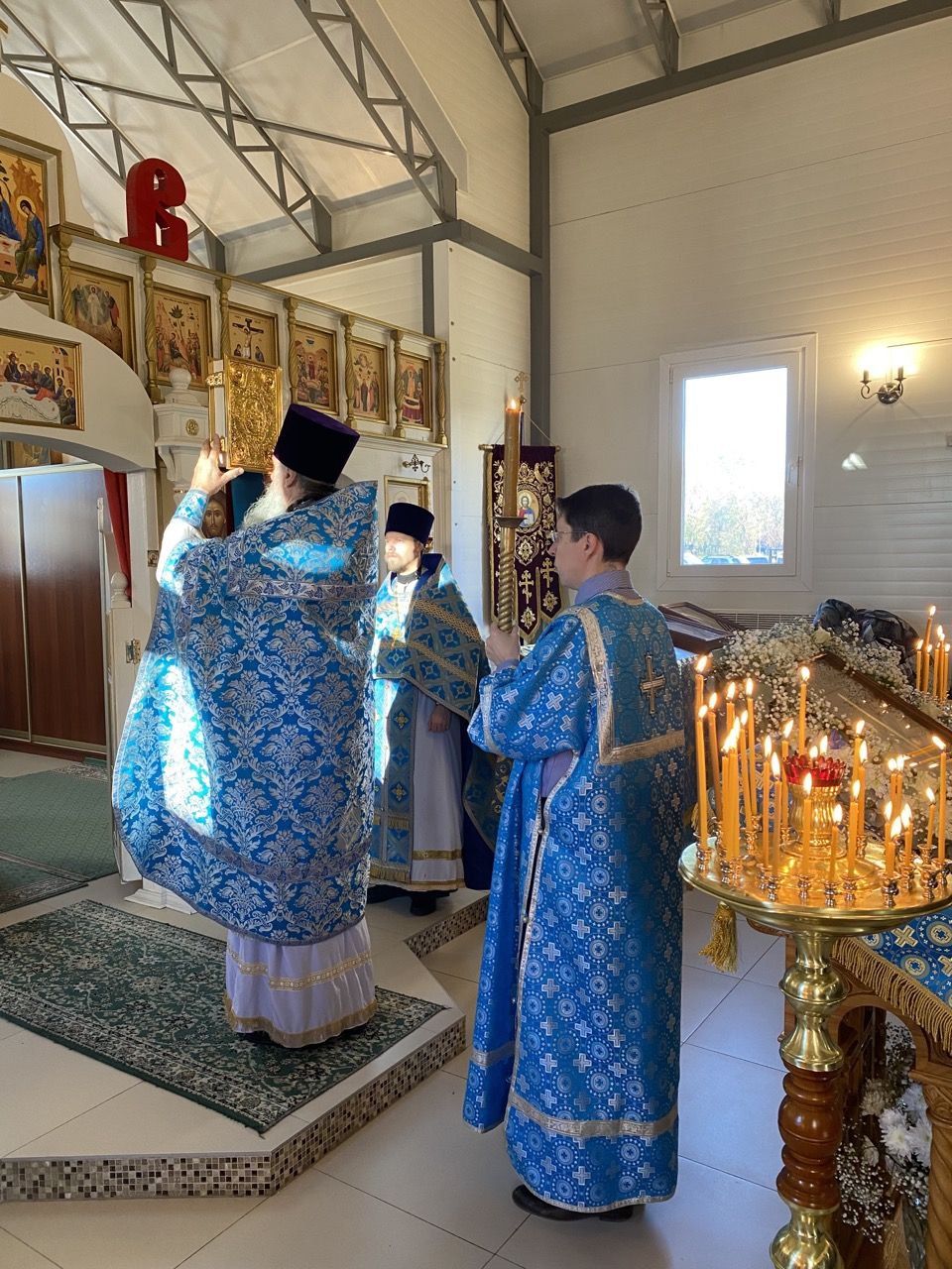 14 октября 2022 года, в Седмицу 18-ю по Пятидесятнице, в праздник Покрова Пресвятой Владычицы нашей Богородицы и Приснодевы Марии, исполняющий обязанности настоятеля храма святых равноапостольных князя Владимира и княгини Ольги в Черёмушках протоиерей Владимир Быстрый и клирик храма иерей Димитрий Гончаренко совершили литургию.