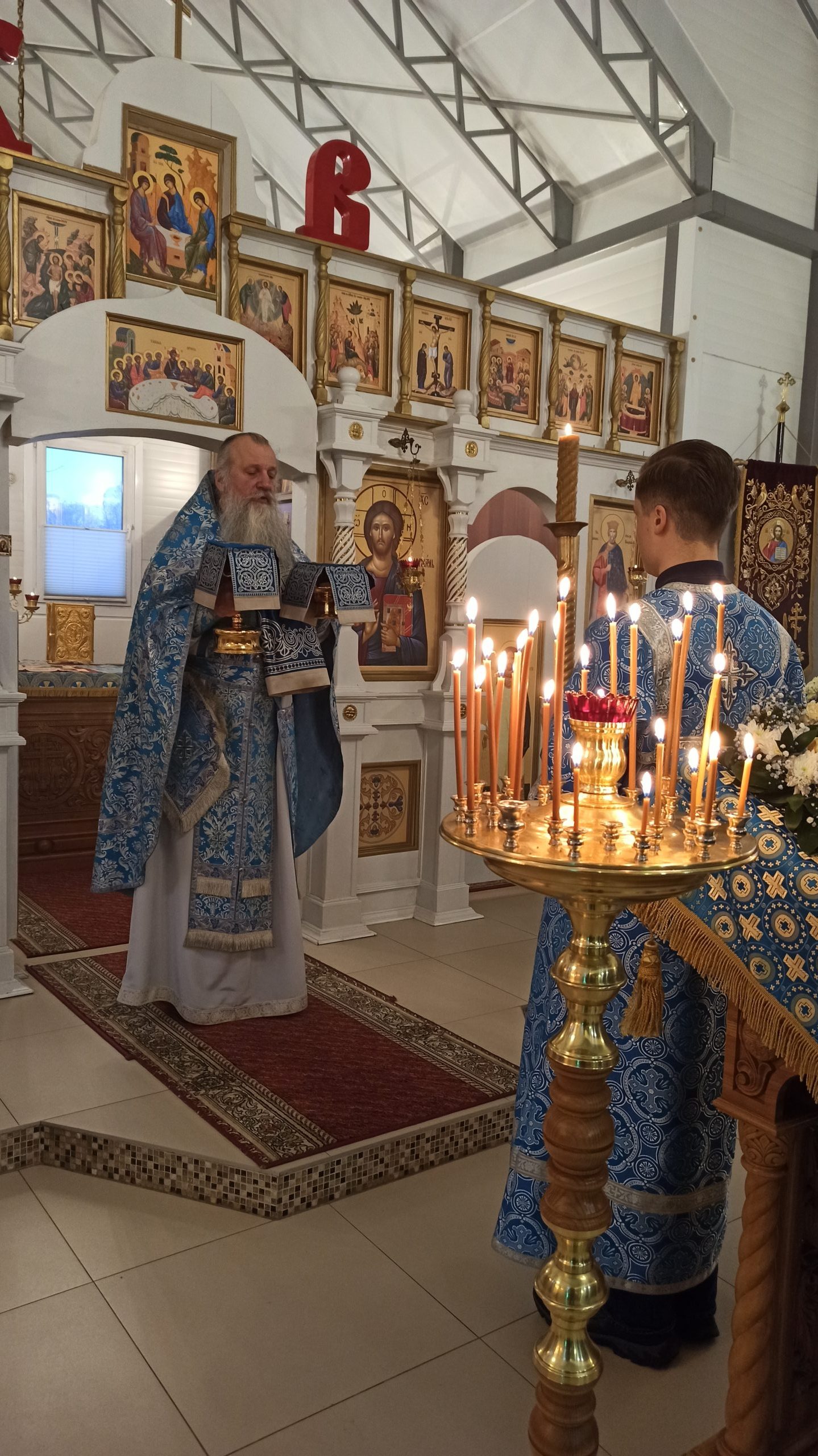4 декабря 2023 года, в Седмицу 27-ю по Пятидесятнице, когда празднуется Введение во храм Пресвятой Владычицы нашей Богородицы и Приснодевы Марии, исполняющий обязанности настоятеля храма святых равноапостольных князя Владимира и княгини Ольги в Черёмушках протоиерей Владимир Быстрый совершил литургию.