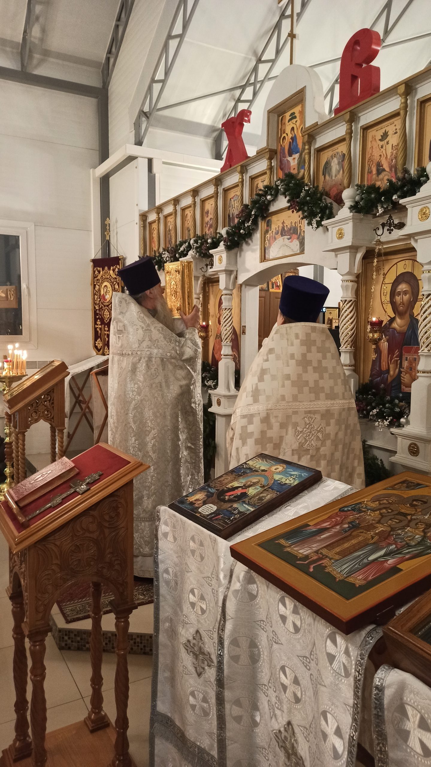 7 января 2025 года, в Седмицу 29-ю по Пятидесятнице, когда Церковь празднует Рождество Господа Бога и Спаса нашего Иисуса Христа, исполняющий обязанности настоятеля храма святых равноапостольных князя Владимира и княгини Ольги в Черёмушках протоиерей Владимир Быстрый и клирик храма иерей Димитрий Гончаренко совершили часы и Божественную Литургию.