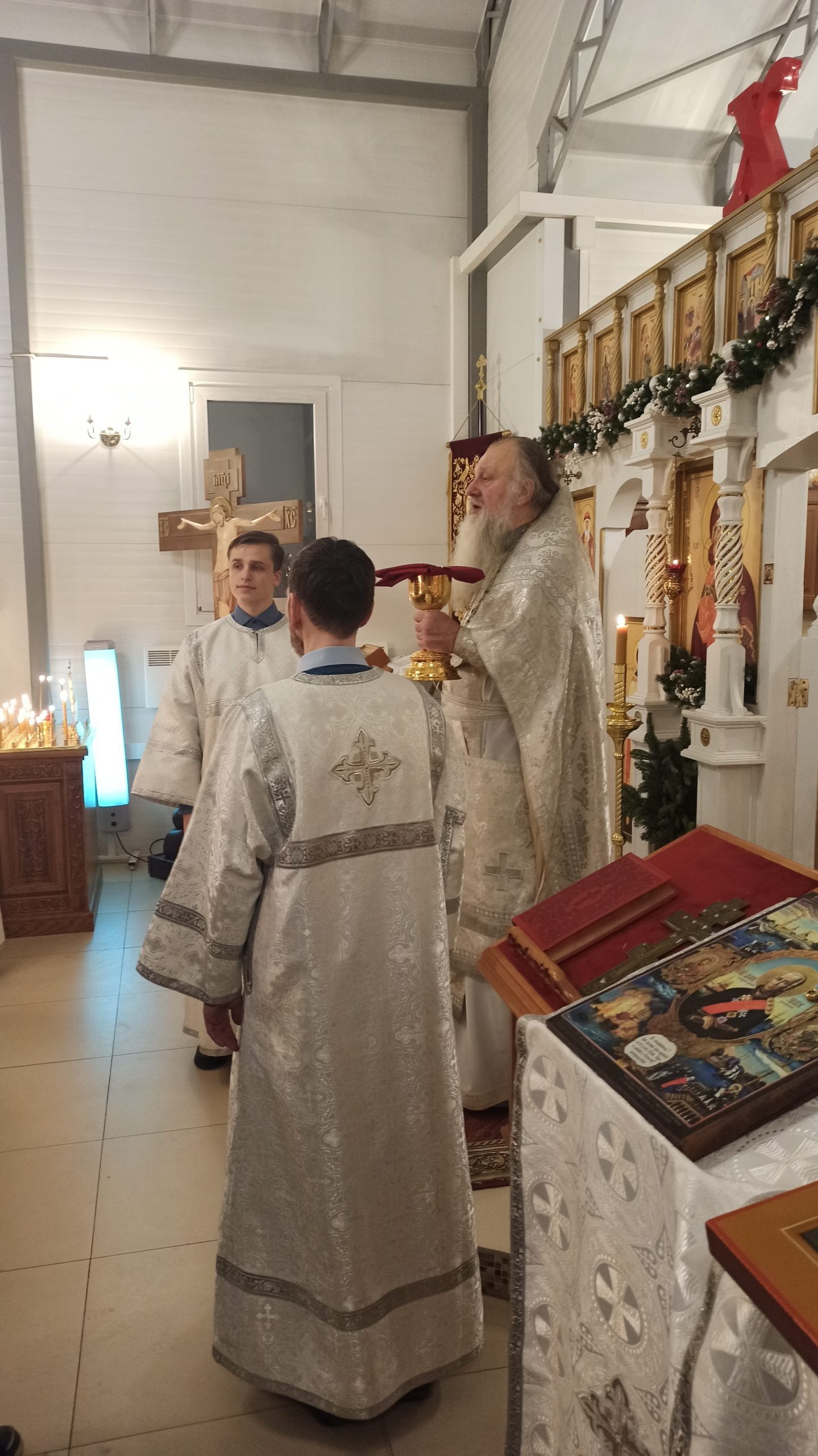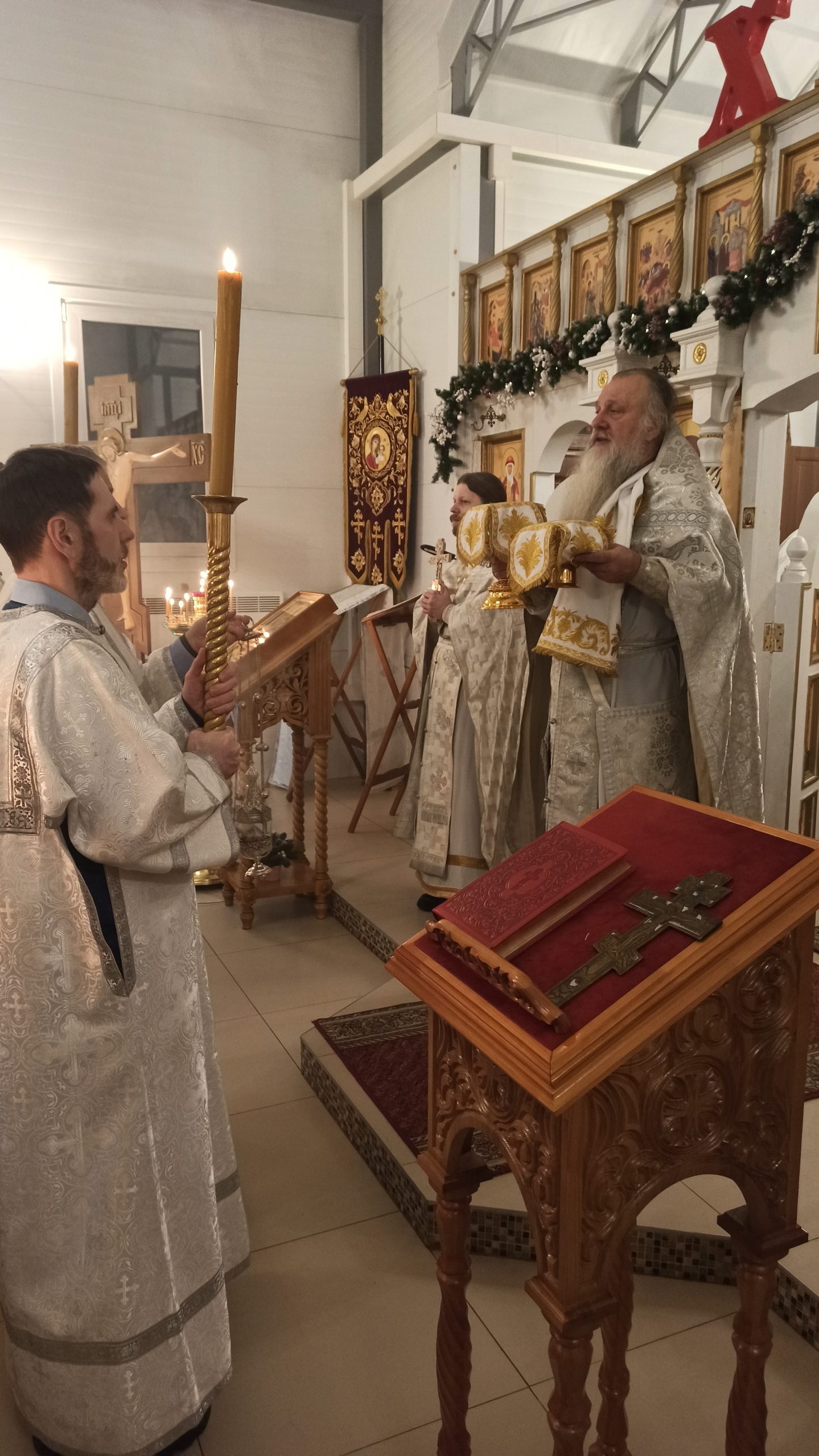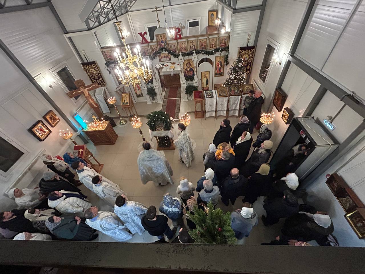 После литургии протоиерей Владимир Быстрый зачитал Рождественское послание Святейшего Патриарха Московского и всея Руси Кирилла и обратился с кратким словом к пастве.