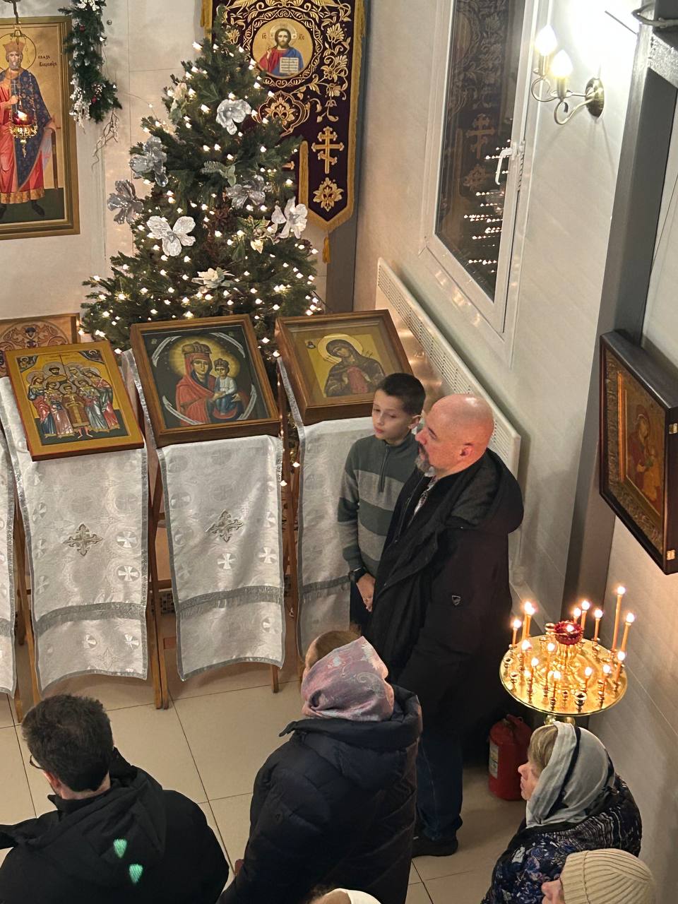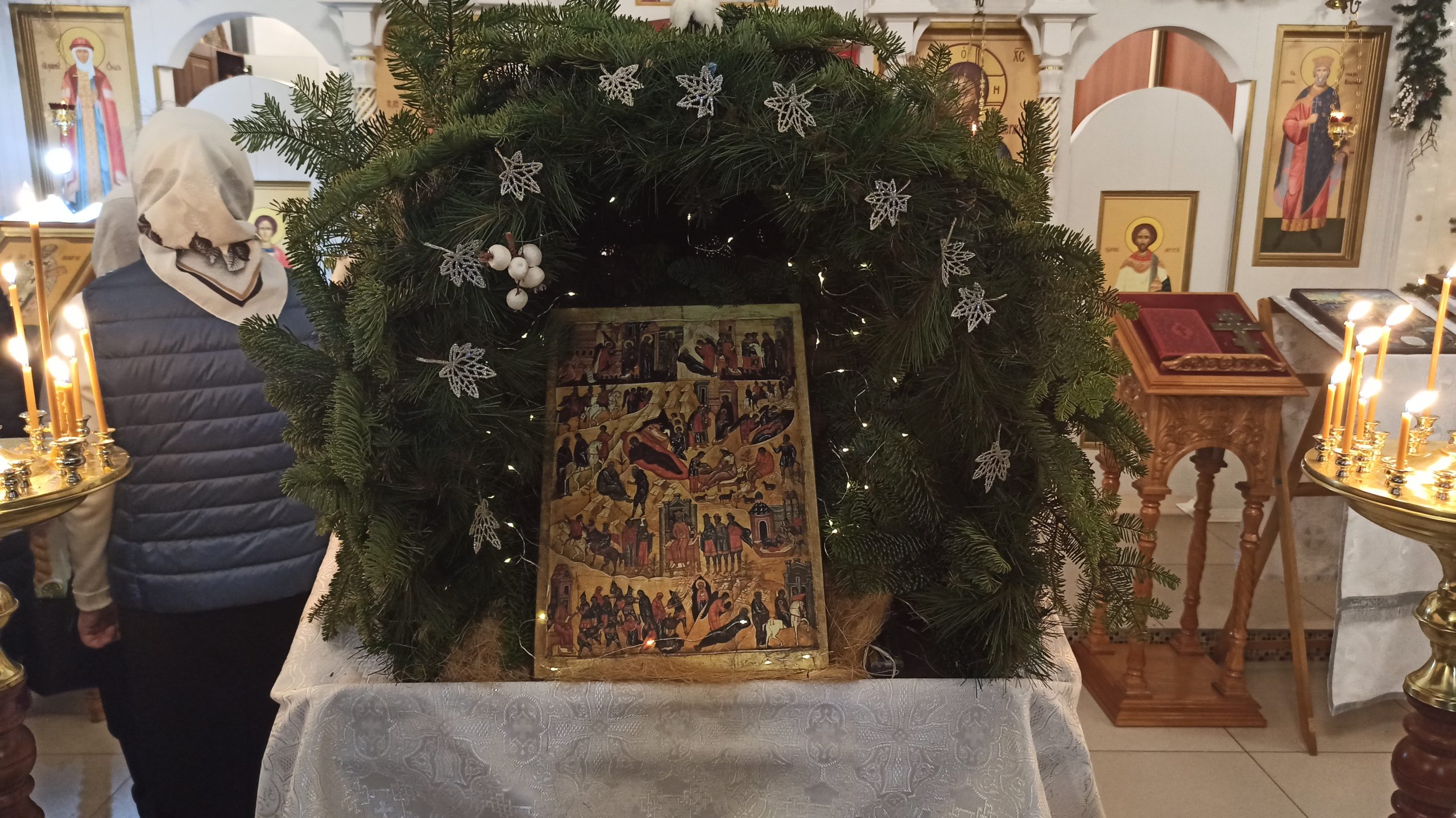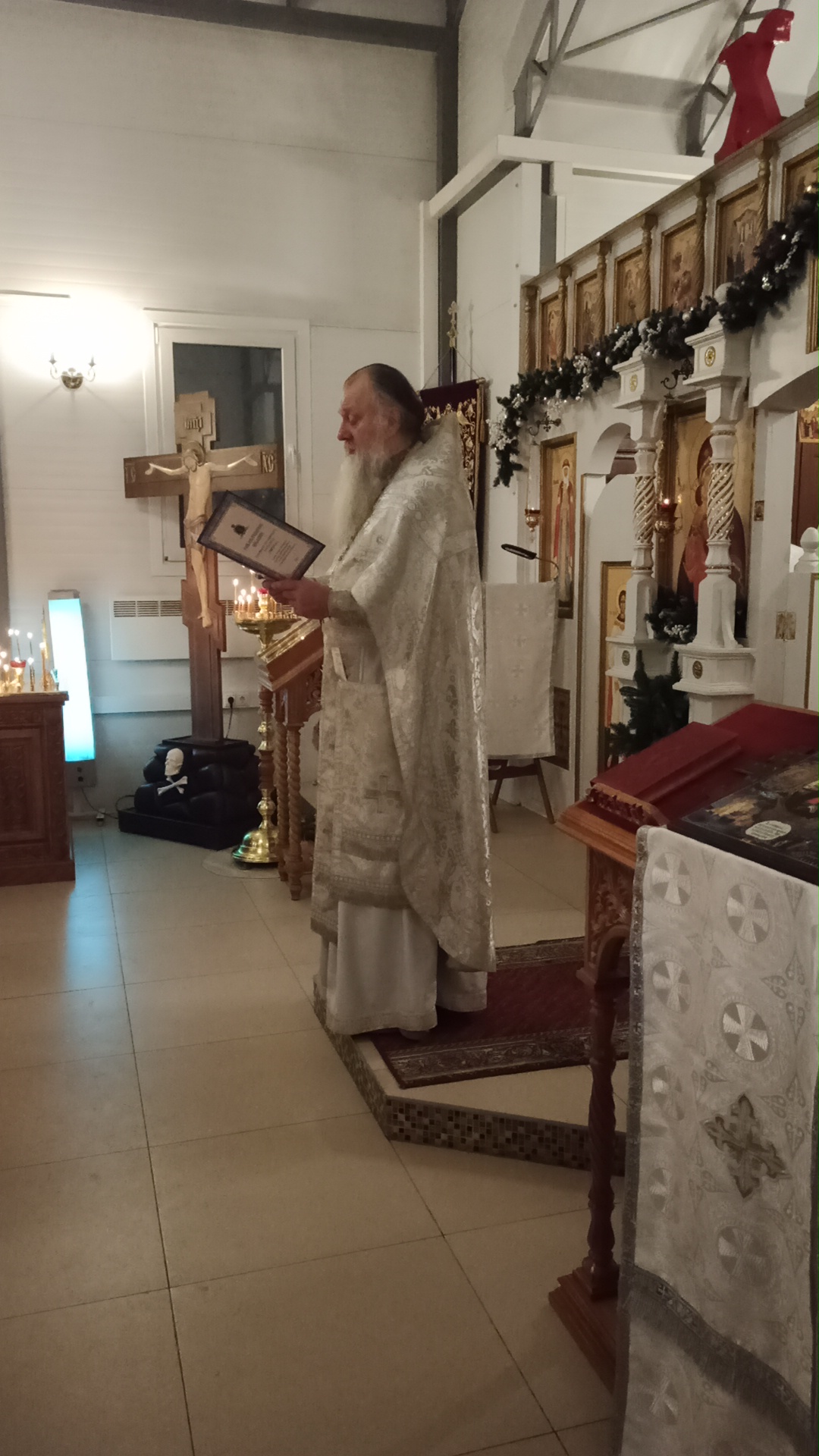 После литургии протоиерей Владимир Быстрый зачитал Рождественское послание Святейшего Патриарха Московского и всея Руси Кирилла и обратился с кратким словом к пастве.