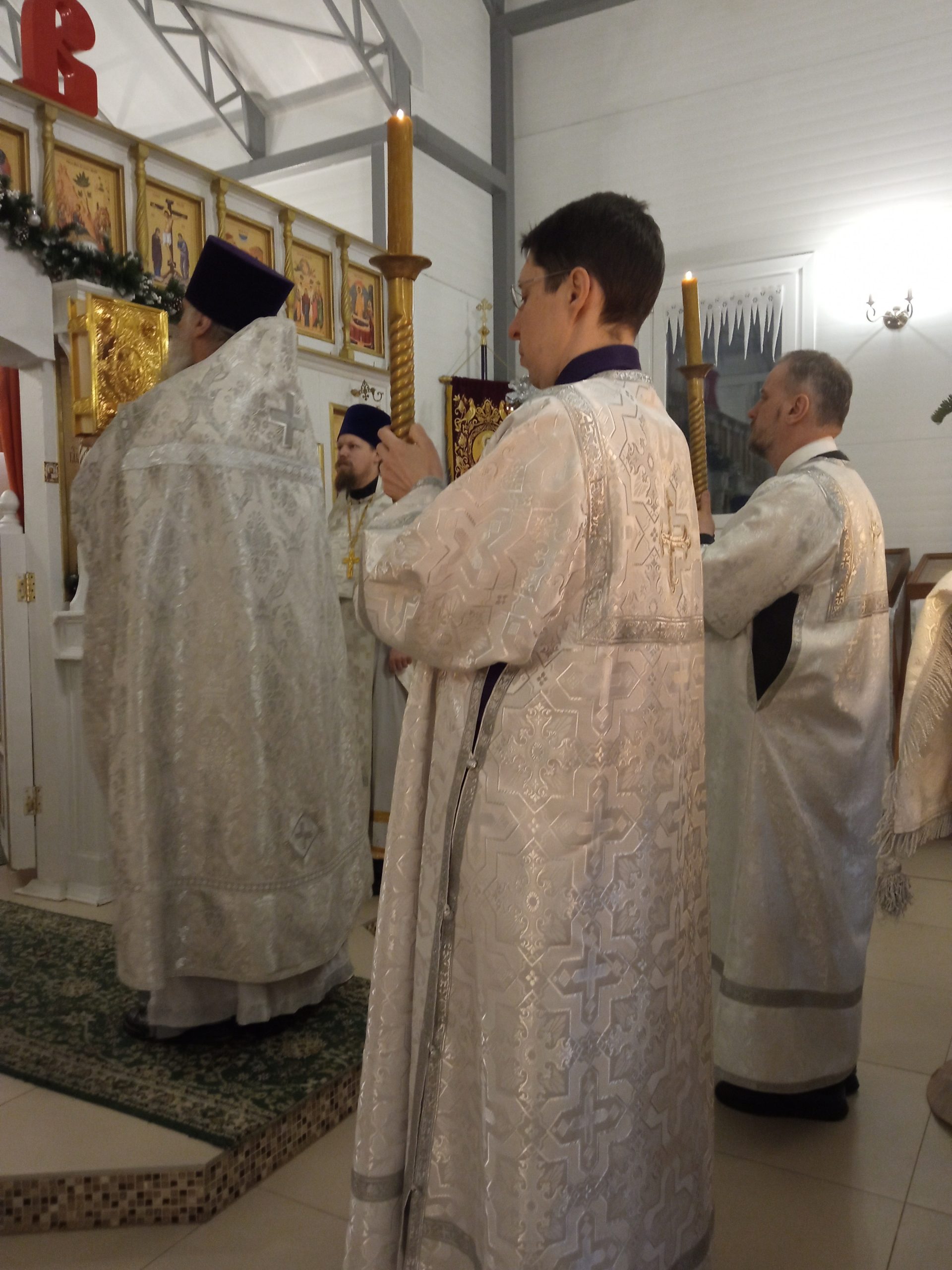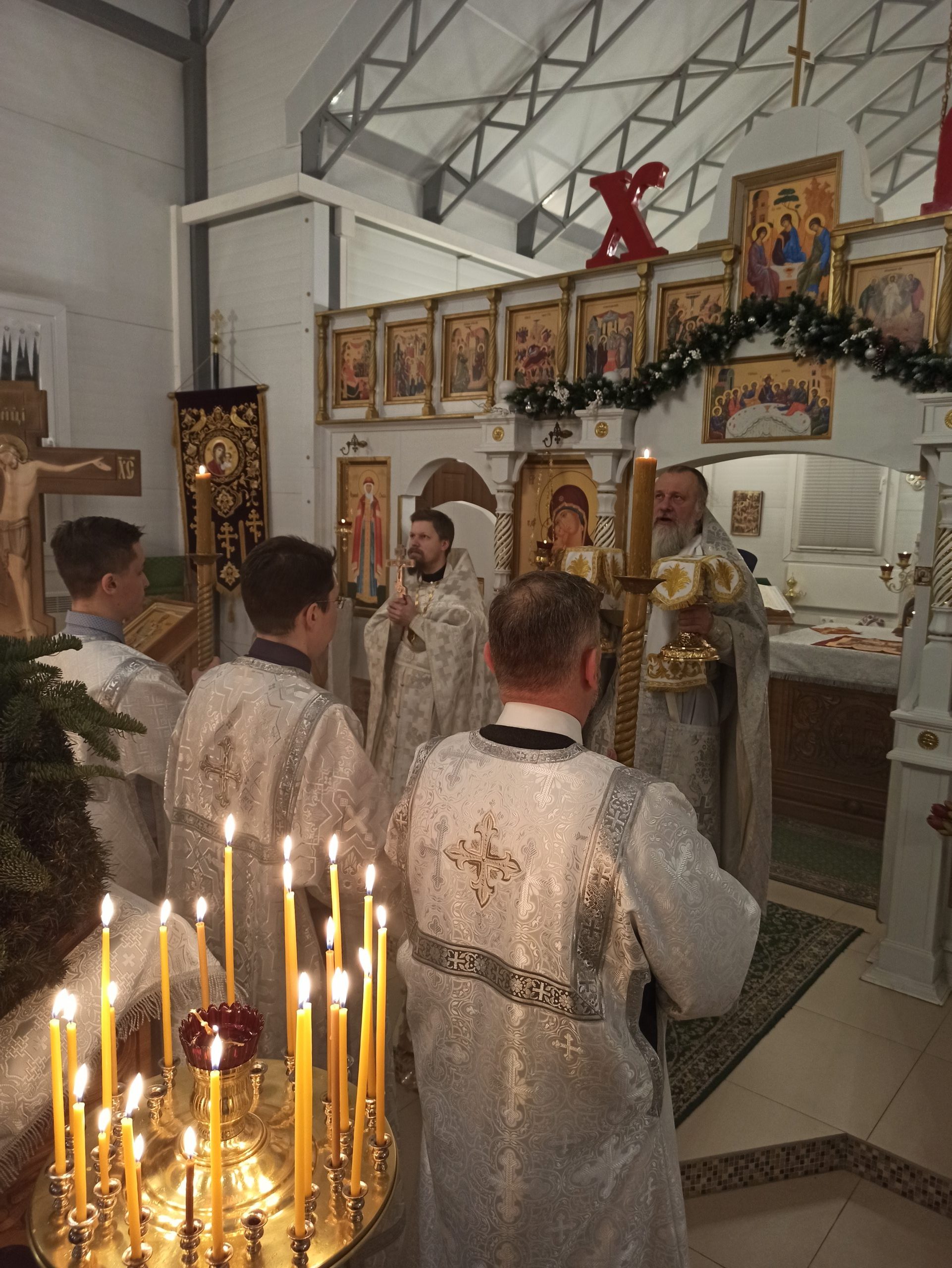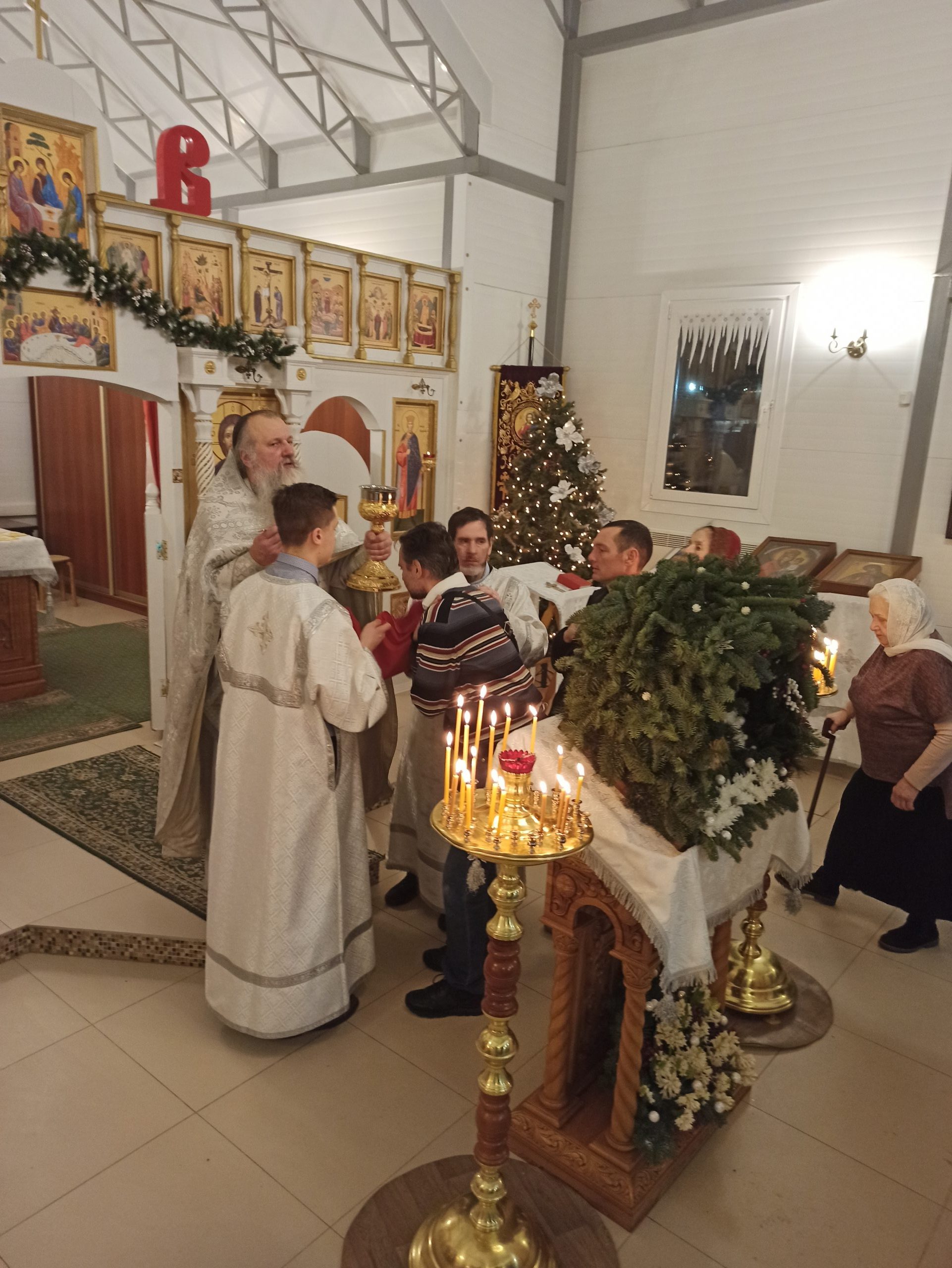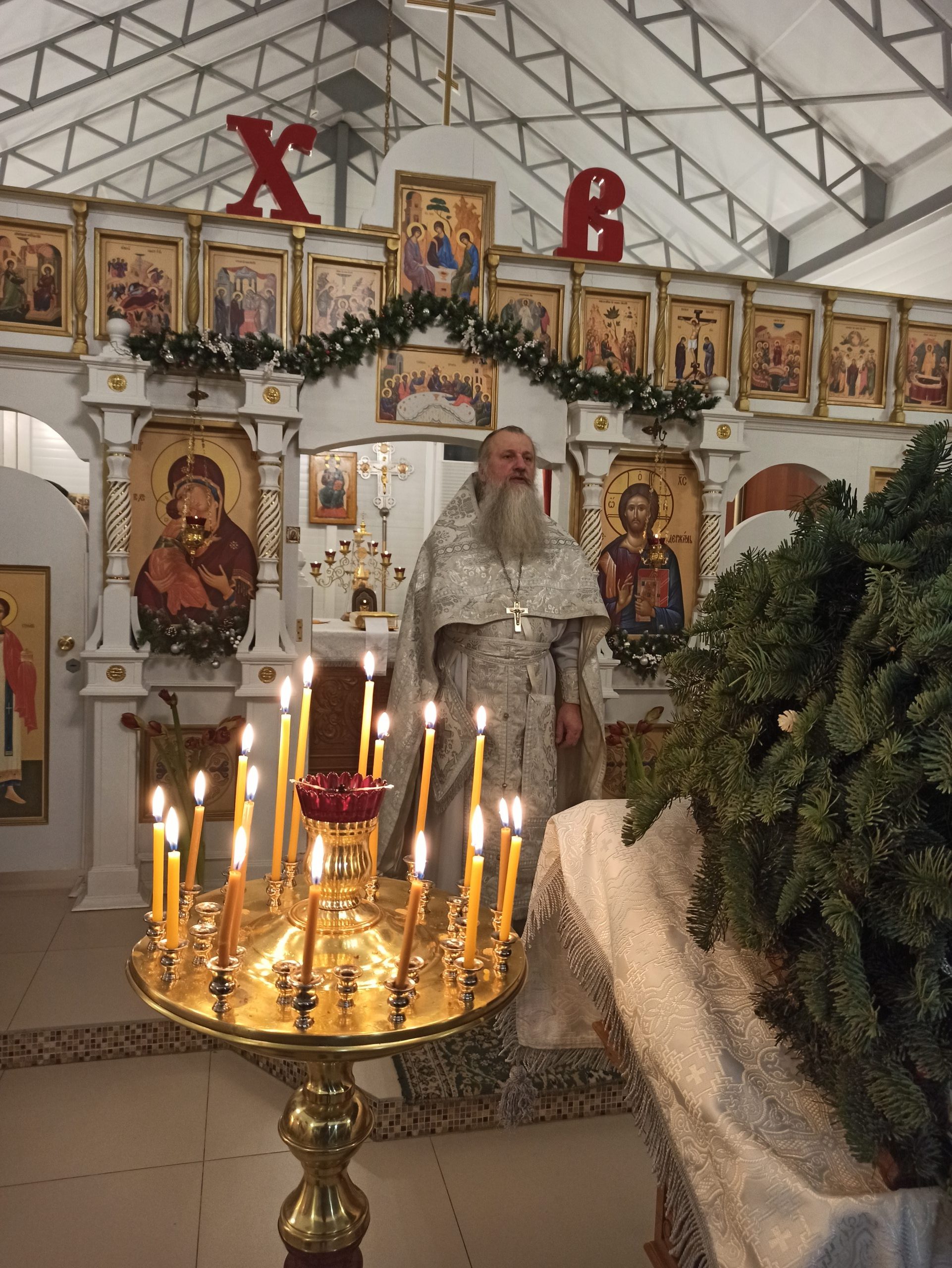После литургии протоиерей Владимир Быстрый зачитал Рождественское послание Святейшего Патриарха Московского и всея Руси Кирилла и обратился с кратким словом к пастве.