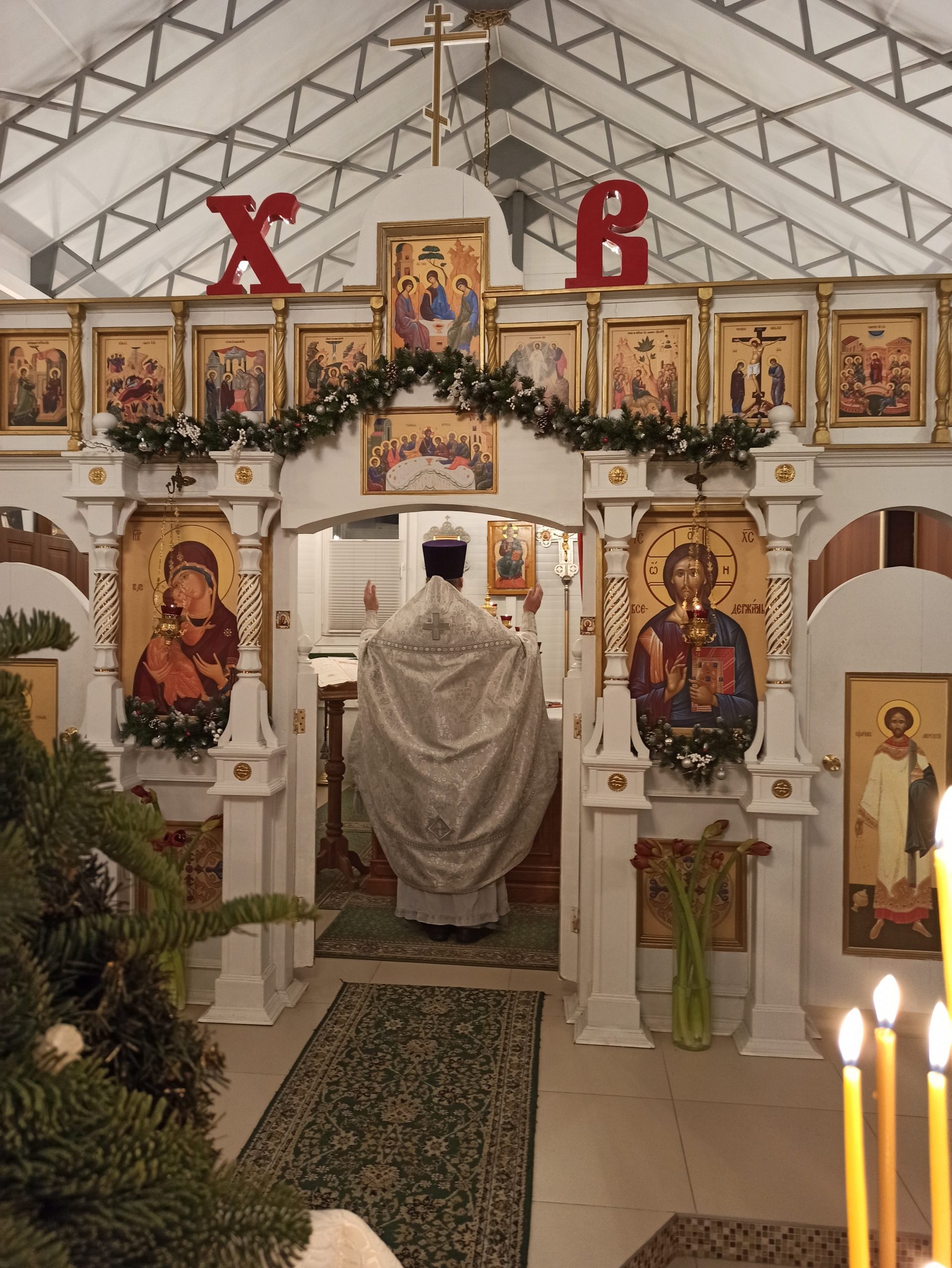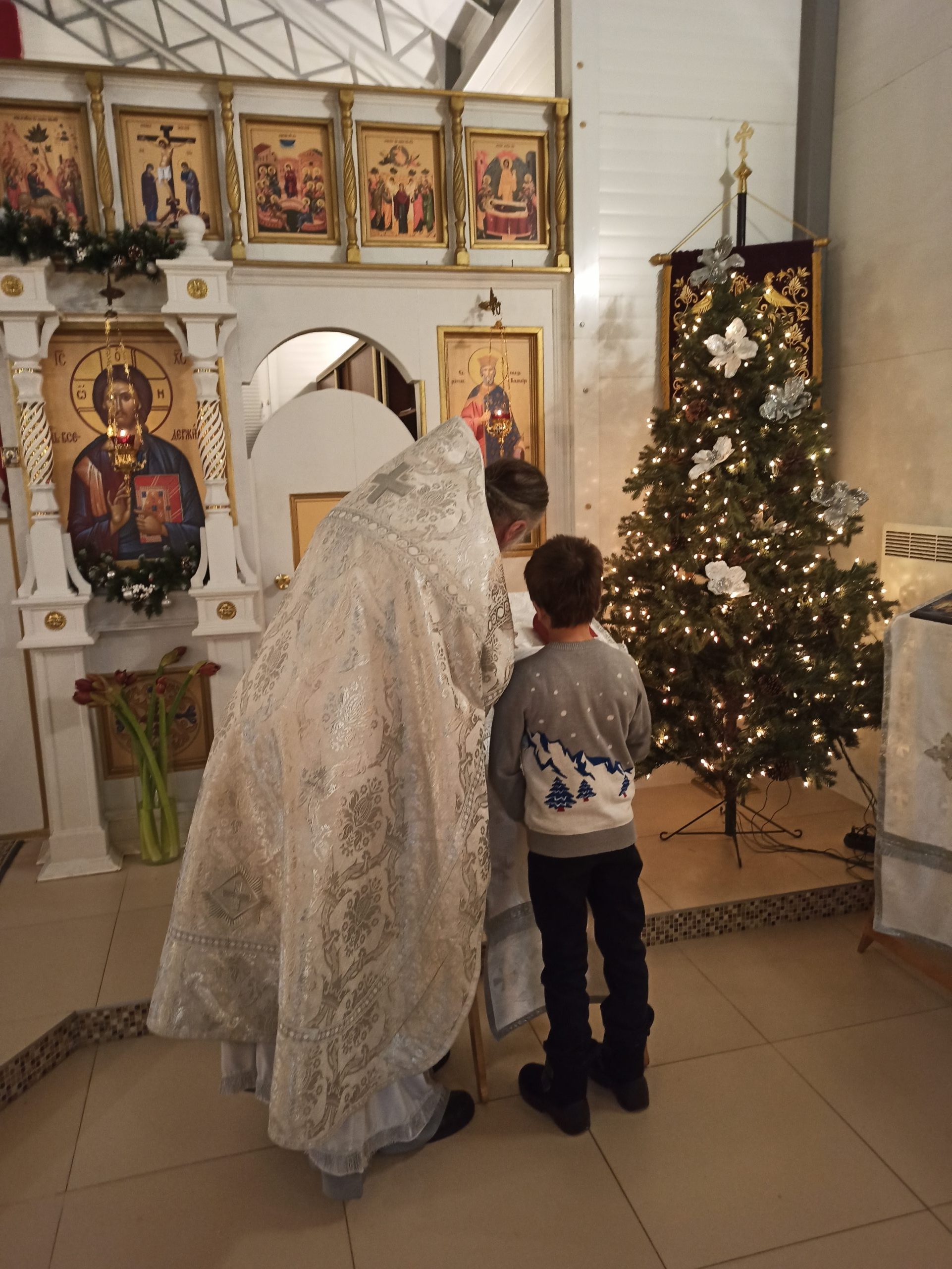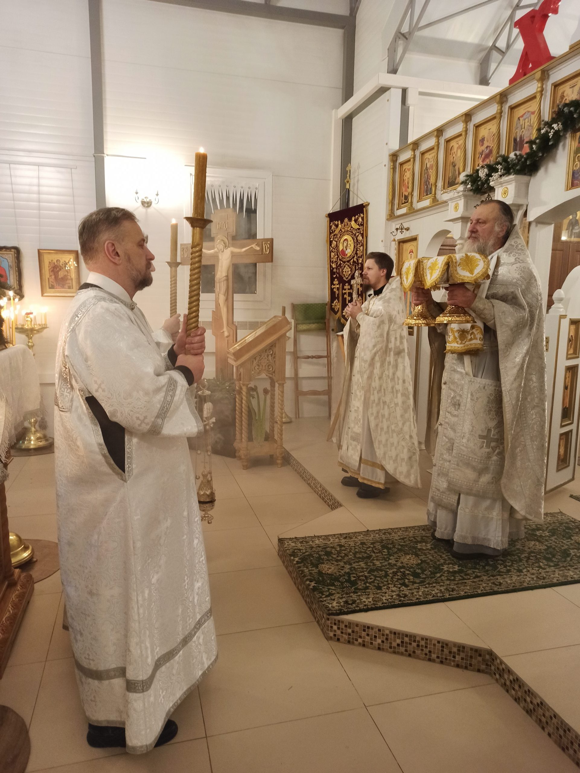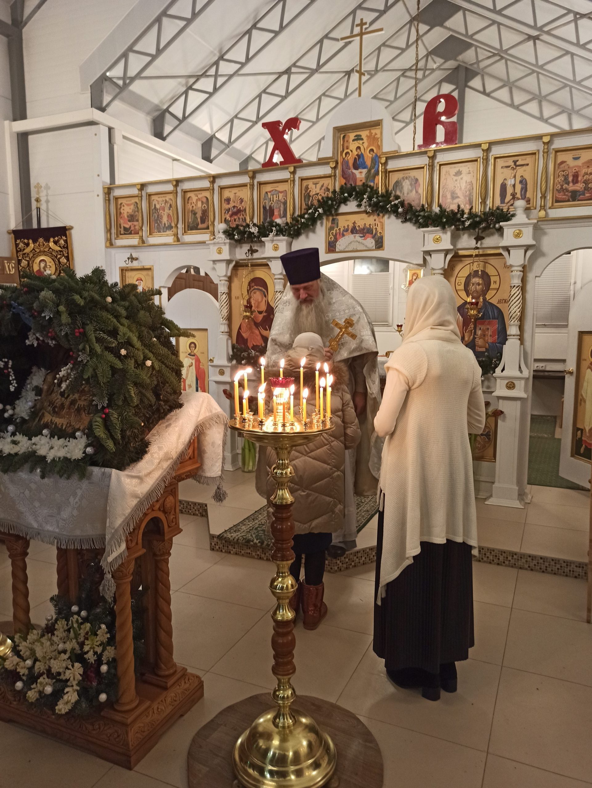 После литургии протоиерей Владимир Быстрый зачитал Рождественское послание Святейшего Патриарха Московского и всея Руси Кирилла и обратился с кратким словом к пастве.