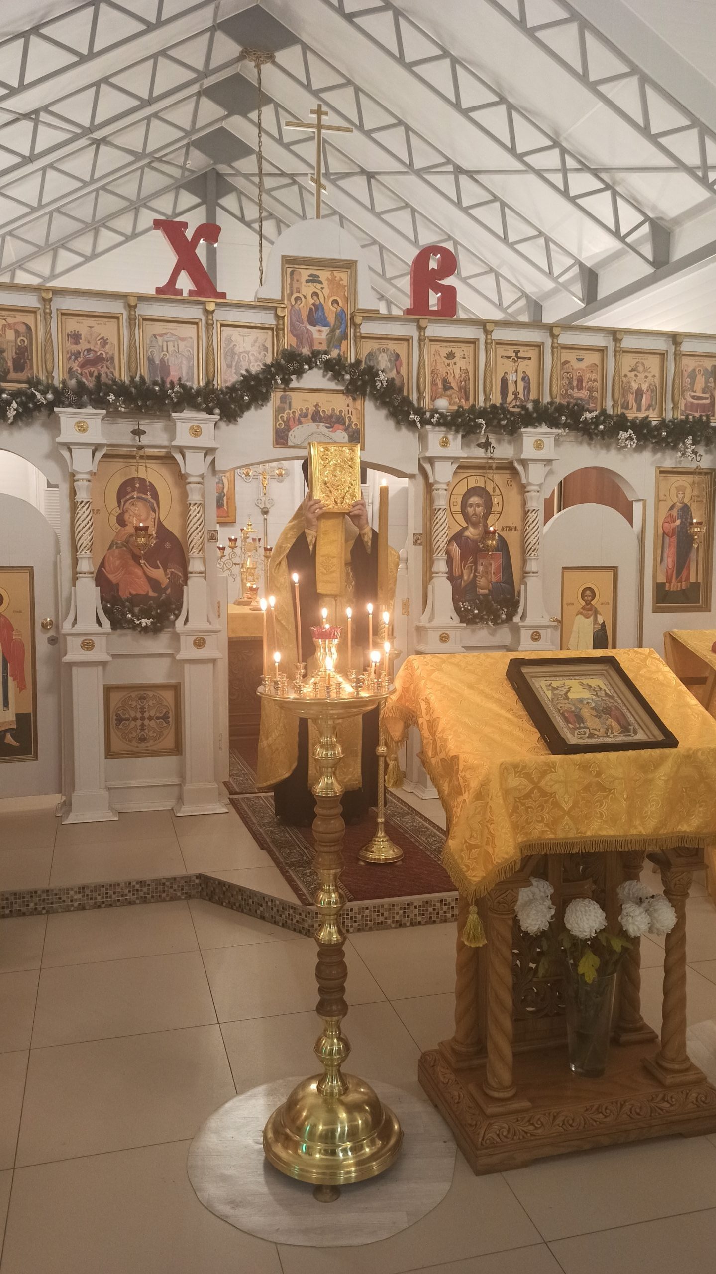 30 декабря 2023 года, в Седмицу 30-ю по Пятидесятнице, исполняющий обязанности настоятеля храма святых равноапостольных князя Владимира и княгини Ольги в Черёмушках протоиерей Владимир Быстрый и клирик храма иерей Димитрий Гончаренко отслужили всенощную.