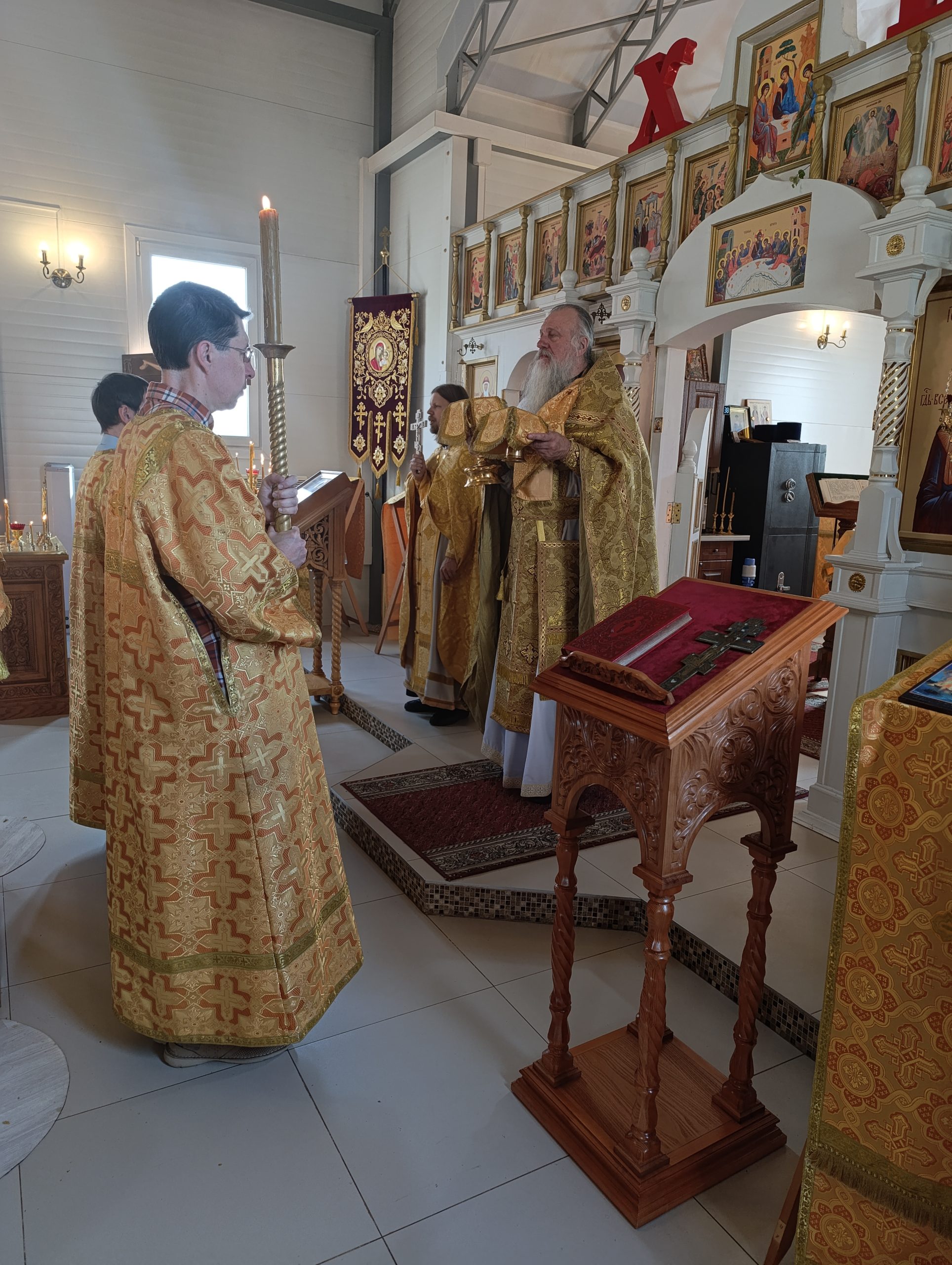 12 июля 2025 года, в Седмицу 5-ю по Пятидесятнице, в день св. первоверховных апостолов Петра и Павла, исполняющий обязанности настоятеля храма святых равноапостольных князя Владимира и княгини Ольги в Черёмушках протоиерей Владимир Быстрый и клирик храма иерей Димитрий Гончаренко совершили литургию.