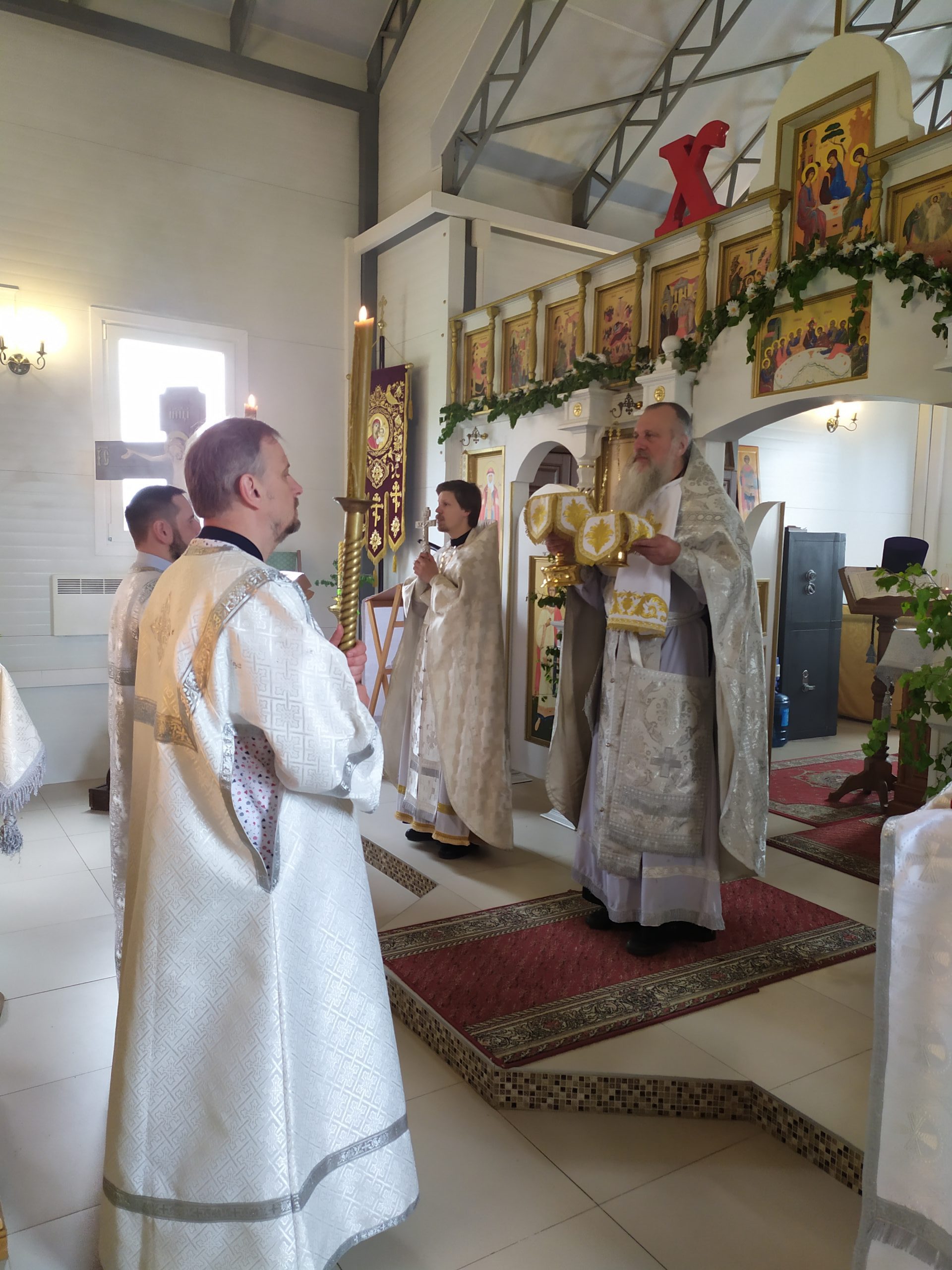 11 июня 2022 года, в Троицкую родительскую субботу и день памяти св. Луки (Войно-Ясенецкого), исполняющий обязанности настоятеля храма святых равноапостольных князя Владимира и княгини Ольги в Черёмушках протоиерей Владимир Быстрый и клирик храма иерей Димитрий Гончаренко отслужили литургию и панихиду.