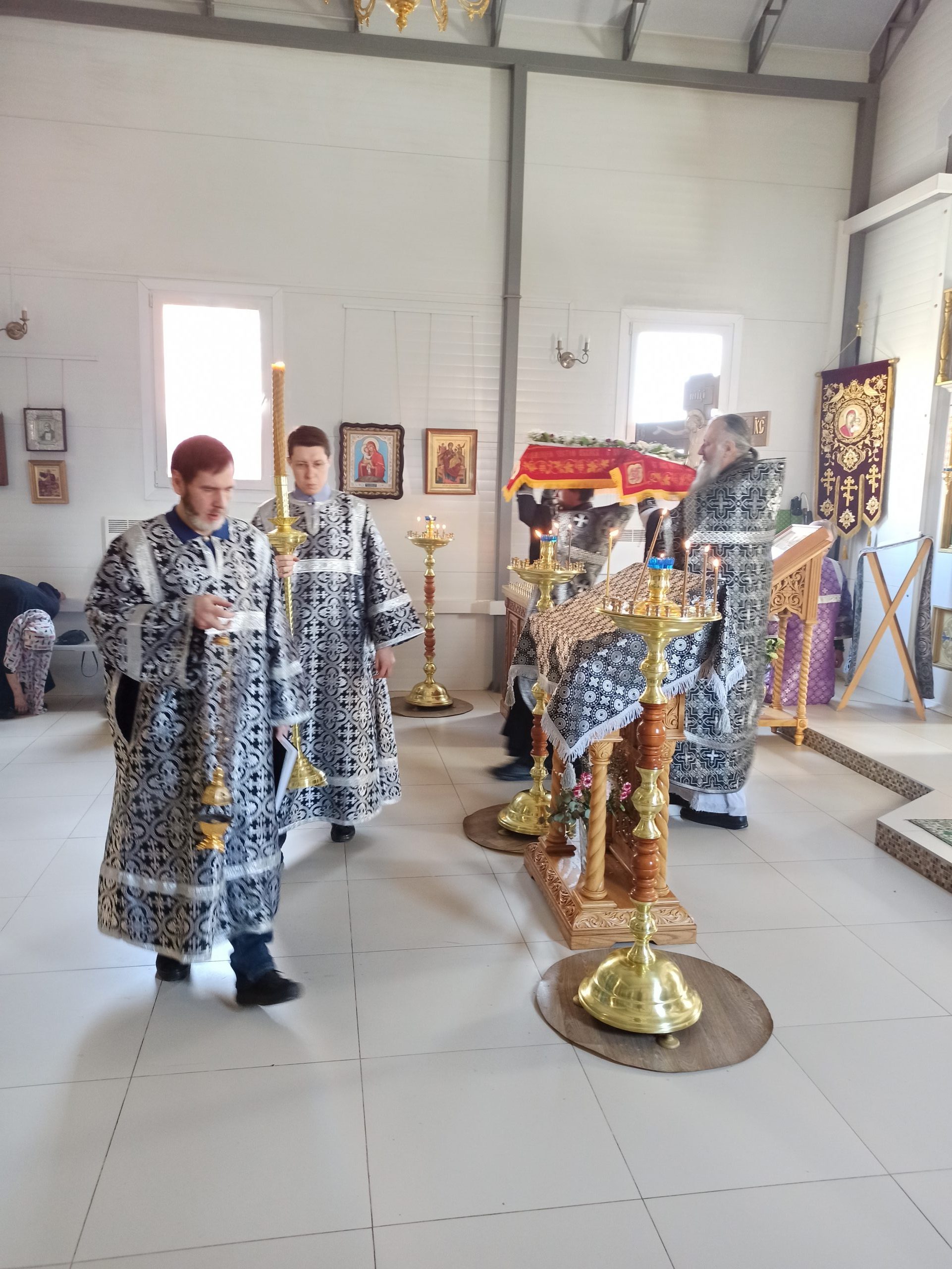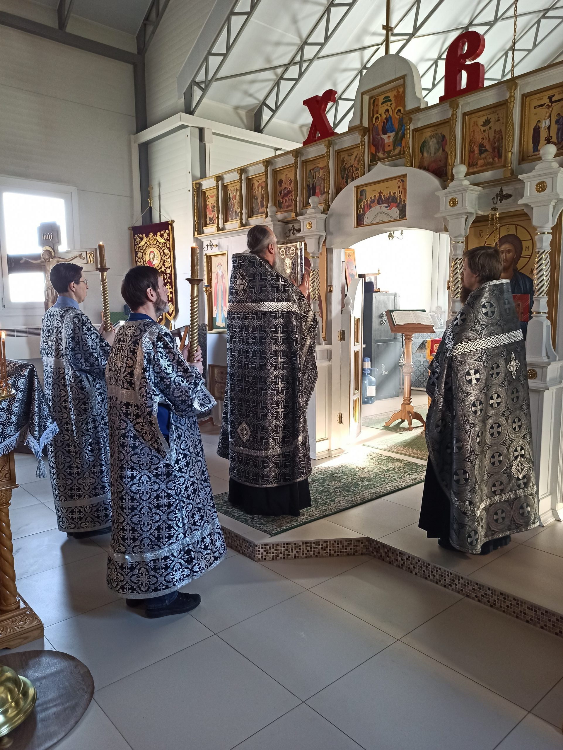 14 апреля 2023 года, в Великую Пятницу, когда происходит воспоминание Святых спасительных Страстей Господа нашего Иисуса Христа, исполняющий обязанности настоятеля храма святых равноапостольных князя Владимира и княгини Ольги в Черёмушках протоиерей Владимир Быстрый и клирик храма иерей Димитрий Гончаренко совершили Царские часы и Вечерню с выносом Плащаницы.
