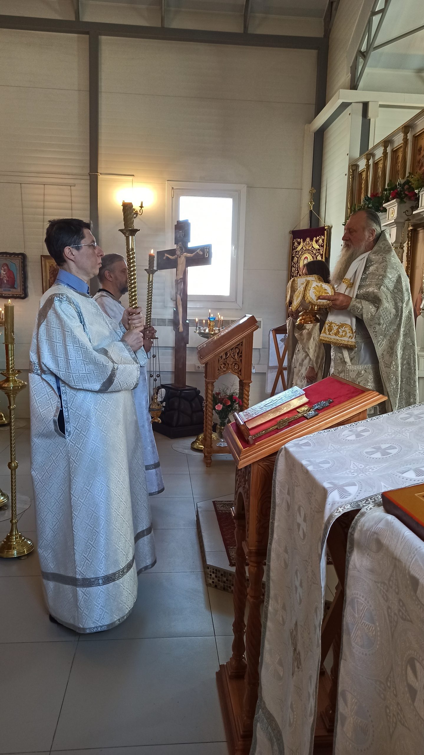 4 мая 2024 года, в Страстную седмицу, в Великую Субботу, исполняющий обязанности настоятеля храма святых равноапостольных князя Владимира и княгини Ольги в Черёмушках протоиерей Владимир Быстрый и клирик храма иерей Димитрий Гончаренко совершили часы, изобразительны и литургию.