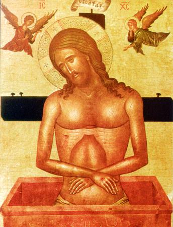 (Рим.6:3–11; Мф.28:1–20) Господь спит во гробе телом, душою же сошел Он в ад и находящимся там духам проповедал спасение. Все святые ветхозаветные были не в раю, хоть и пребывали в утешительной вере, что введены будут туда, как только придет на землю Обетованный, верою в Которого жили они. Его пришествие и там предвозвестил Предтеча.