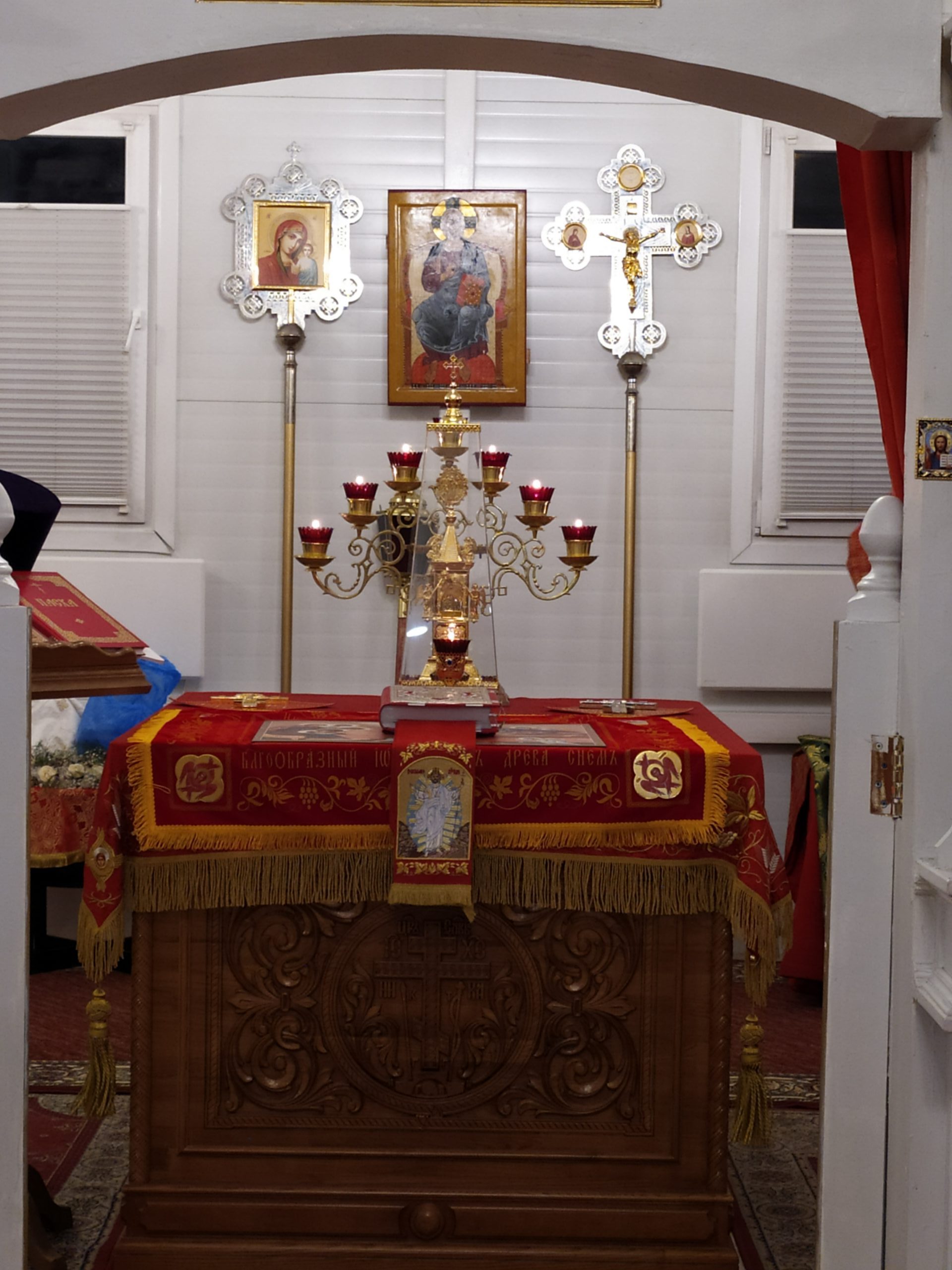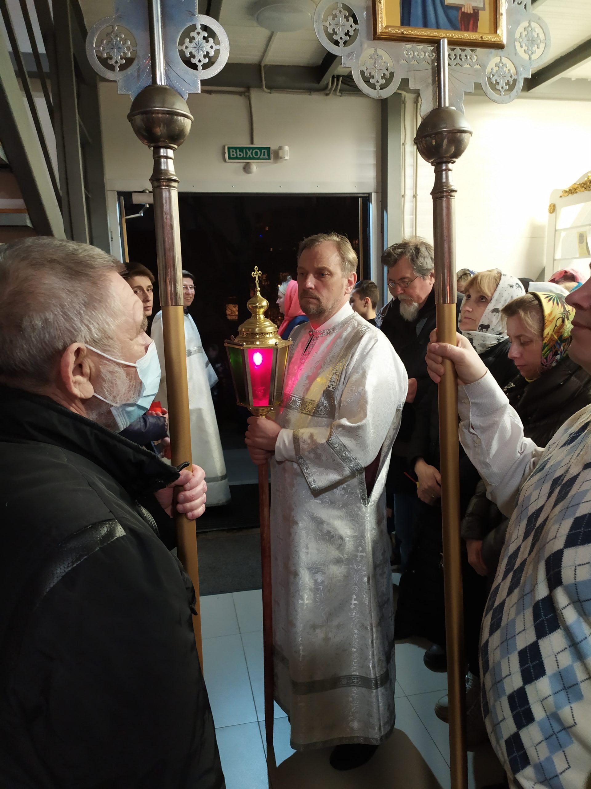 В ночь на Светлое Христово Воскресение, с 23 на 24 апреля 2022 года, исполняющий обязанности настоятеля храма святых равноапостольных князя Владимира и княгини Ольги в Черёмушках протоиерей Владимир Быстрый и клирик храма иерей Димитрий Гончаренко совершили полунощницу, крестный ход, Пасхальную заутреню и Божественную Литургию.
