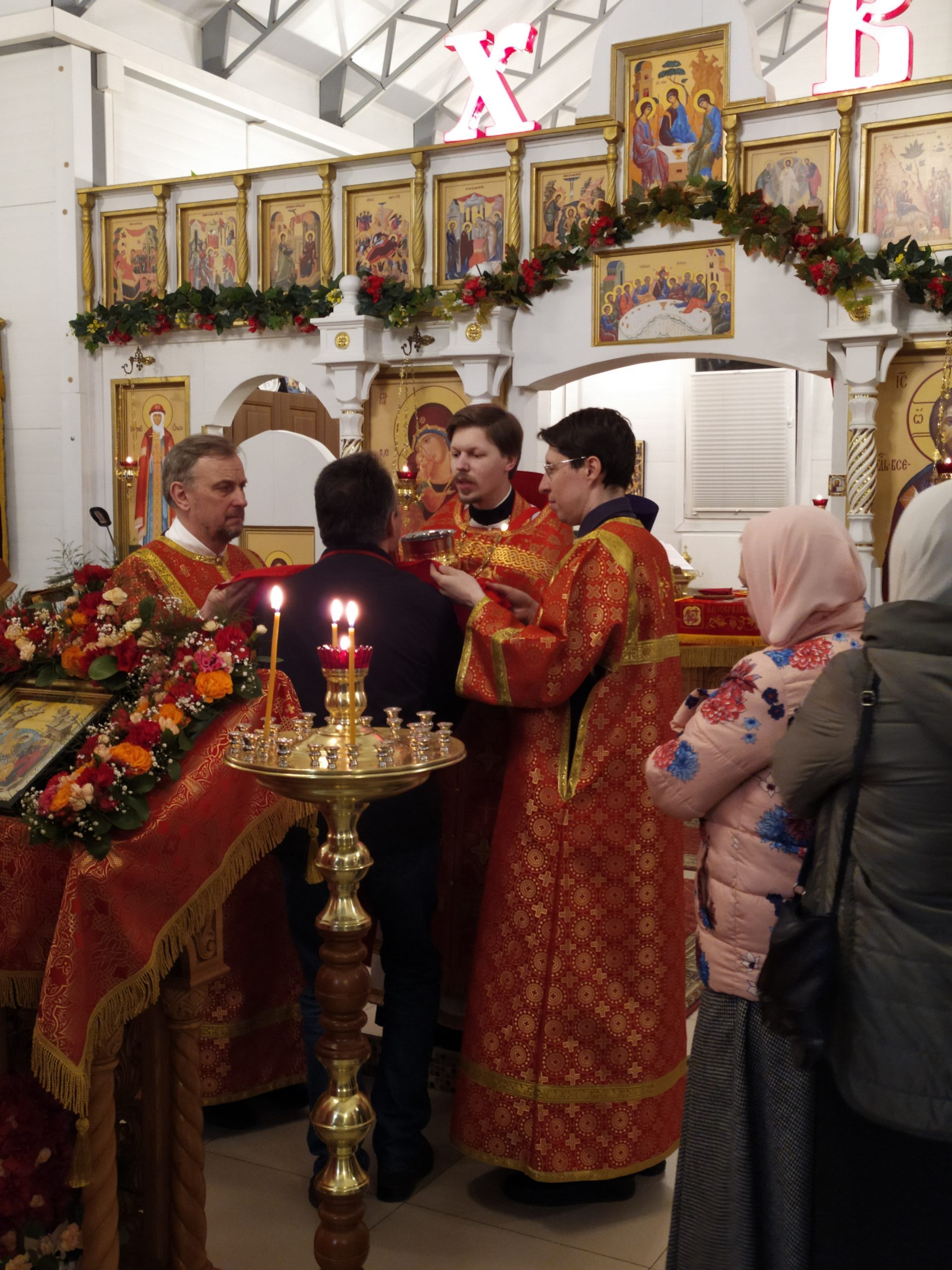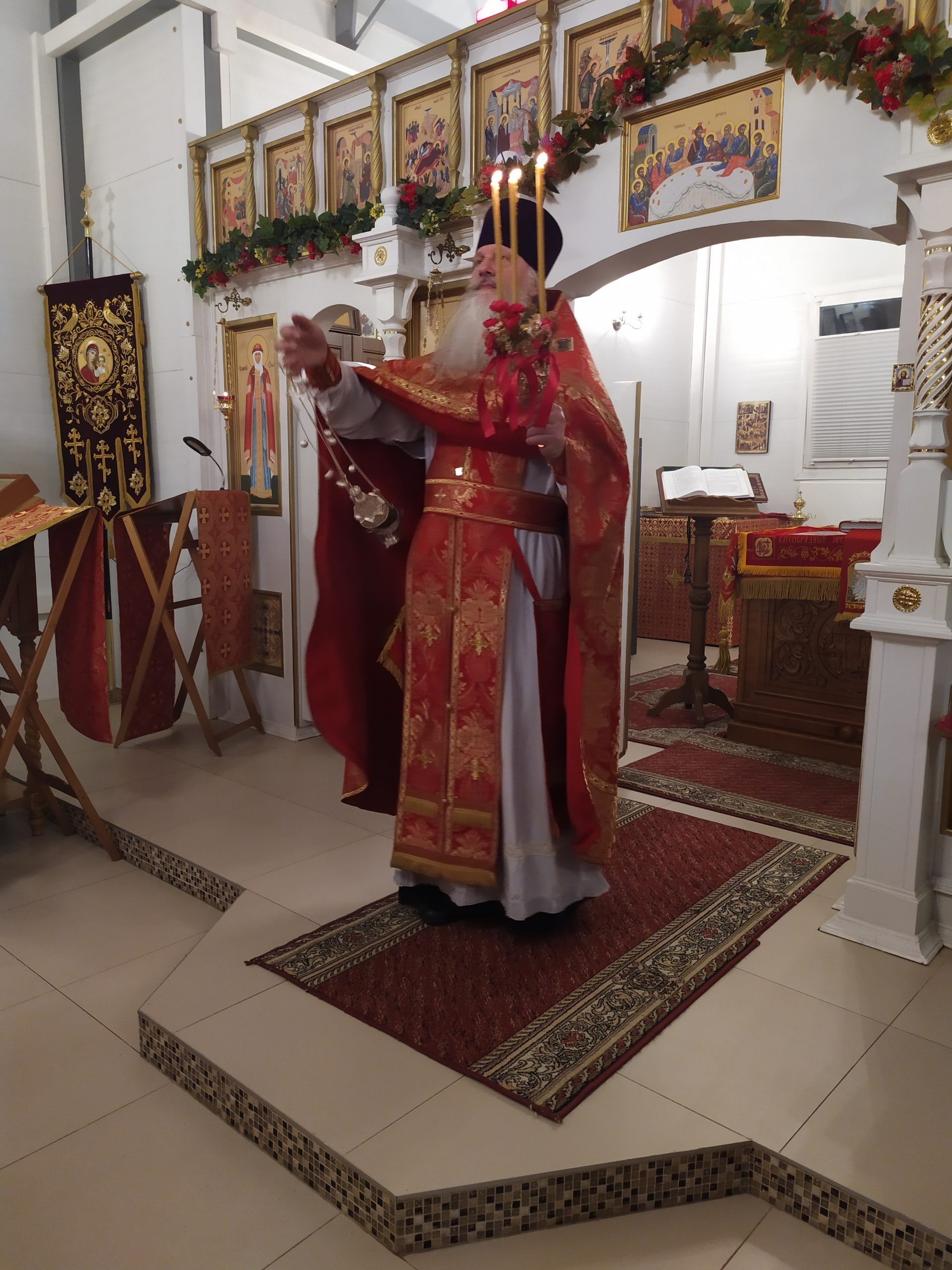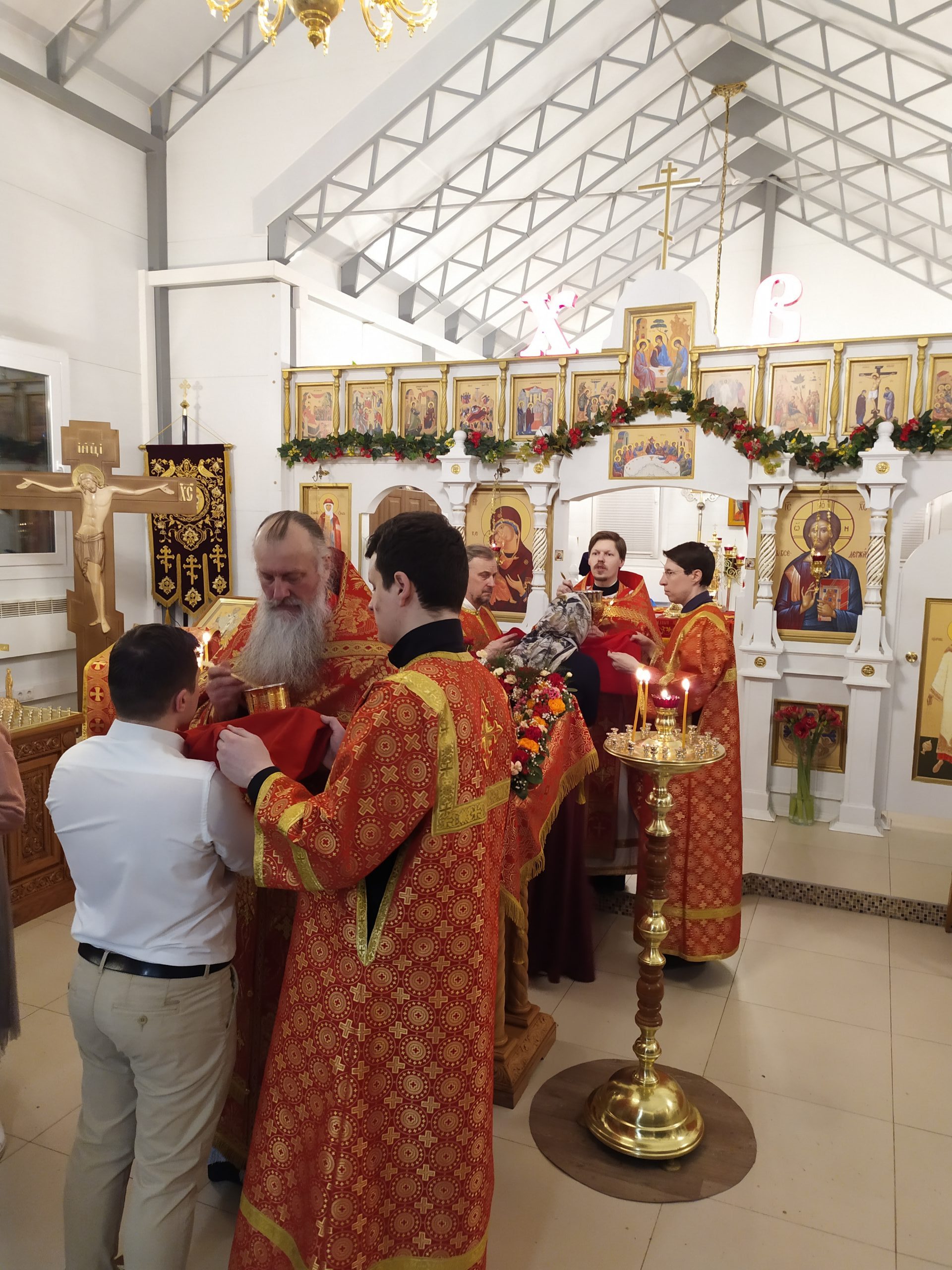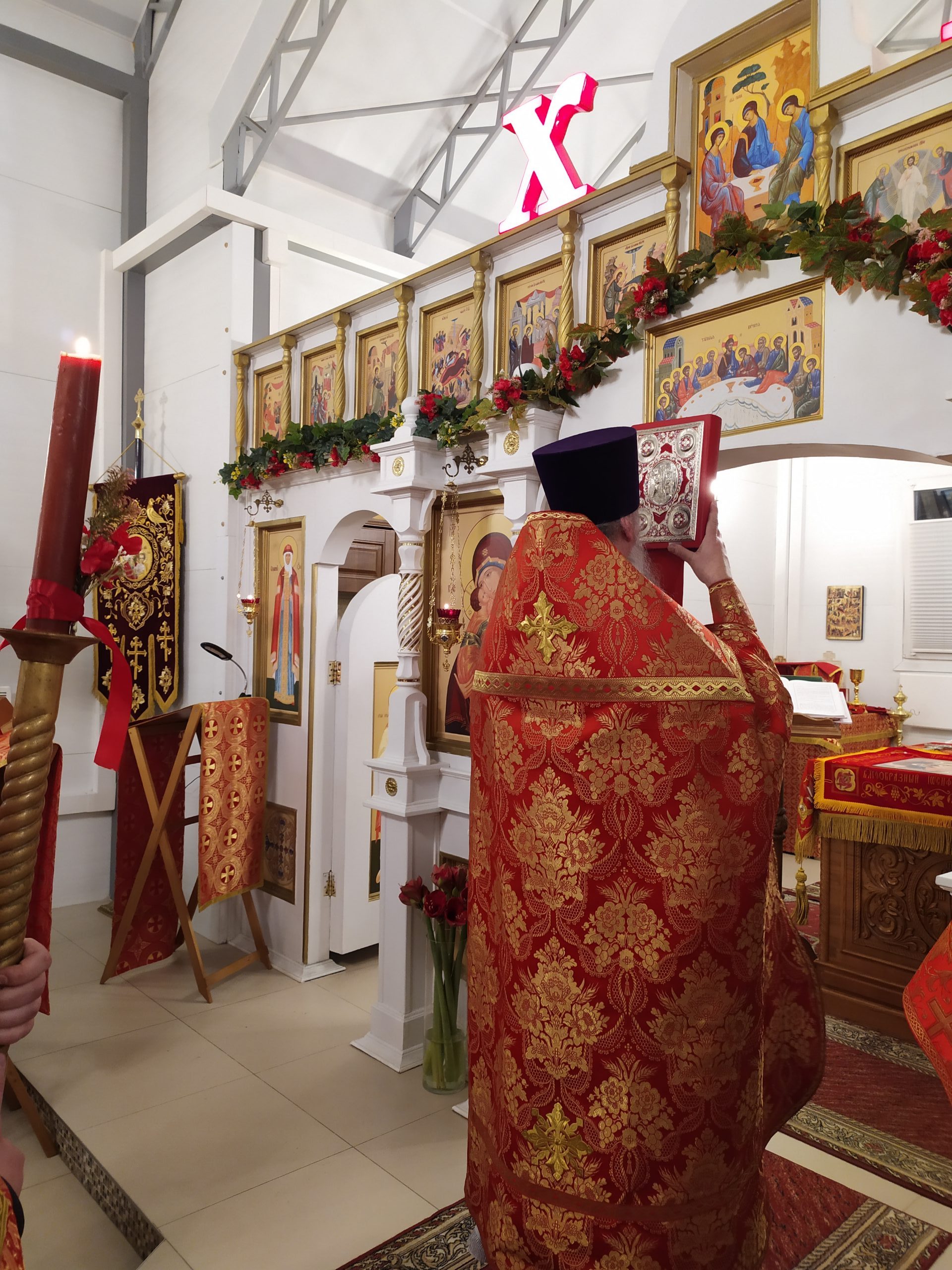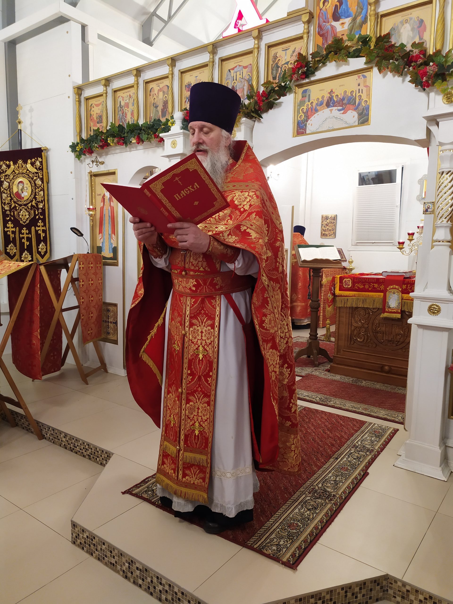 После литургии протоиерей Владимир Быстрый зачитал Пасхальное послание Святейшего Патриарха Кирилла и обратился со словом к пастве.