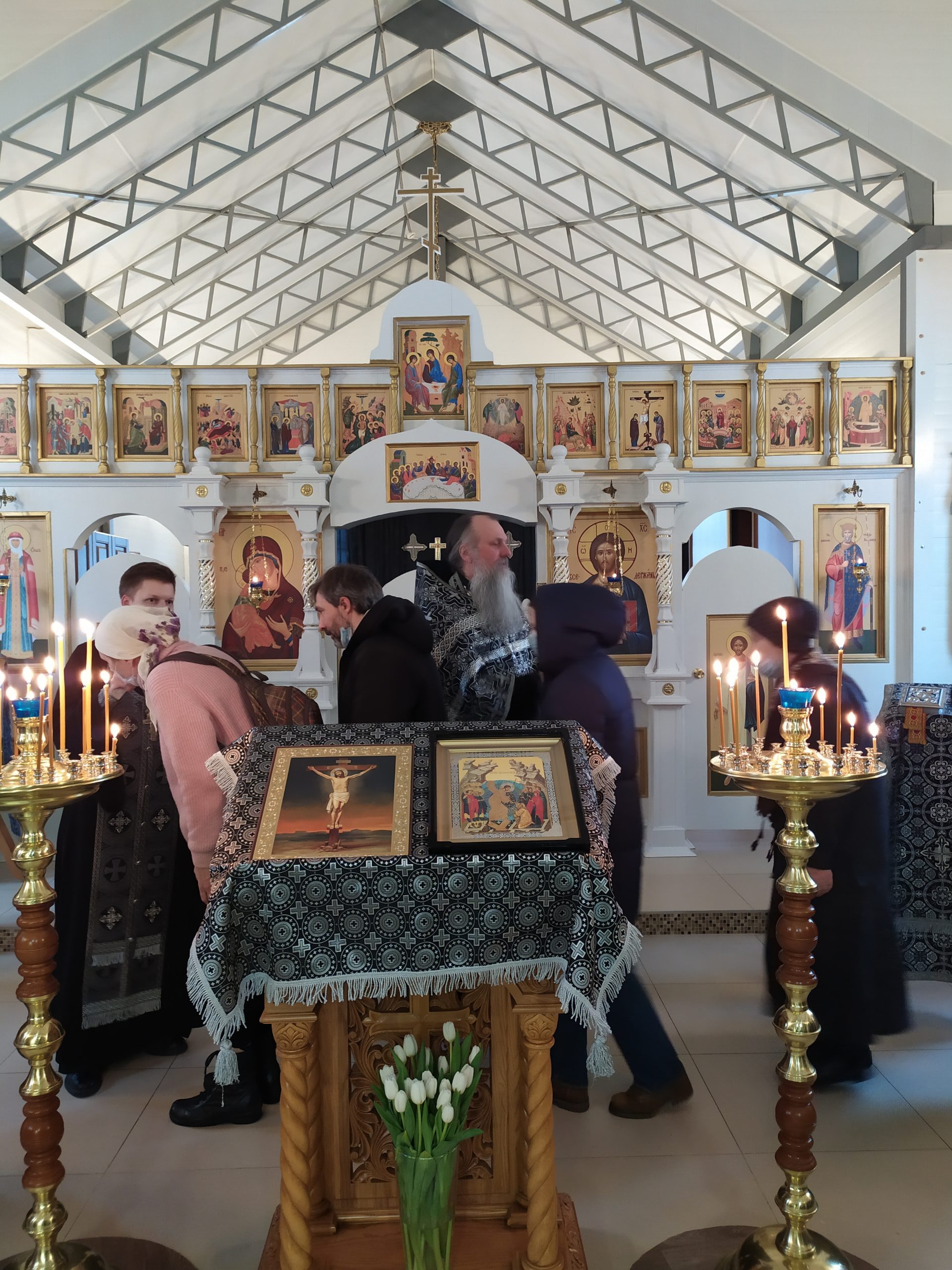 Вечером 14 марта 2021 года, в Прощеное воскресенье, исполняющий обязанности настоятеля храма святых равноапостольных князя Владимира и княгини Ольги в Черёмушках г. Москвы протоиерей Владимир Быстрый и штатный клирик храма иерей Димитрий Гончаренко отслужили вечерню с чином прощения.